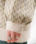 ・トレンド感のある総柄ジャガードがポイントのニットカーディガンです。