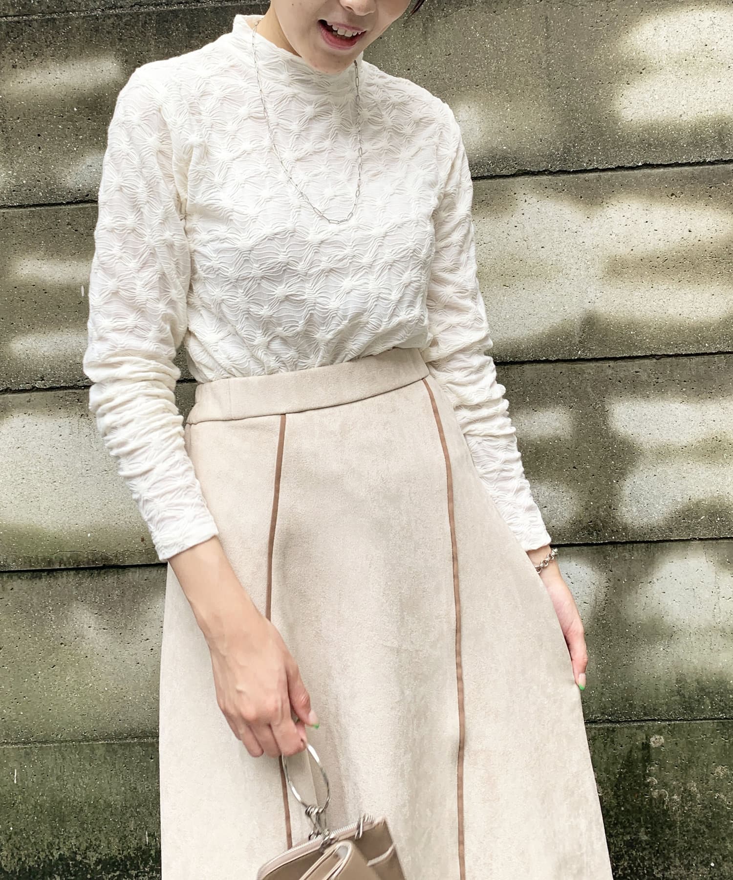 ・スカートやパンツと合わせて、ウエストインするとスッキリと着ていただけます。