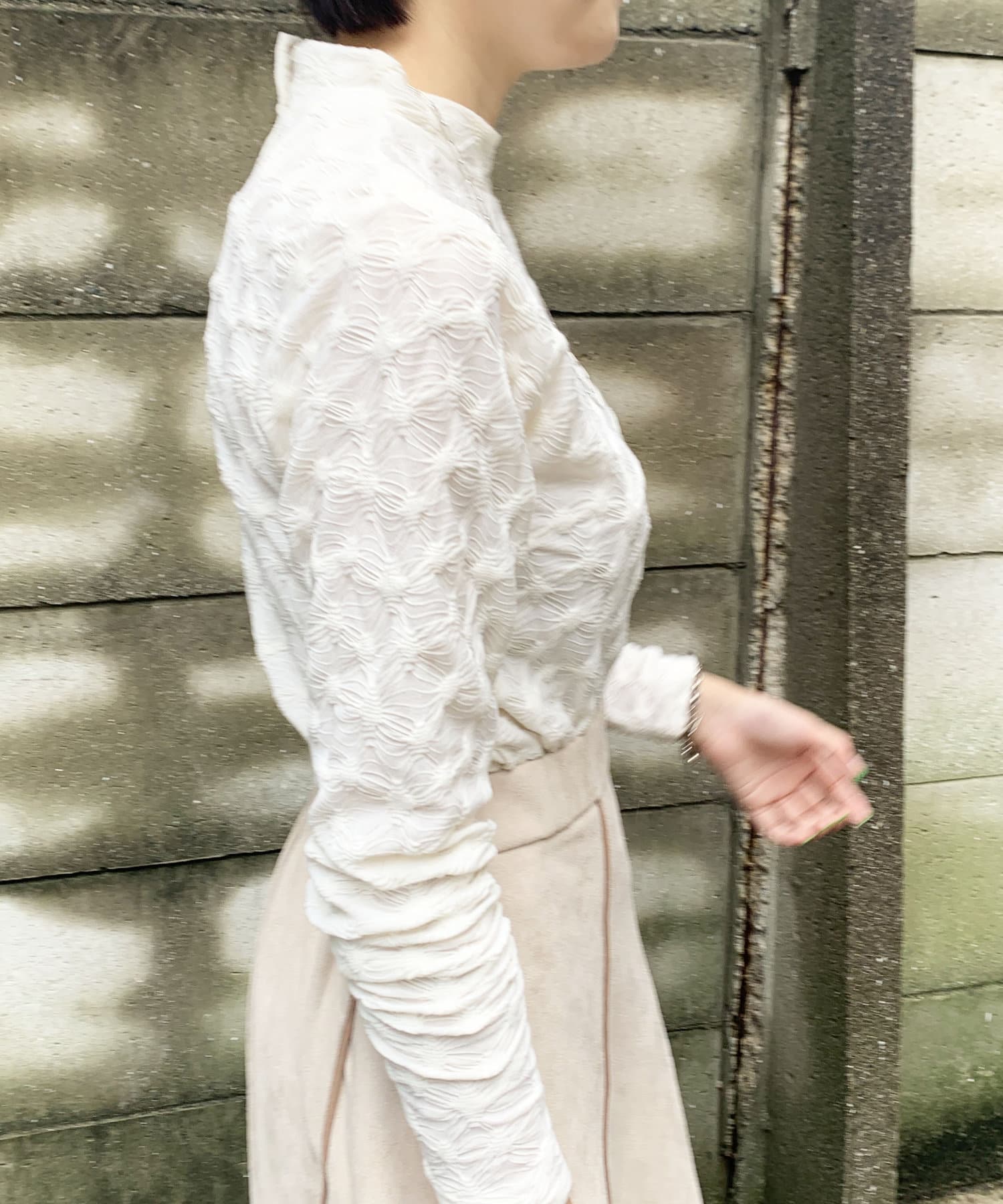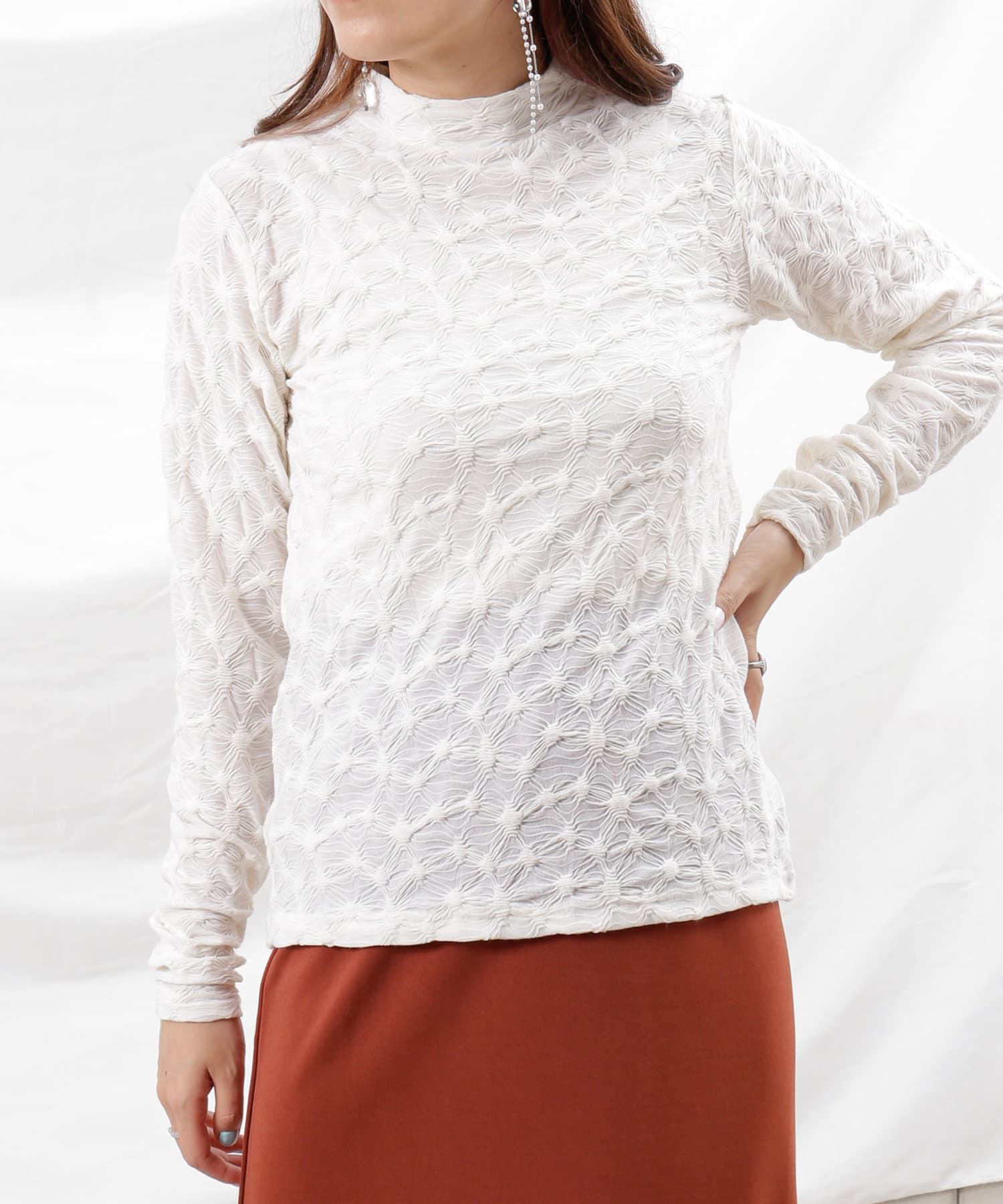 変形タックジャガードハイネックプルオーバー