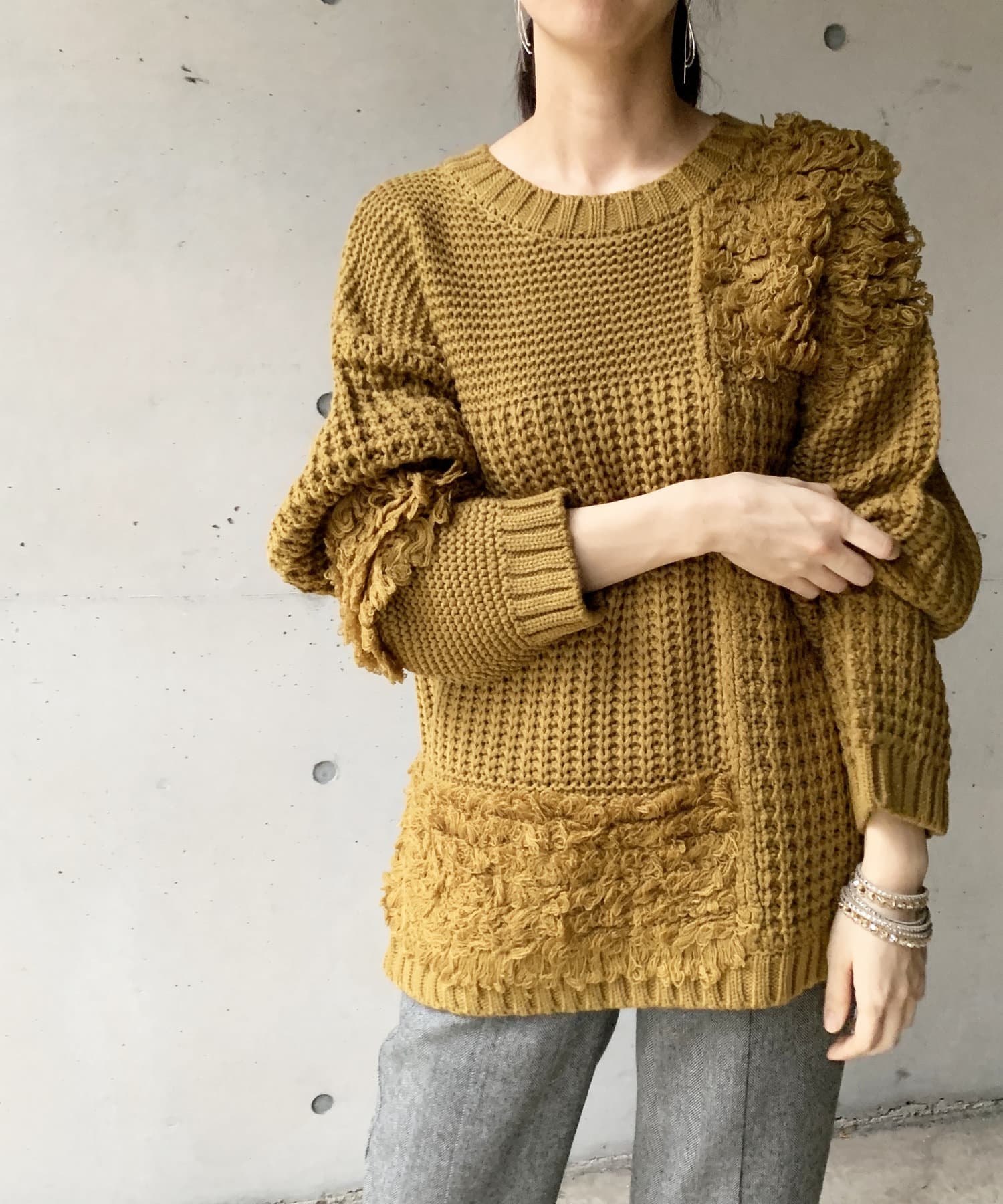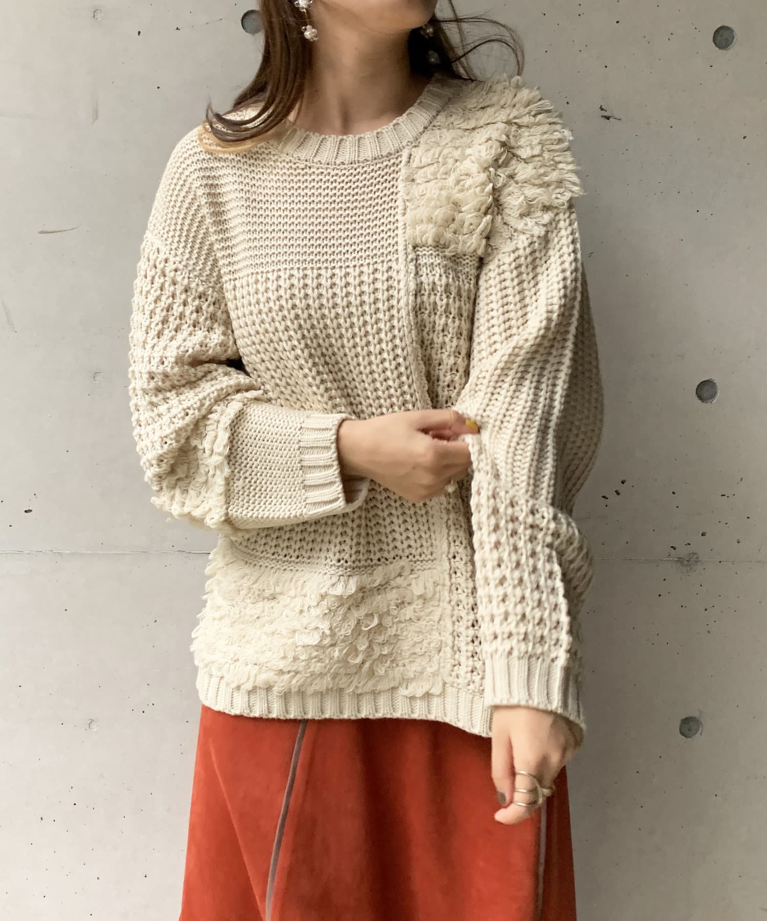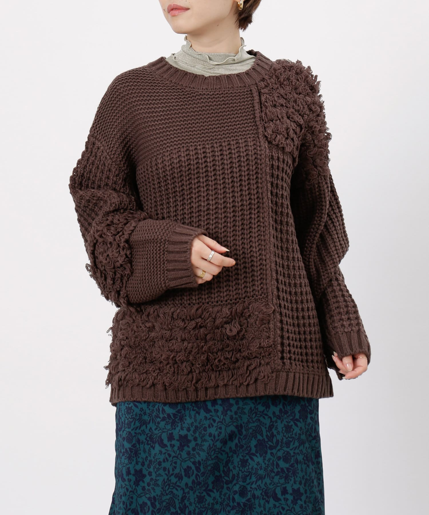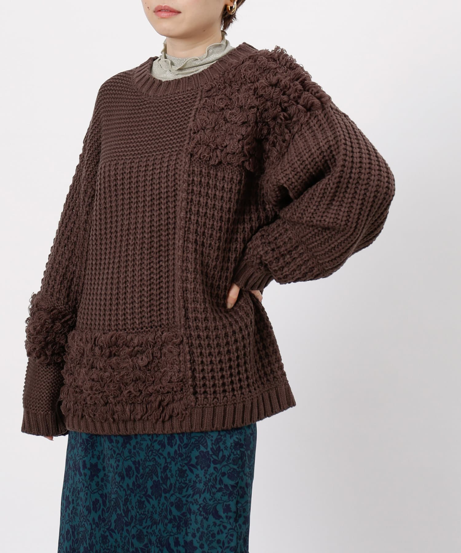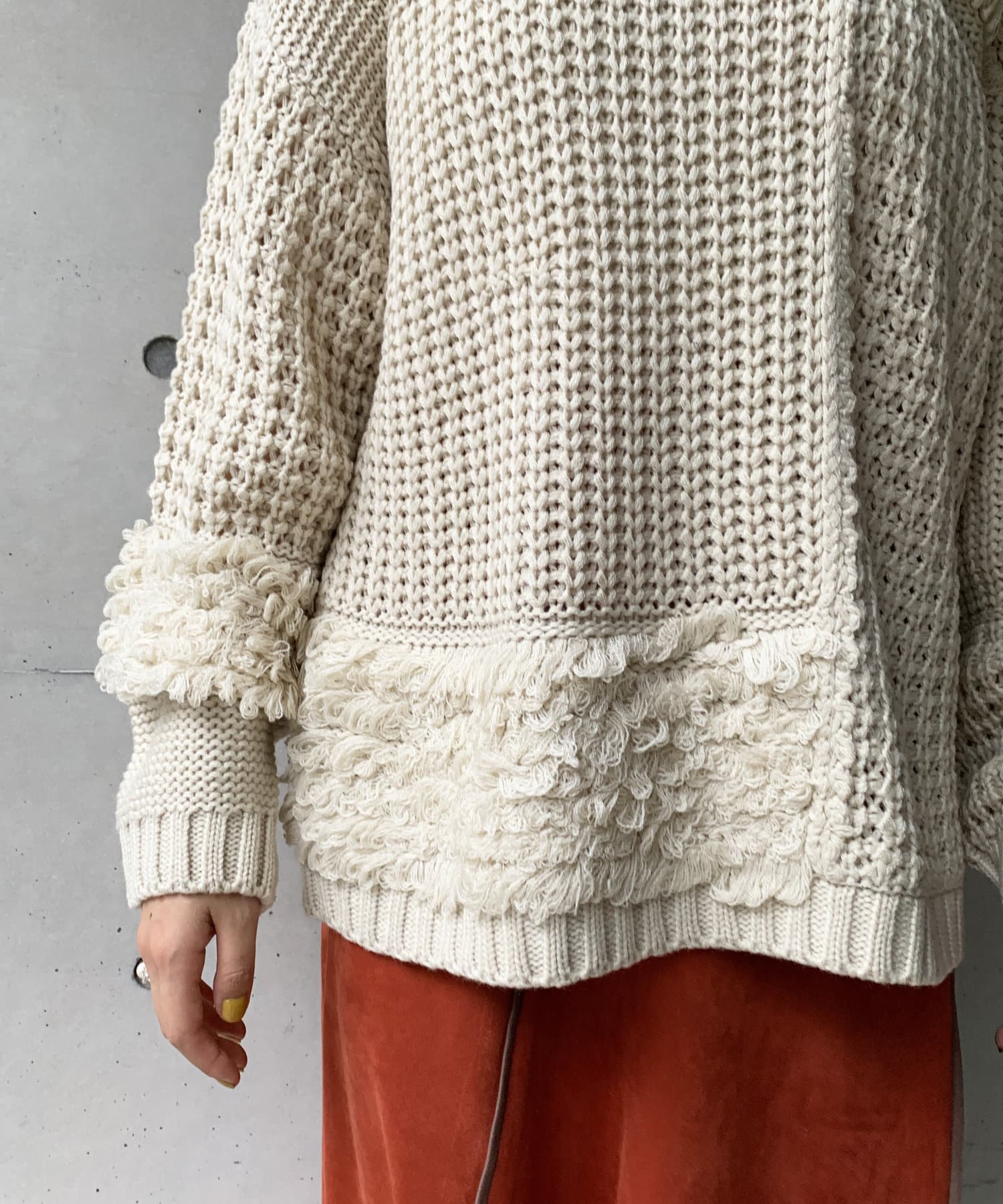 ・ルーズニット・ループ編み・切替・ニット・シンプル・ゆったりサイズ・オーバーサイズ・ビッグサイズ・デザインニット・デザイントップス・21AW・チュニック丈・#otona_designkint