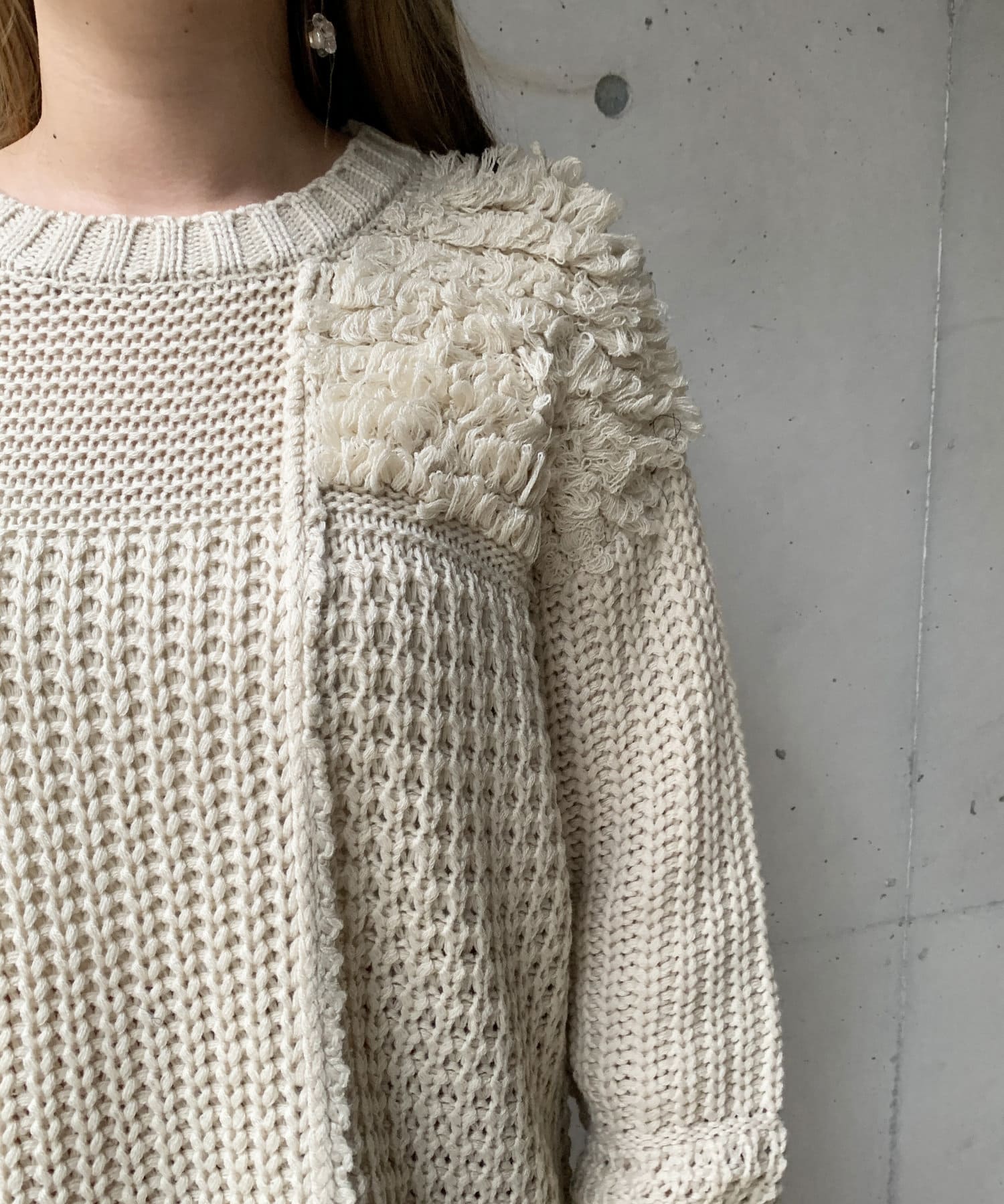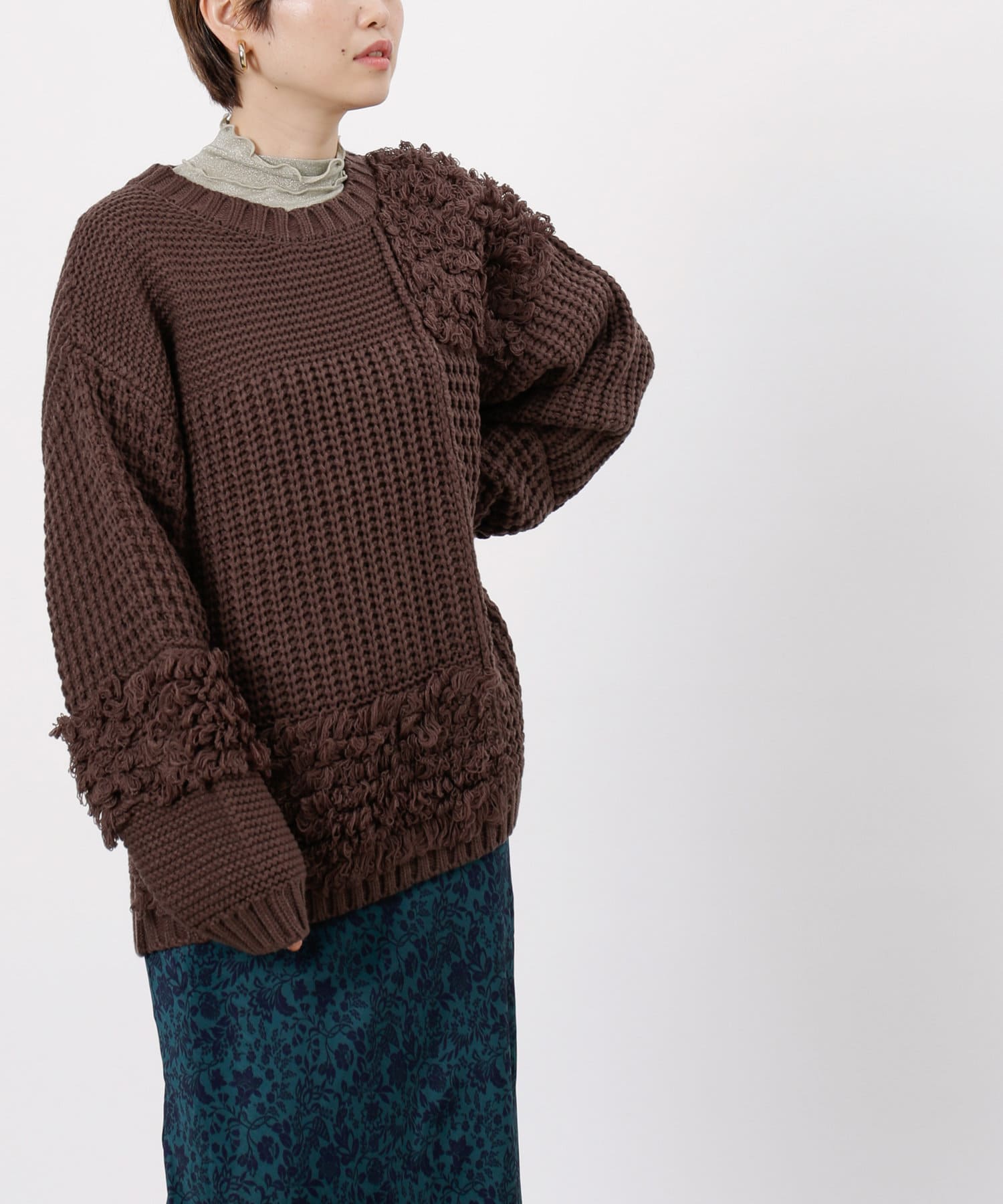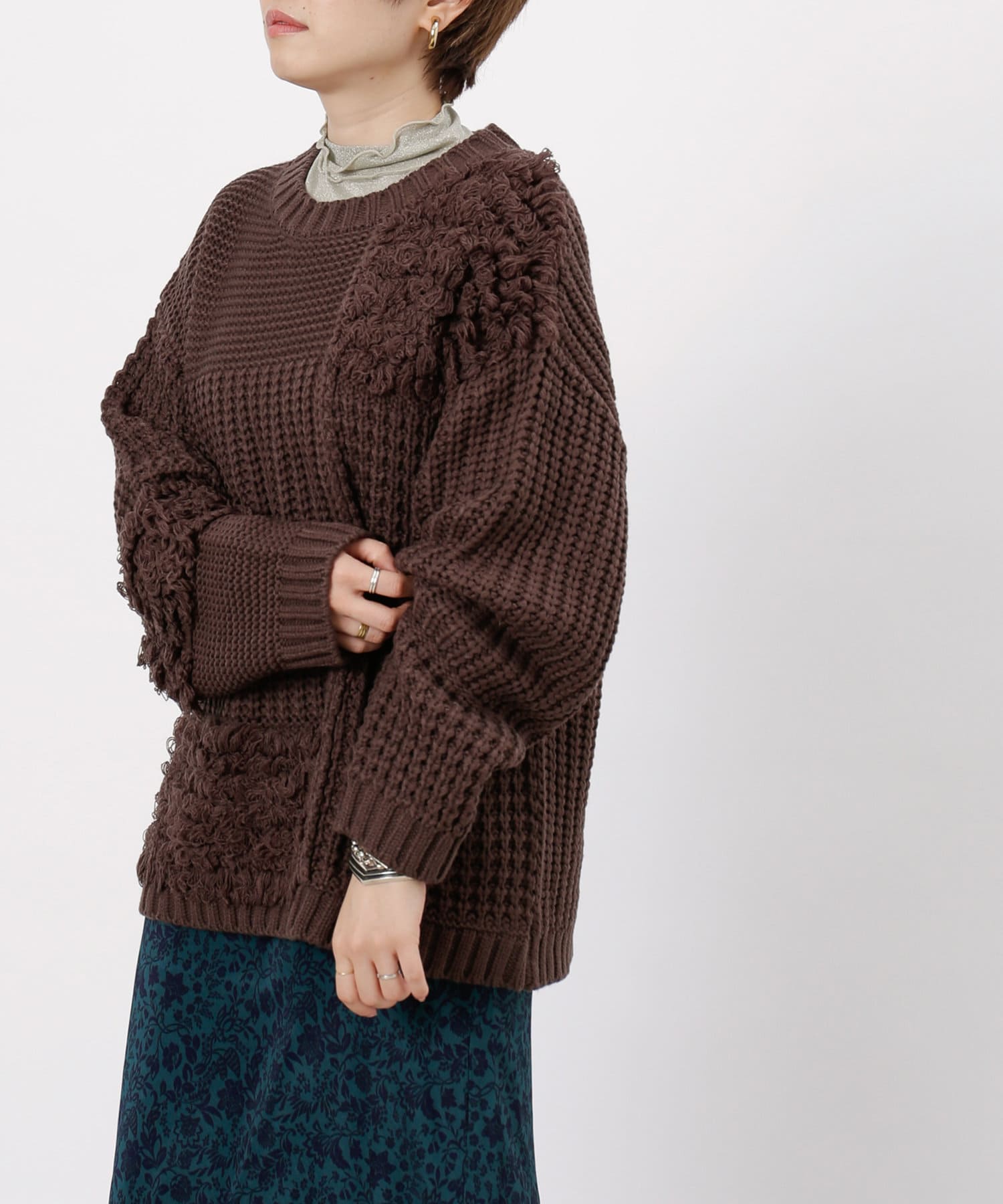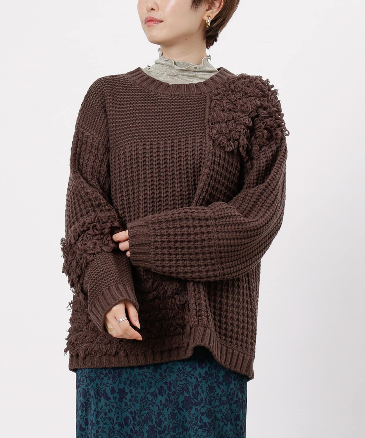 ・ルーズニット・ループ編み・切替・ニット・シンプル・ゆったりサイズ・オーバーサイズ・ビッグサイズ・デザインニット・デザイントップス・21AW・チュニック丈・#otona_designkint