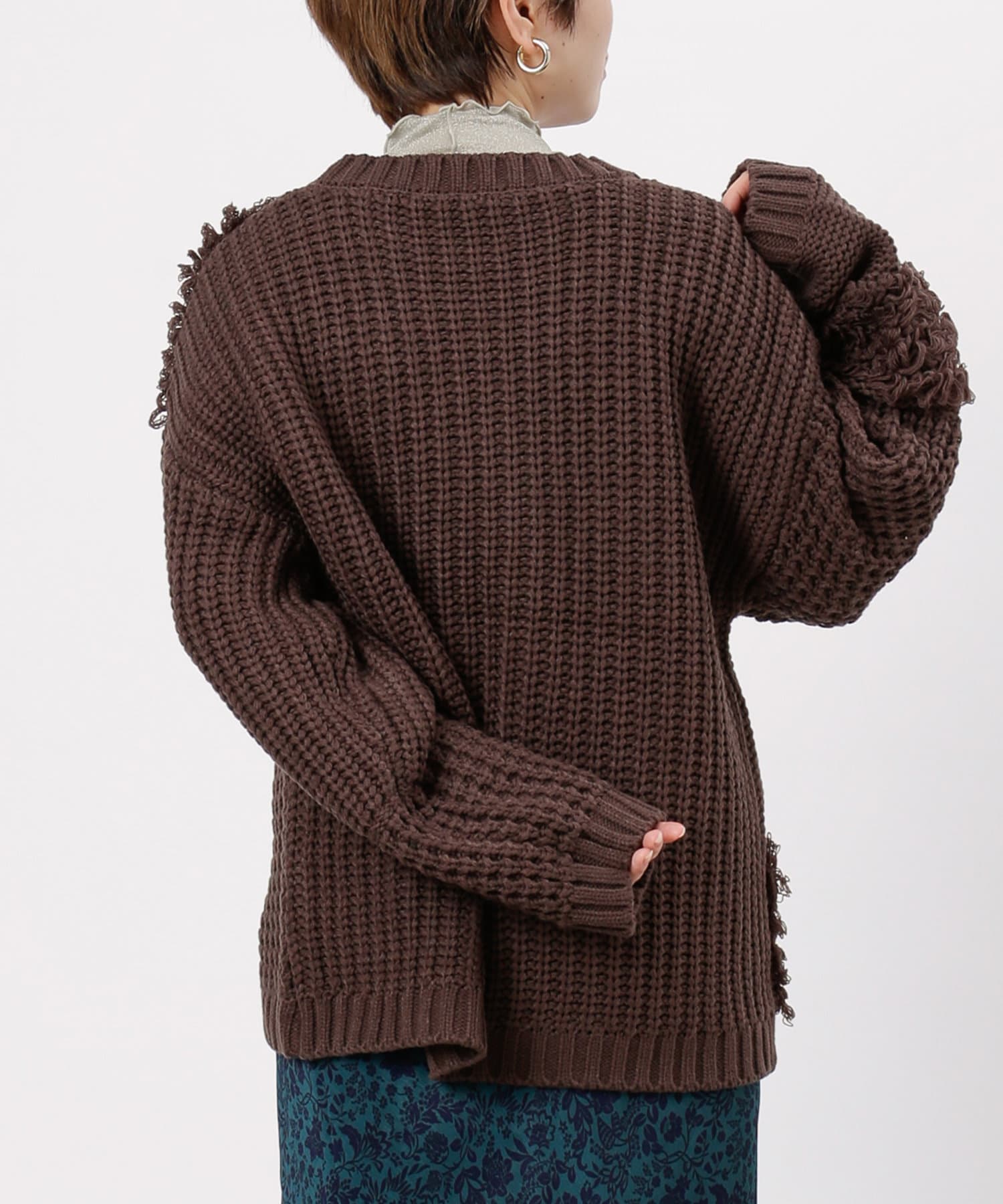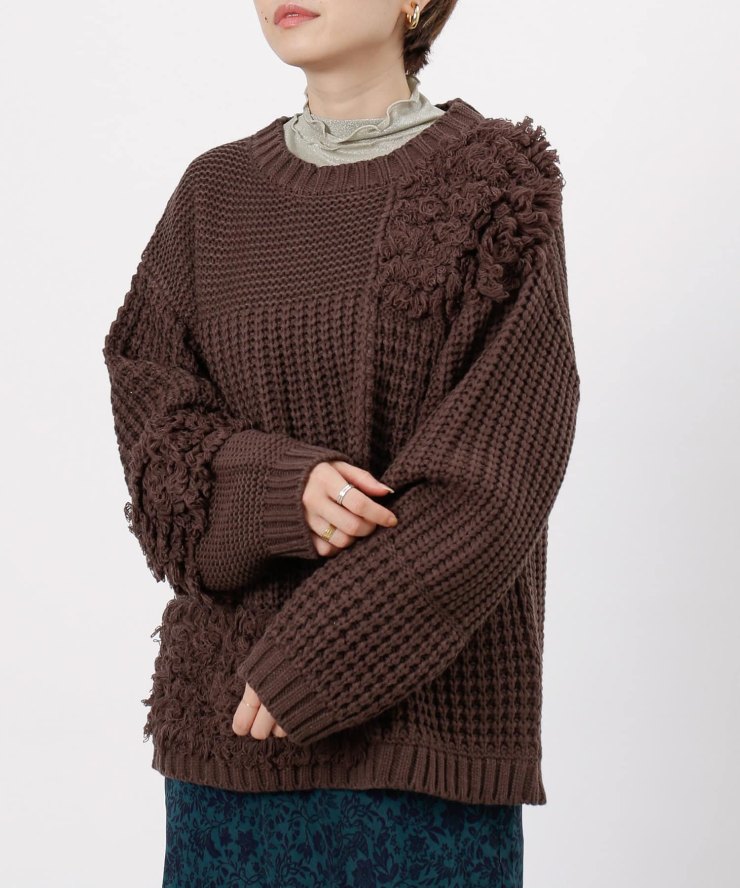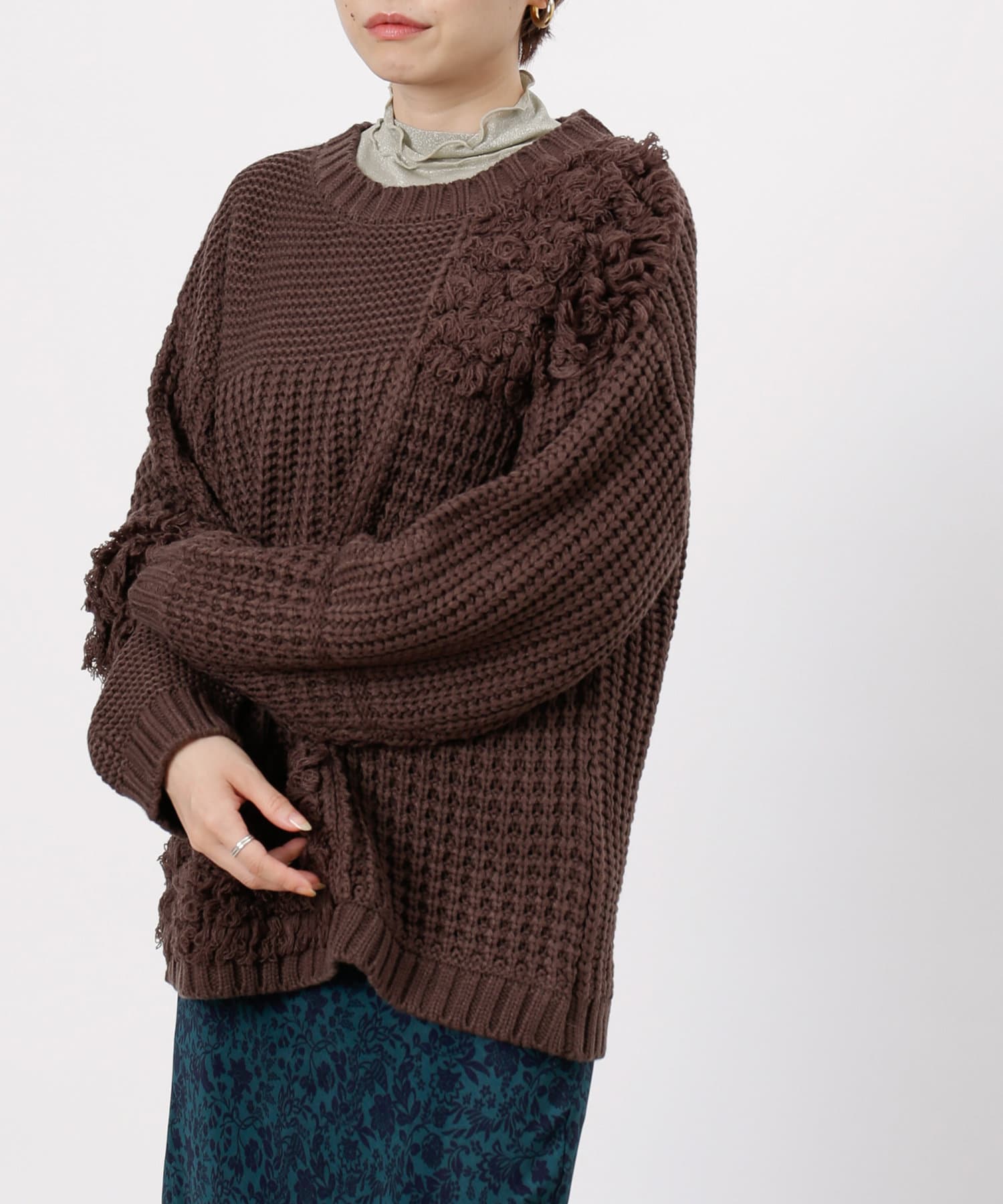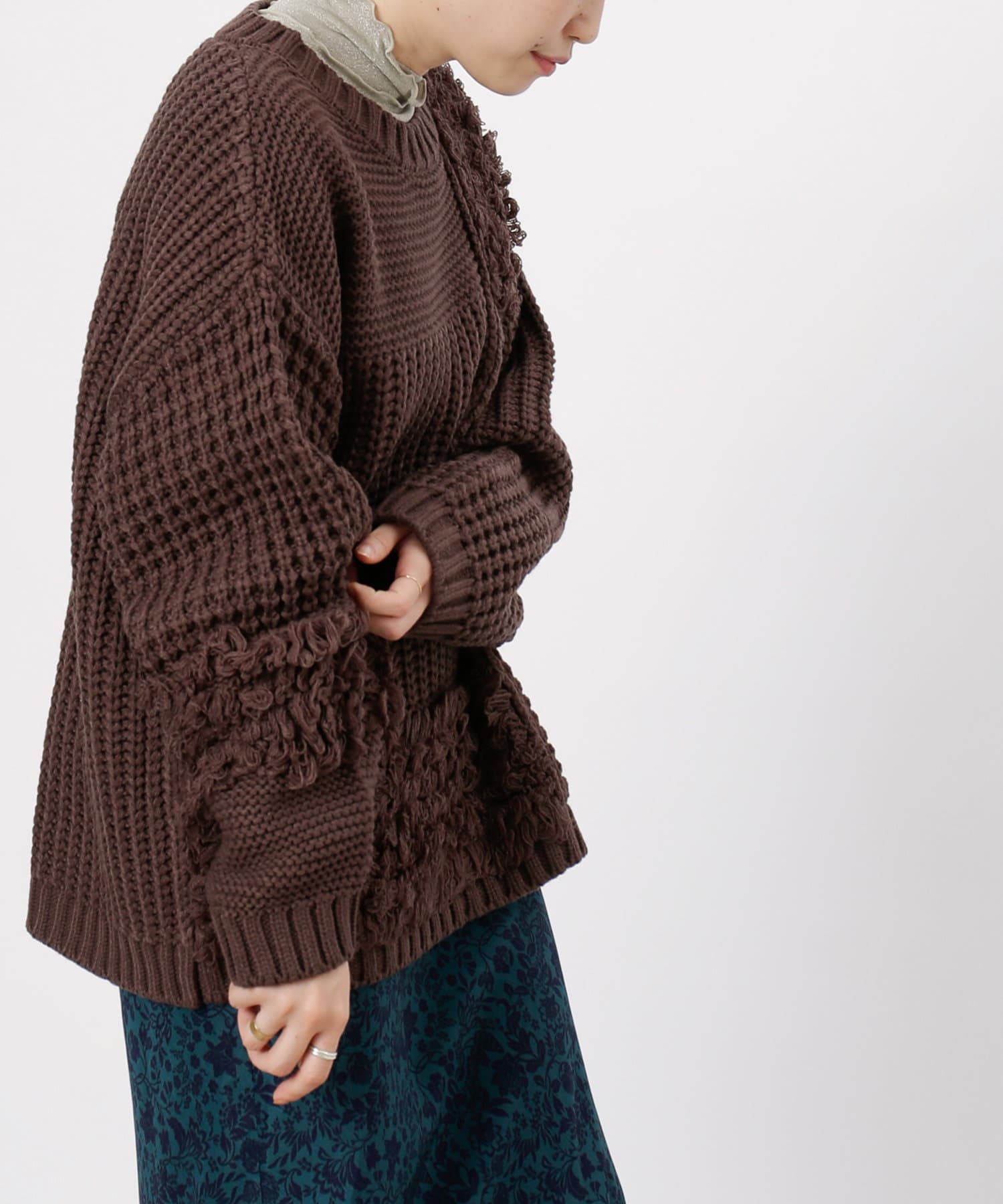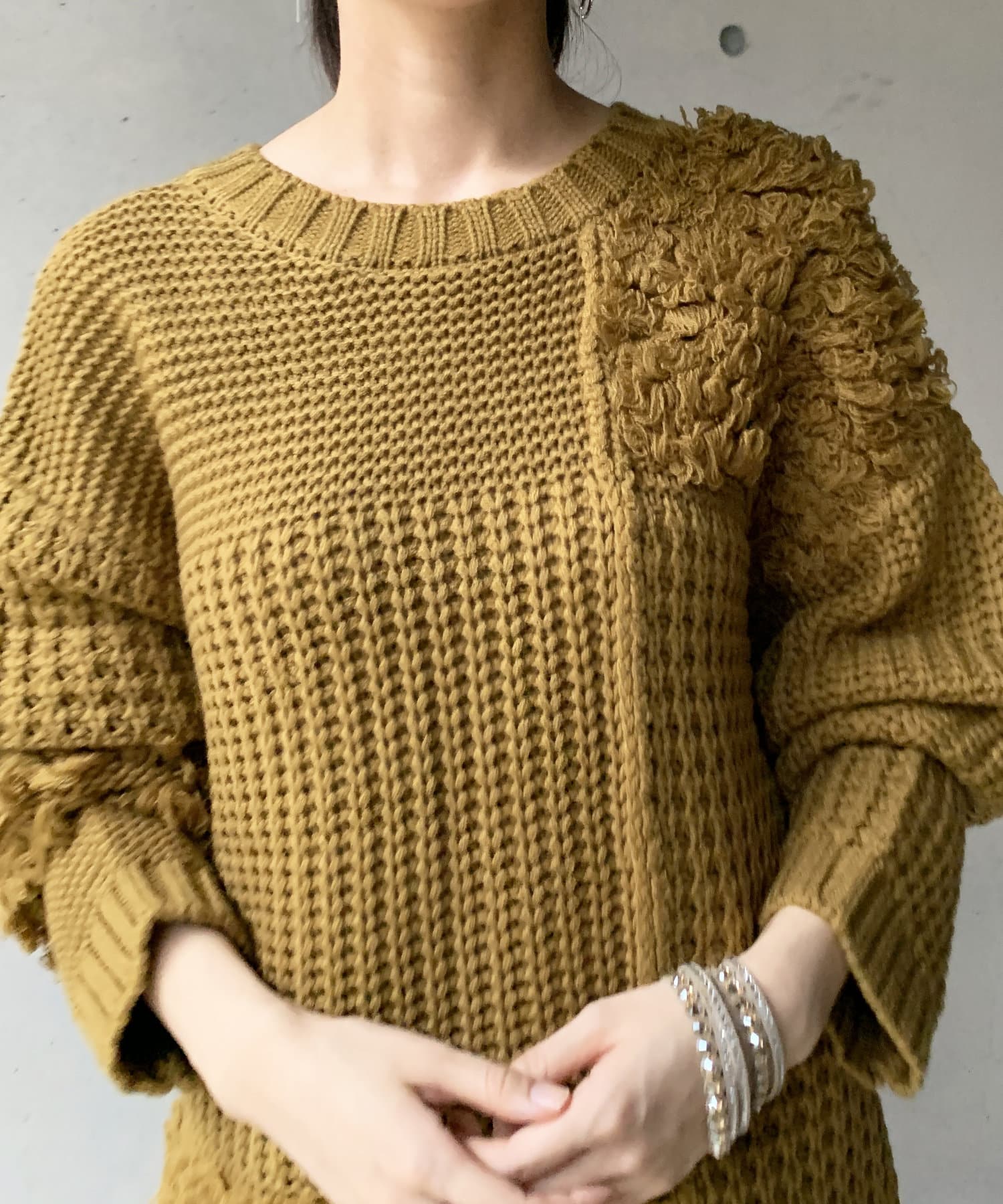 ・ルーズニット・ループ編み・切替・ニット・シンプル・ゆったりサイズ・オーバーサイズ・ビッグサイズ・デザインニット・デザイントップス・21AW・チュニック丈・#otona_designkint