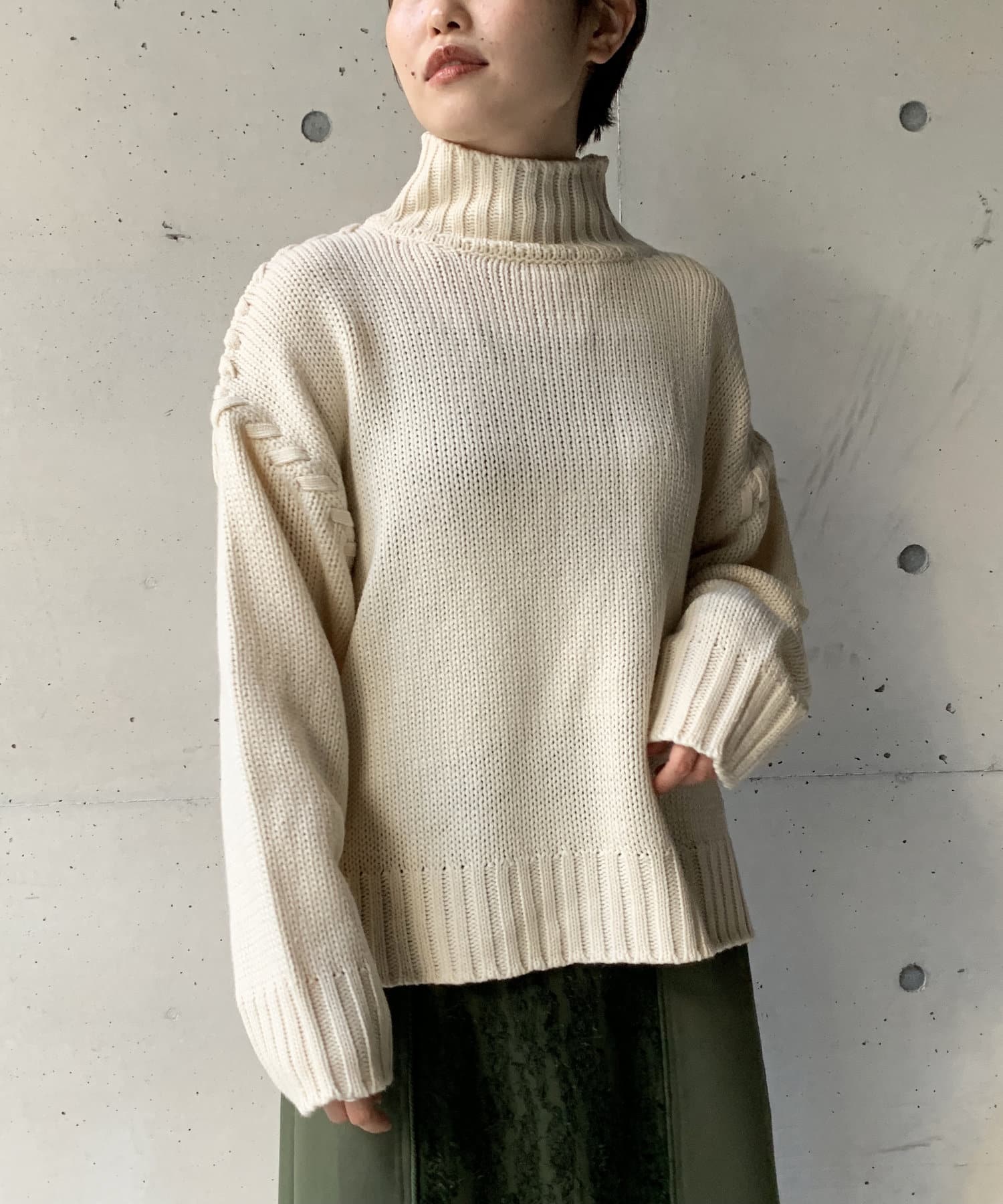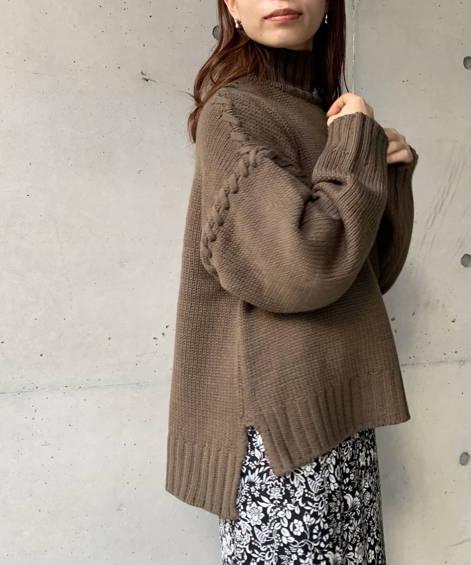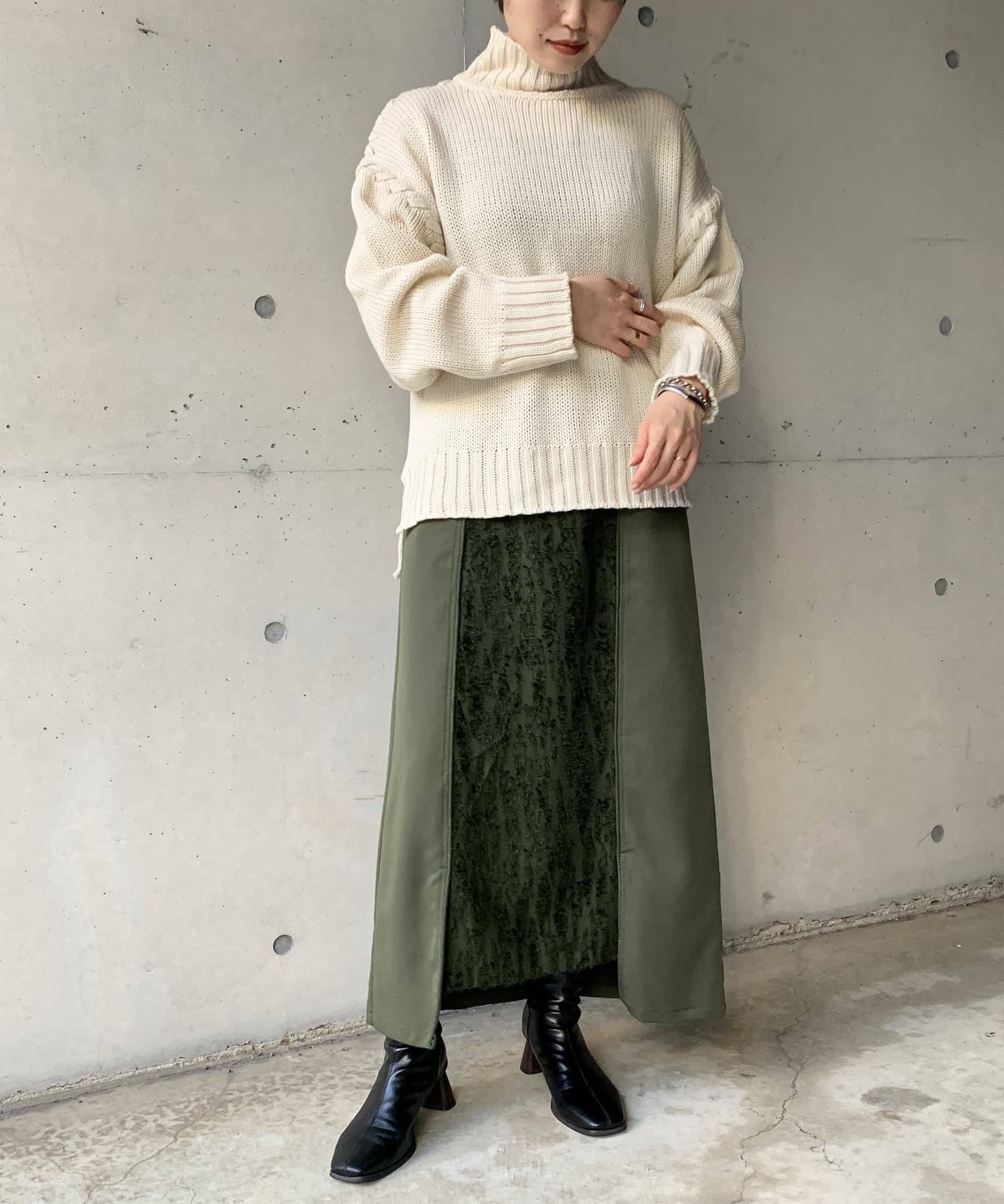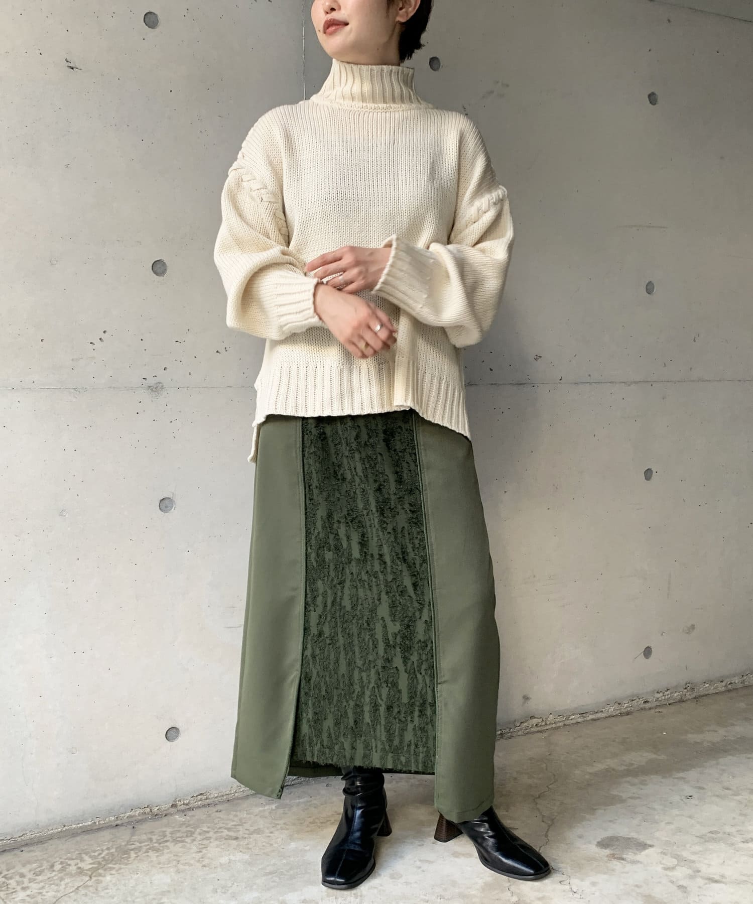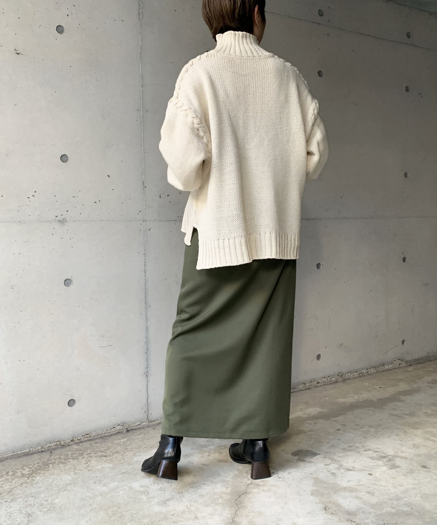 ・秋冬定番のハイネックニットです。合わせやすい着丈なので、スカート、パンツとボトムスを選びません。