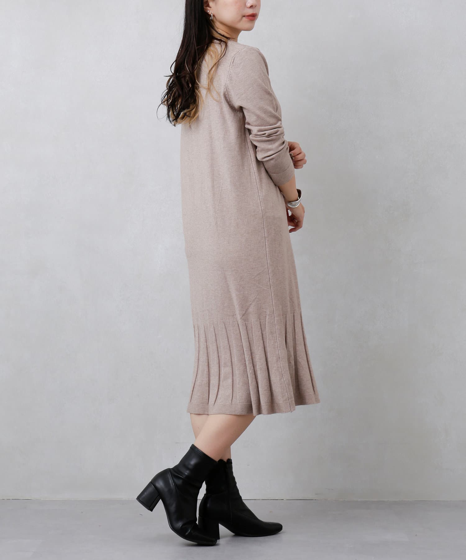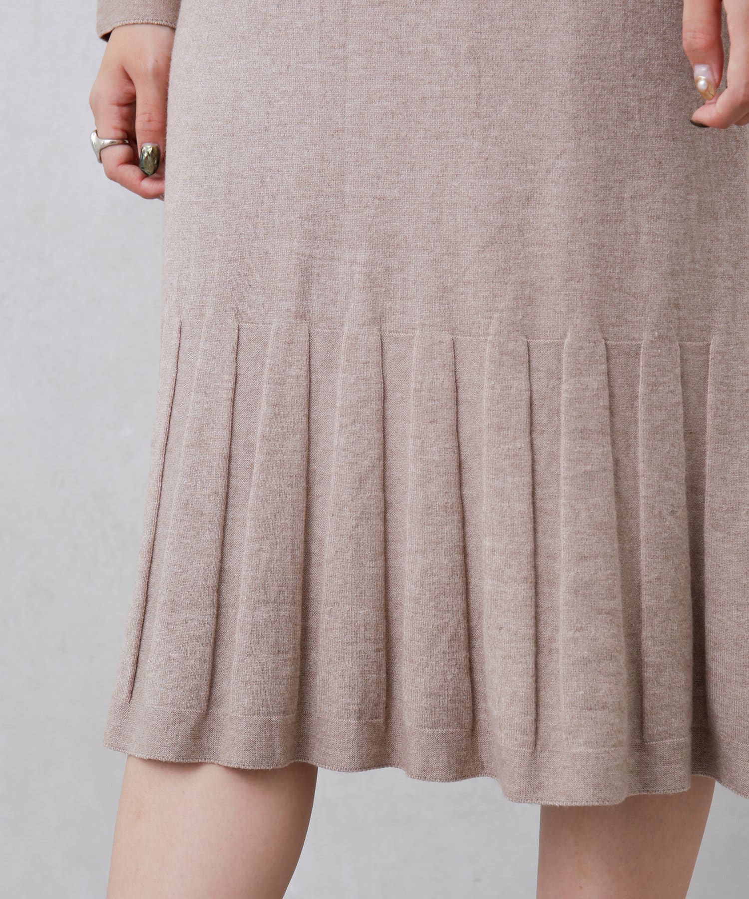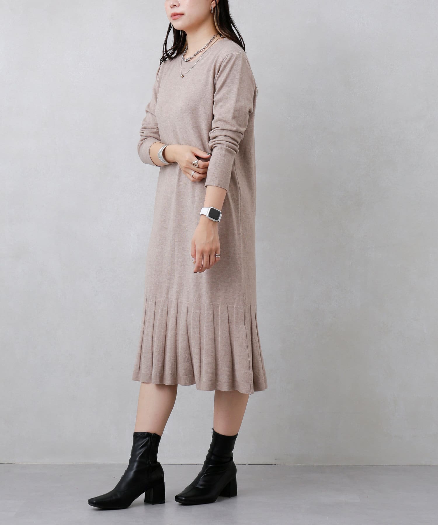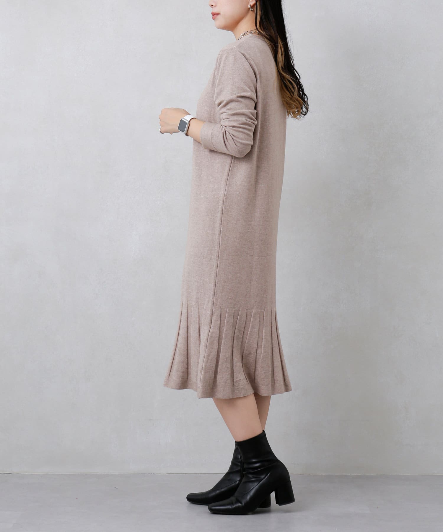 裾プリーツニットワンピース