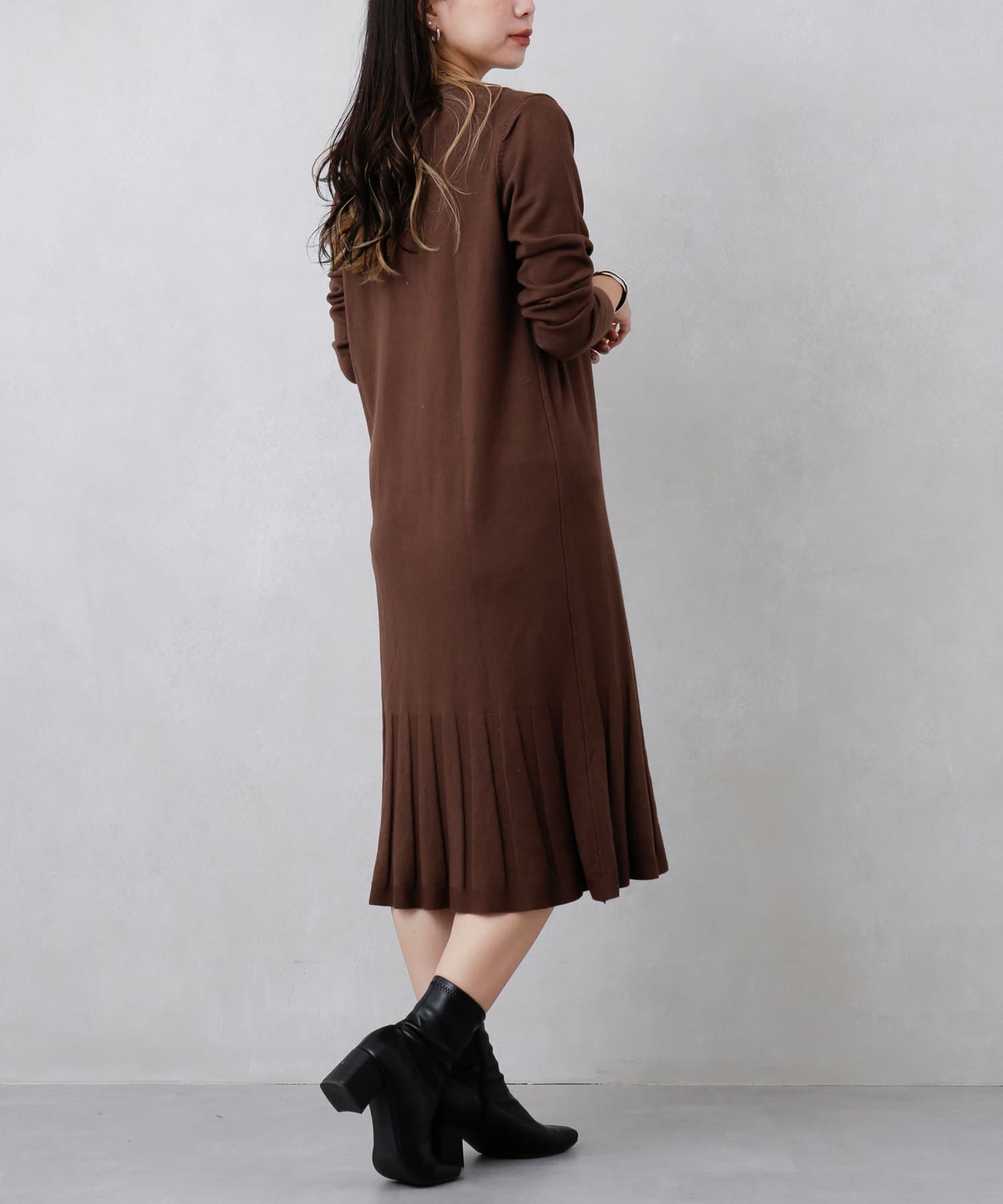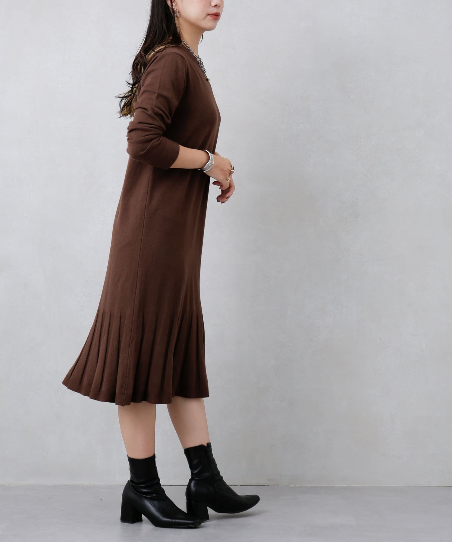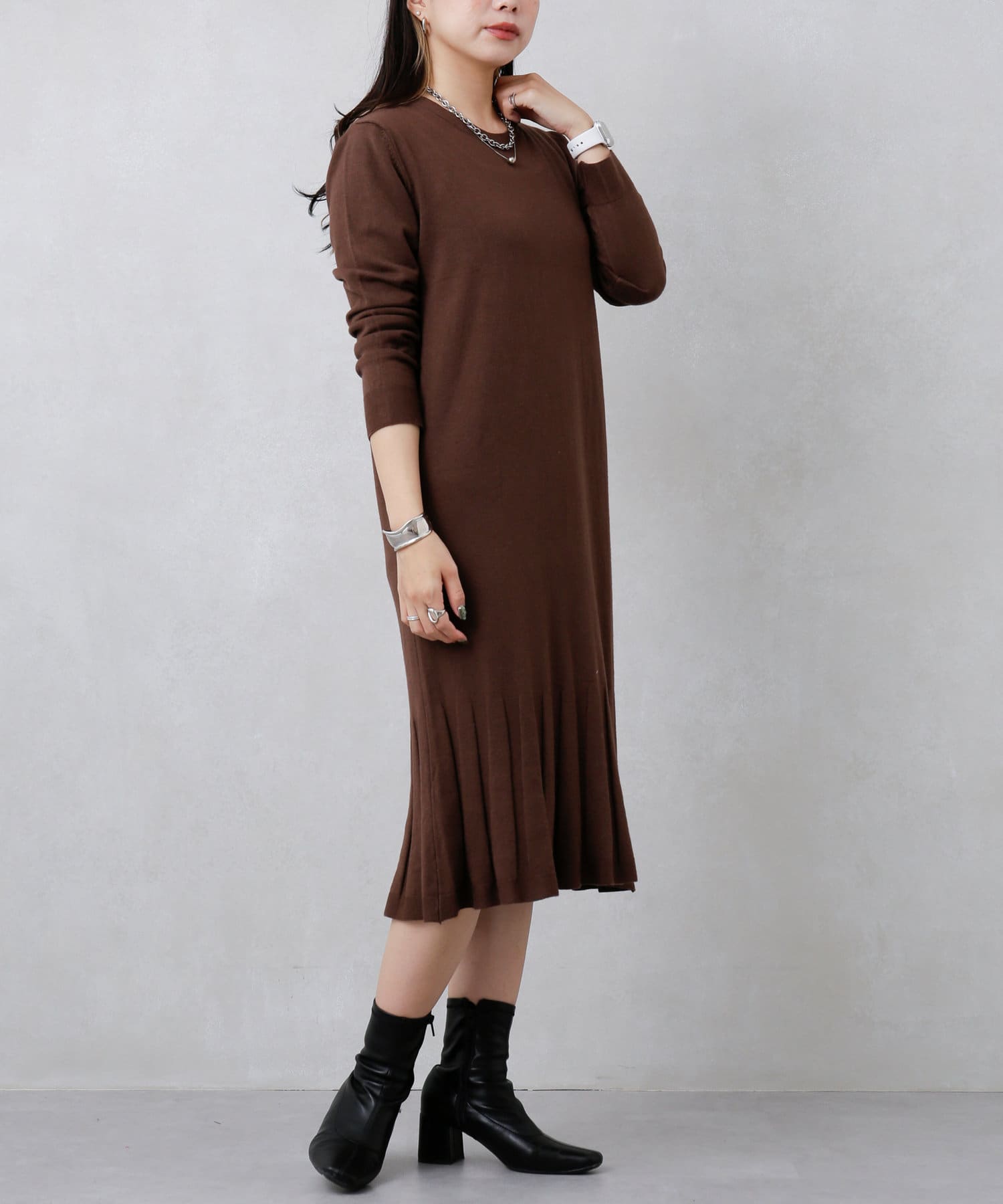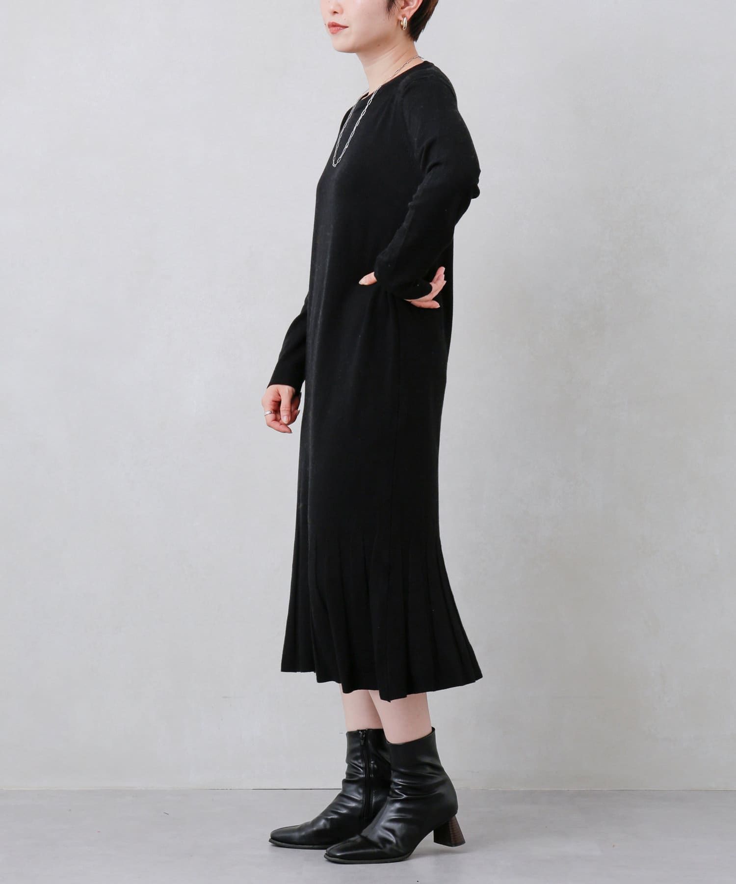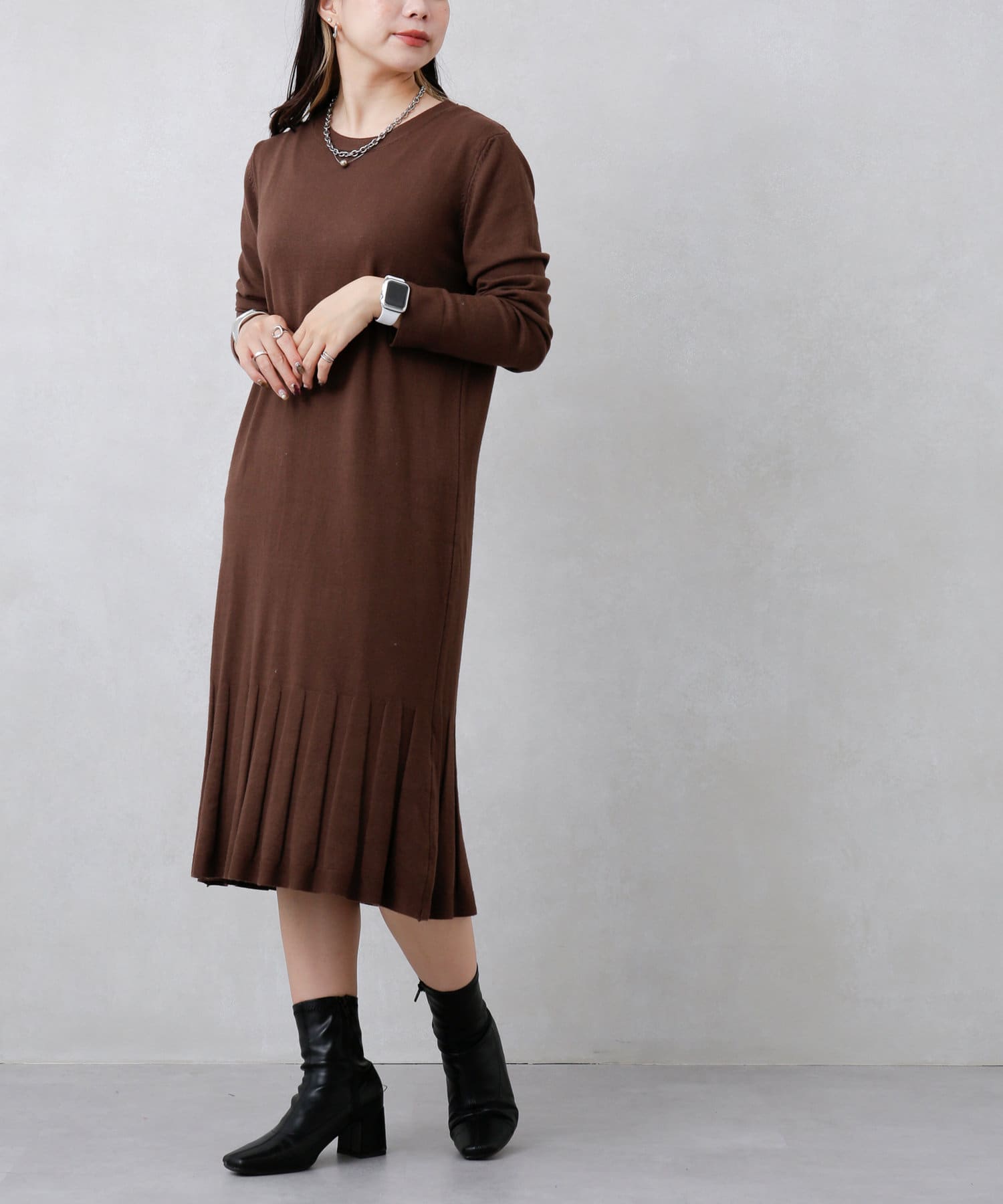 裾プリーツニットワンピース