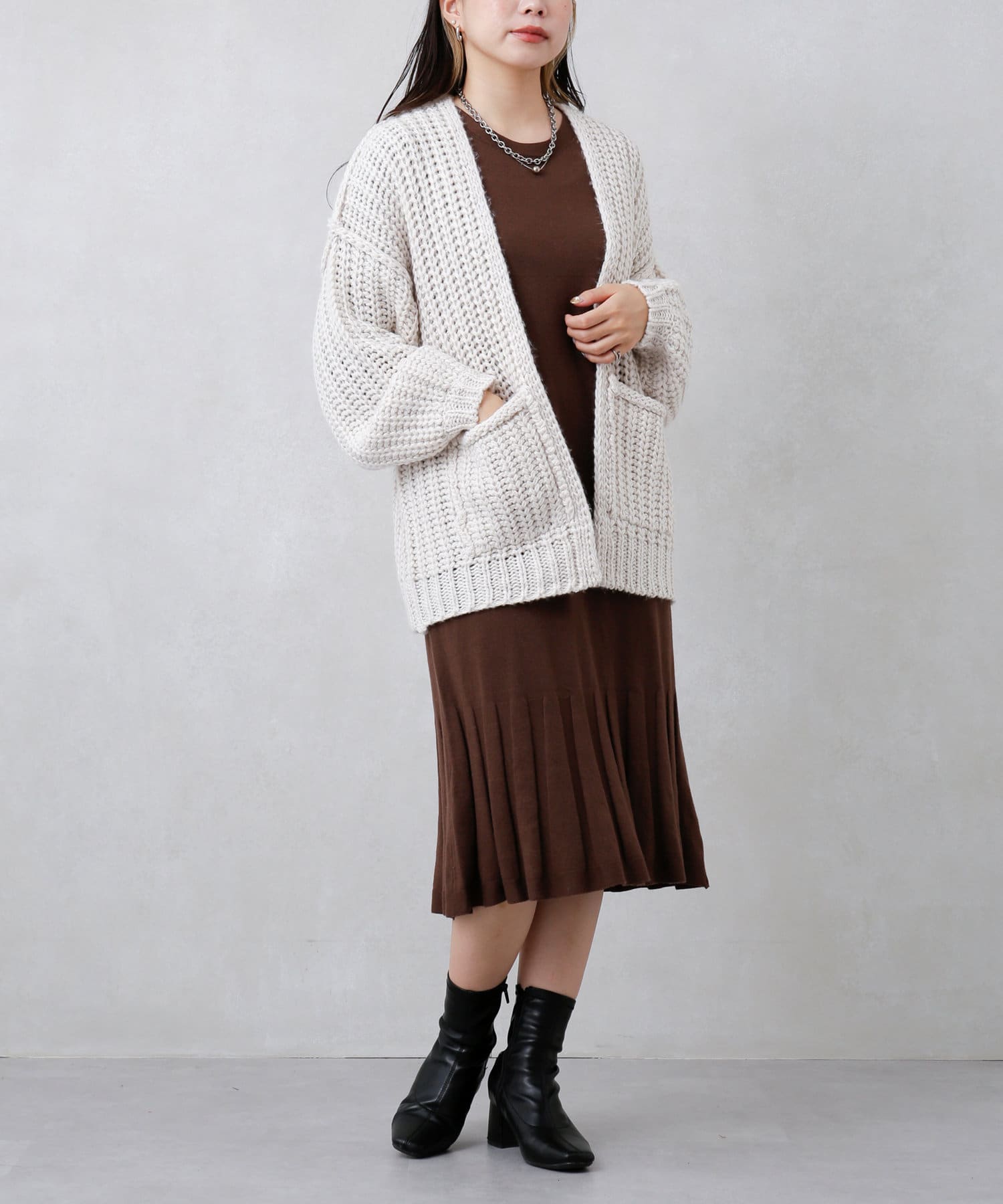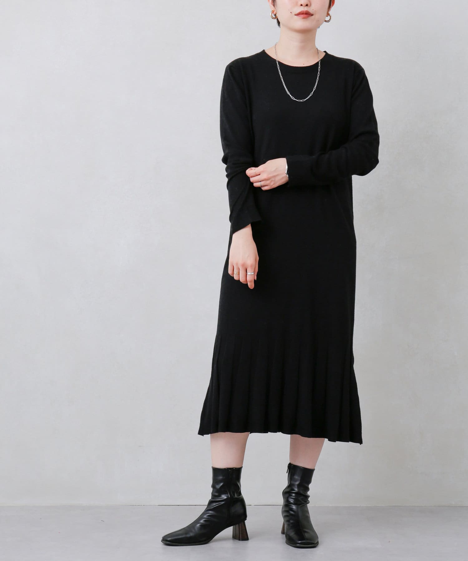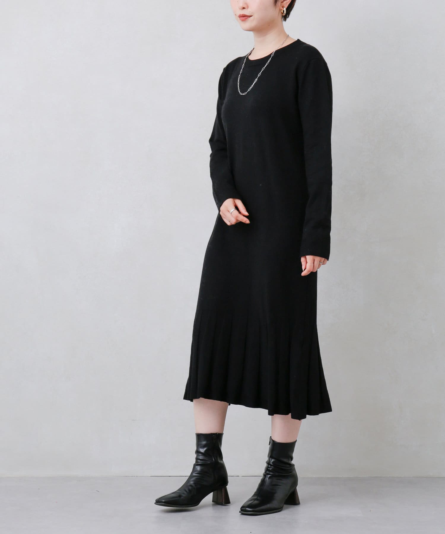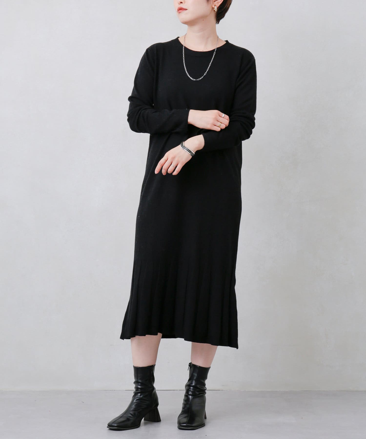 ・ニット・ニットワンピース・ワンピース・プリーツ・デザインワンピース・ゆったりシルエット・シンプルワンピース・ロングワンピース・21AW・チュニック丈ワンピース・#otona_knitdress