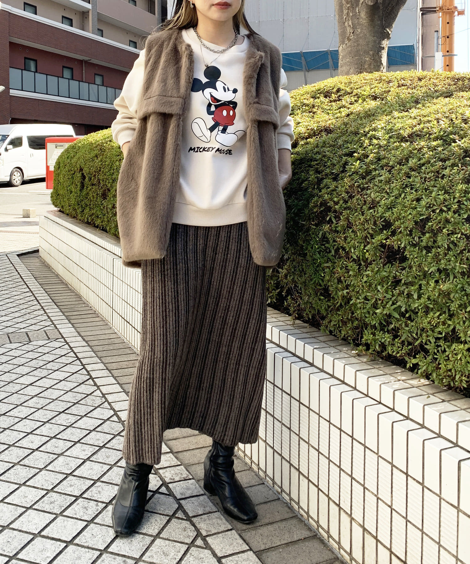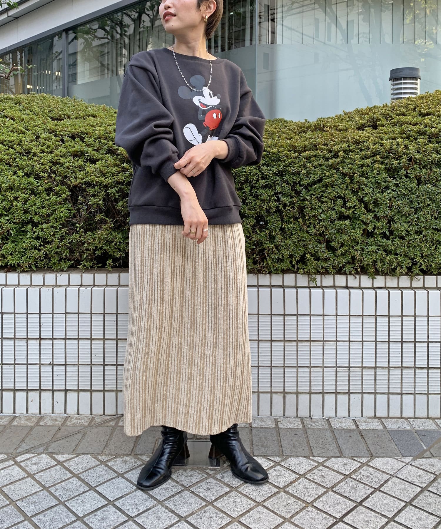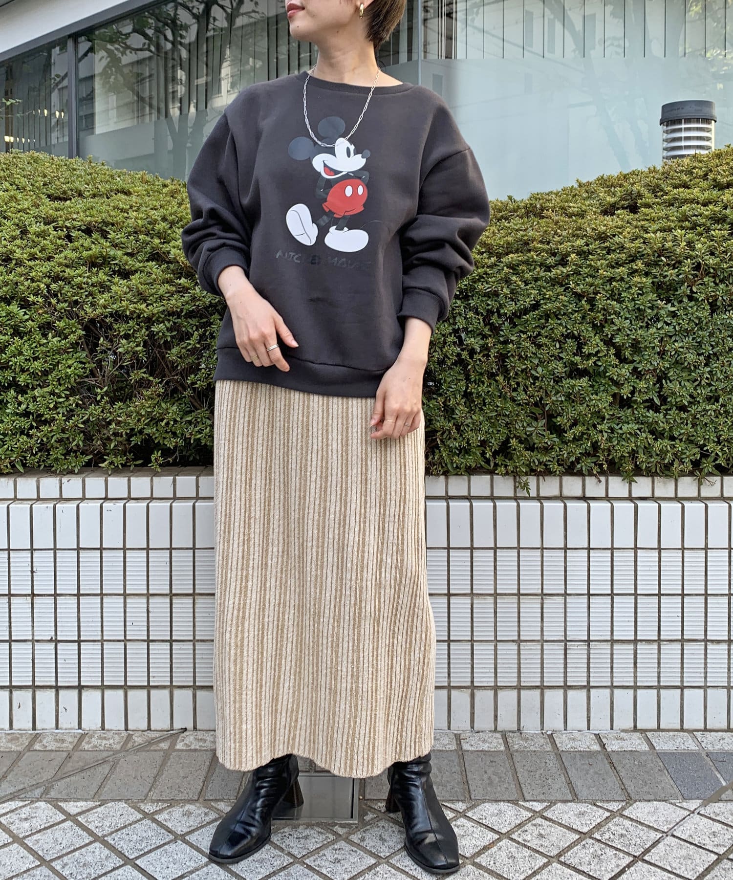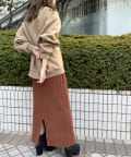 ニットスカートと合わせたトレンド感のあるスタイリングがおすすめです。