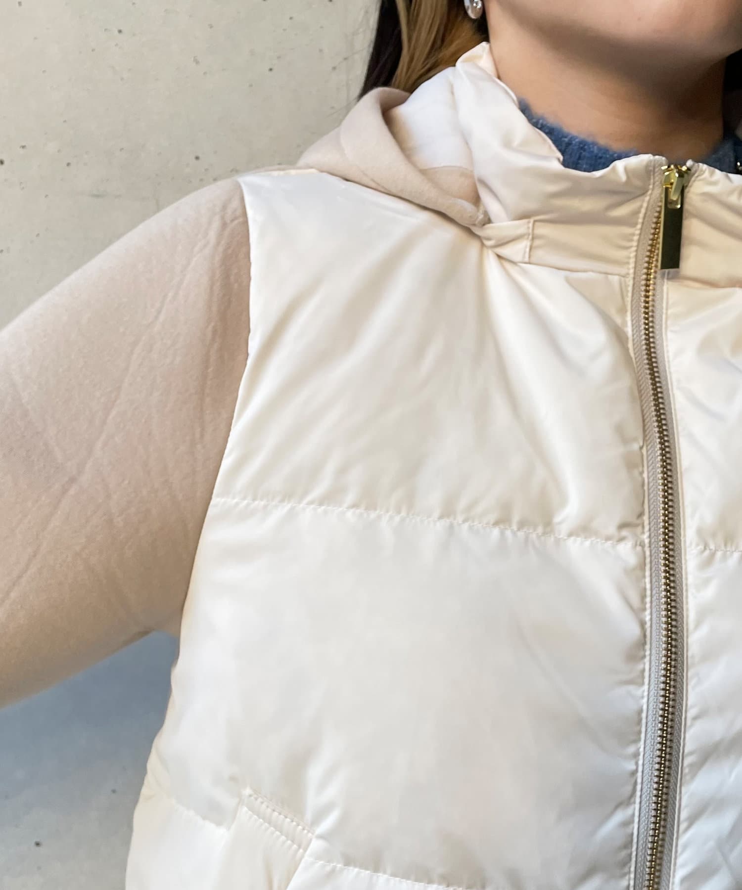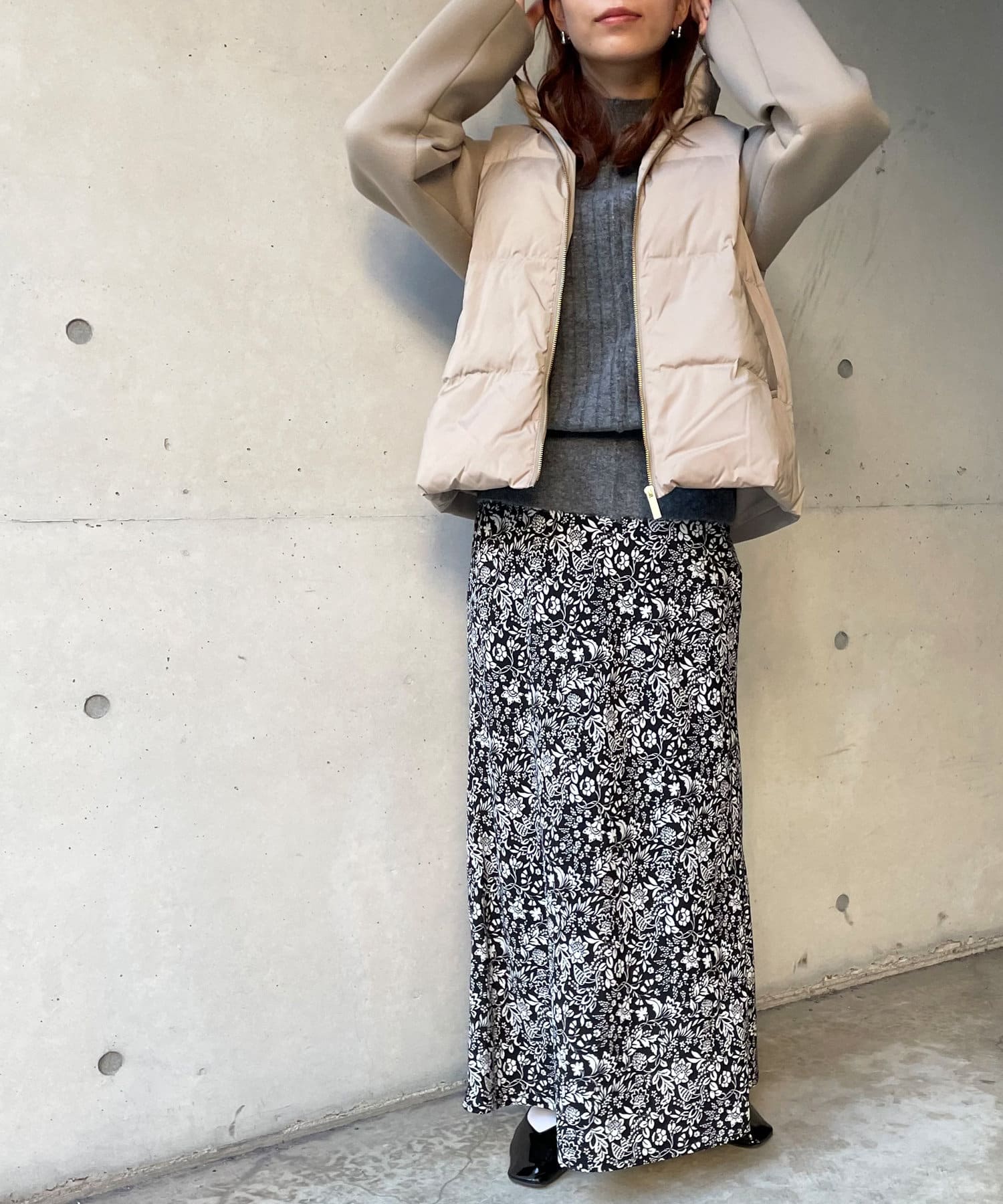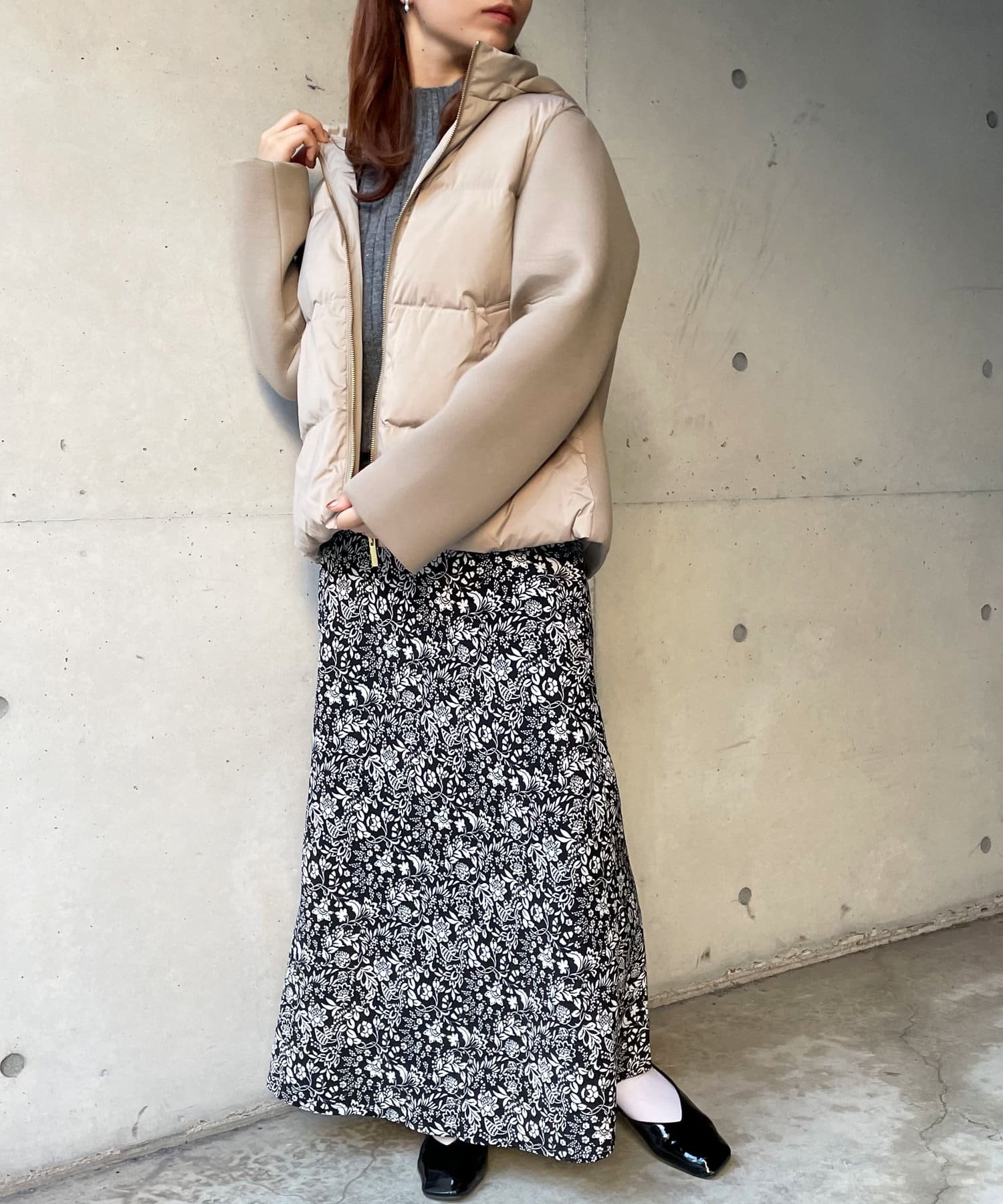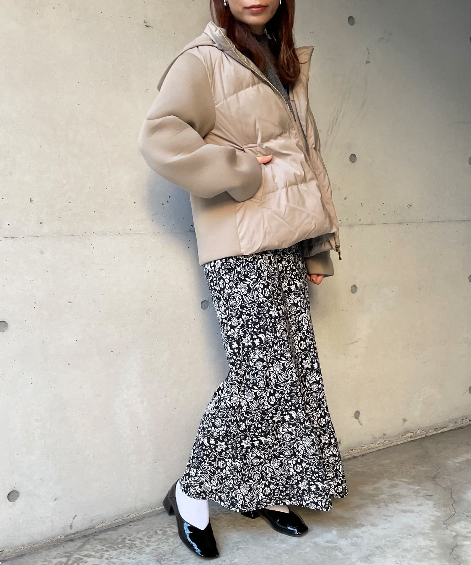 ショート丈で着膨れ感もないので、ニットワンピースやハイネックニットとコーディネートするのがオススメです。