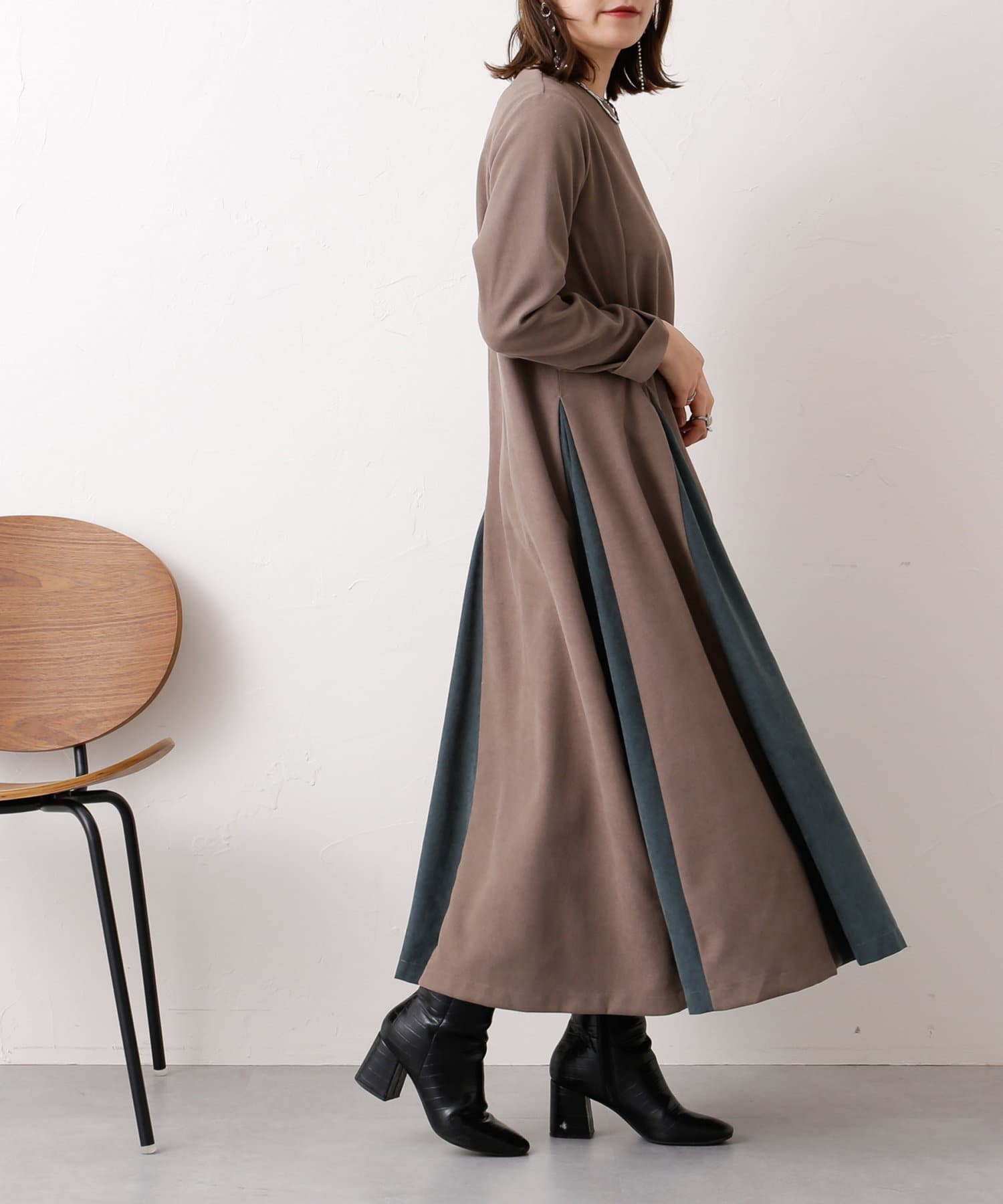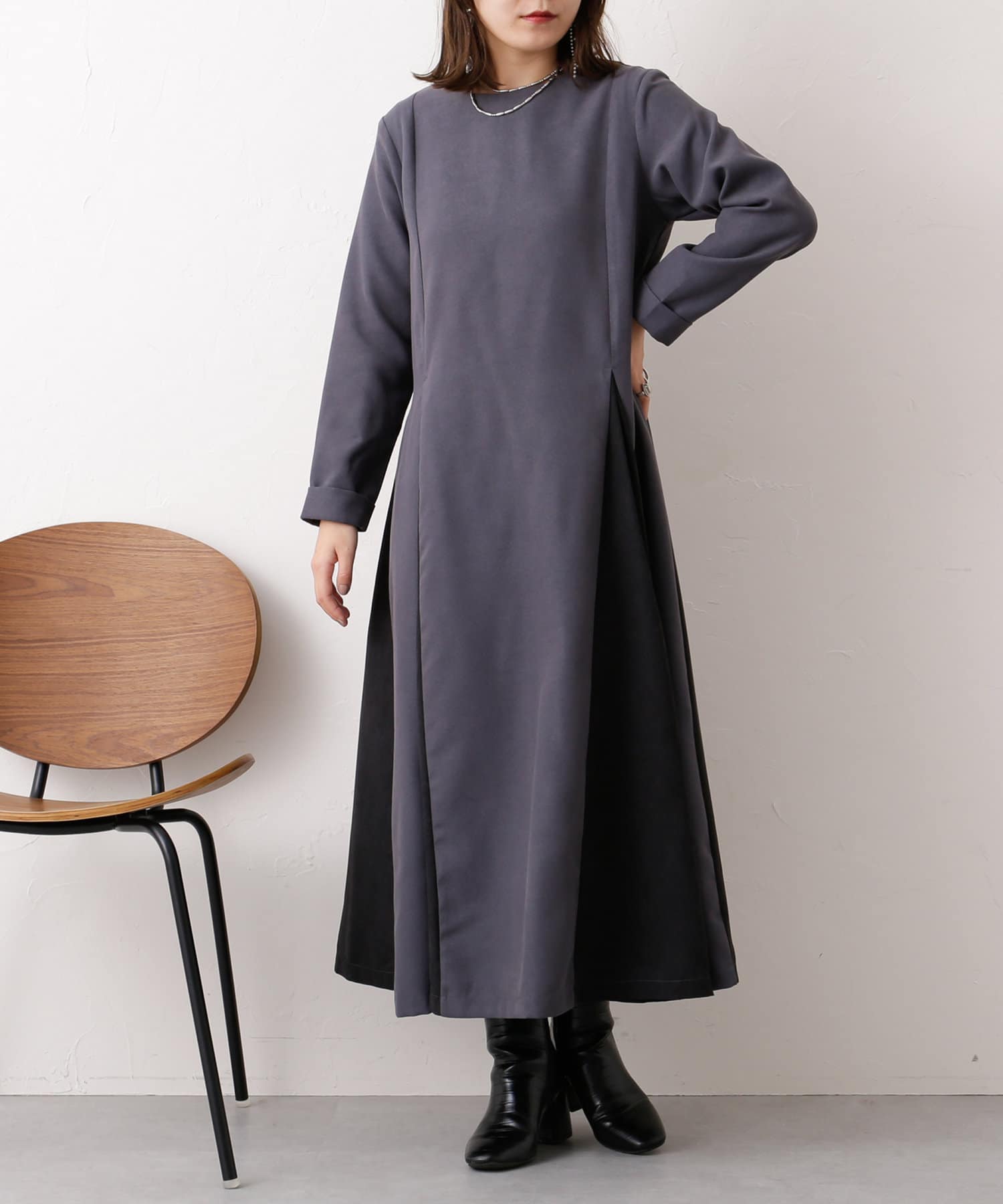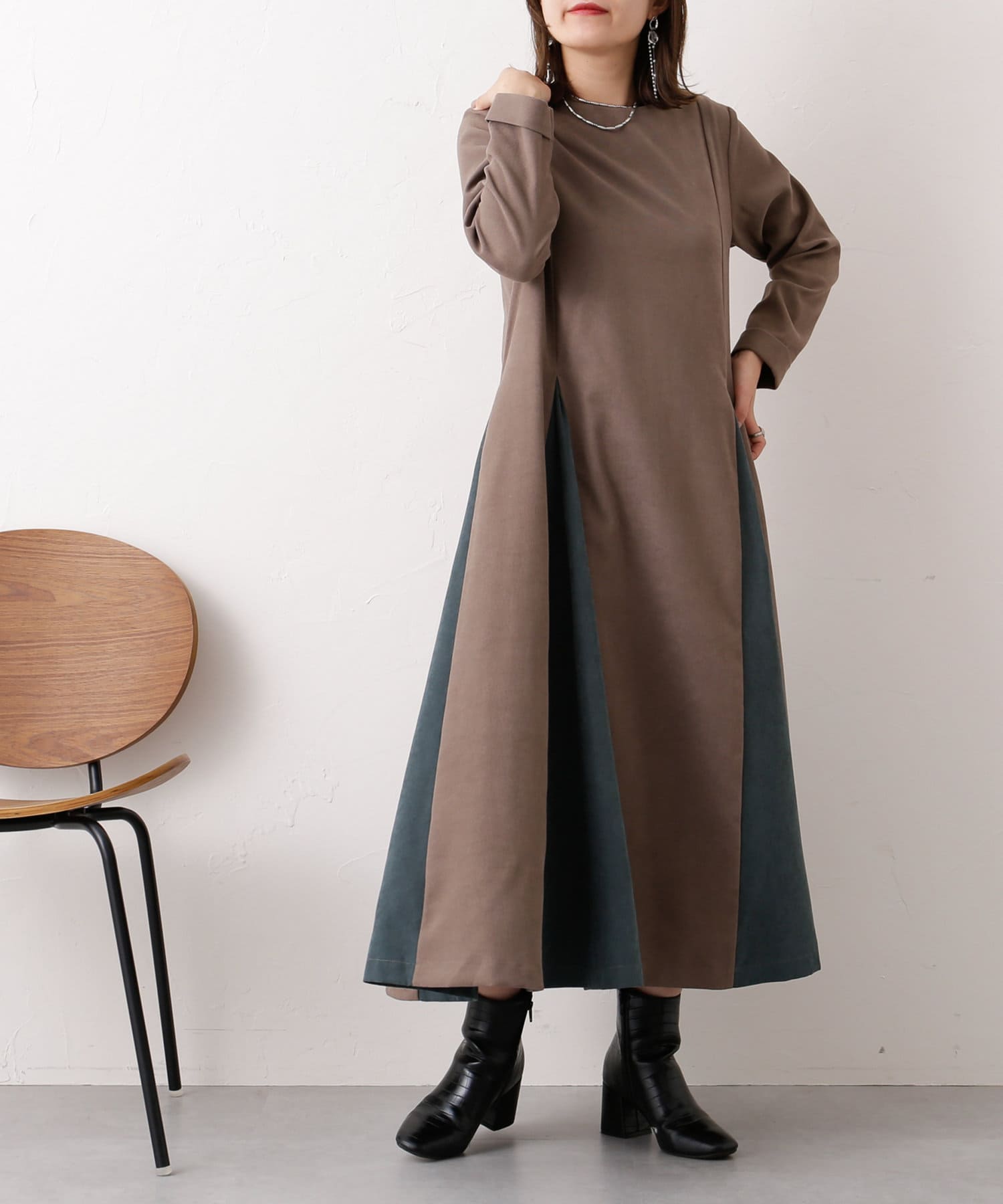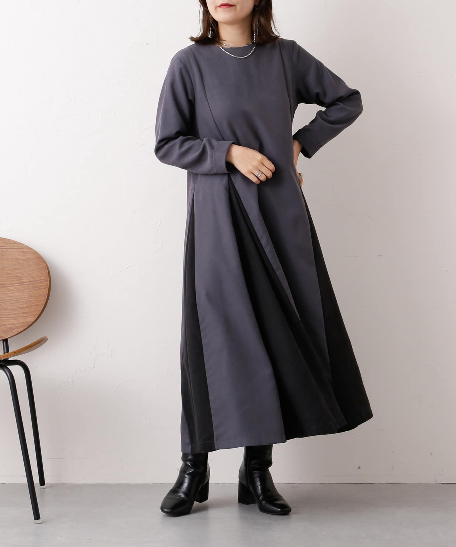 ・ワンピース・配色デザイン・配色ワンピース・ゆったりシルエット・シンプルデザイン・21AW・ロングワンピース・二次会・パーティ・女子会・#otona_saleop