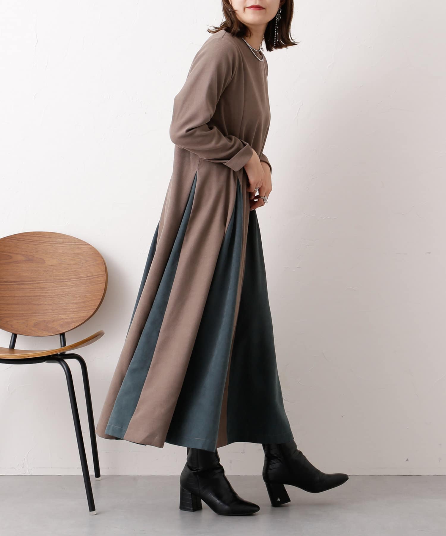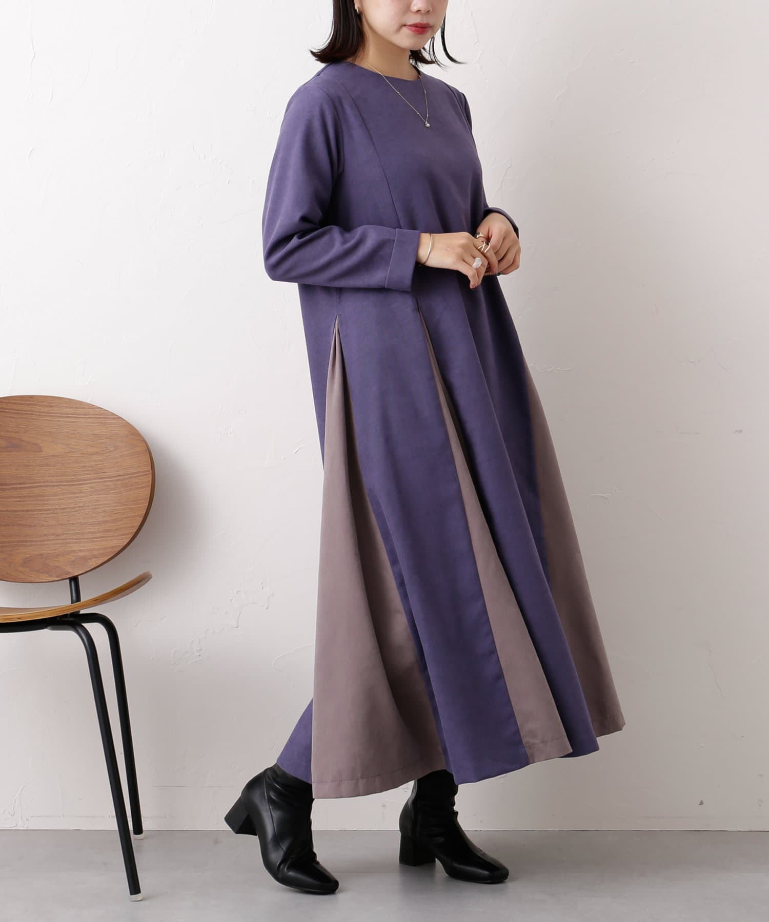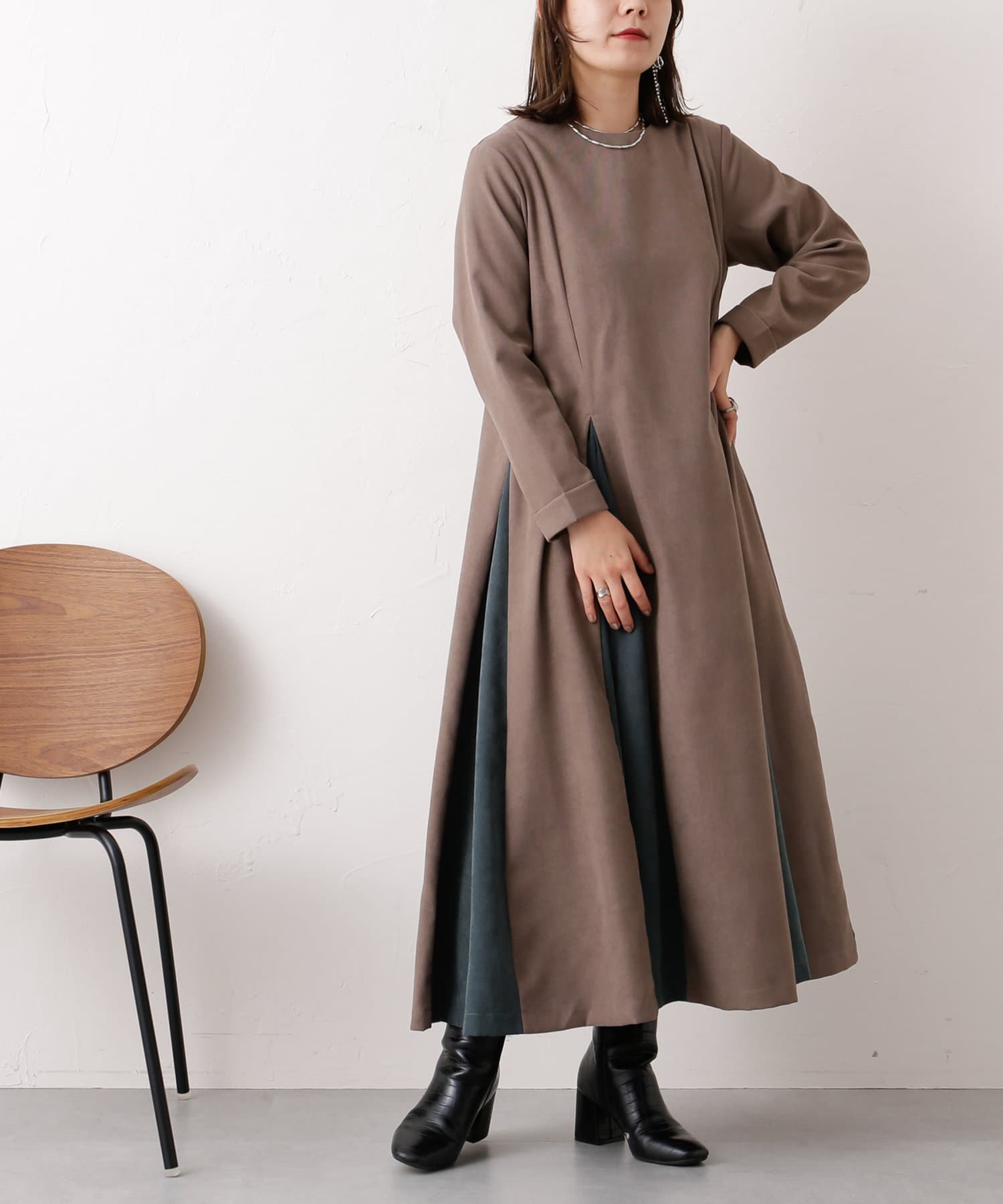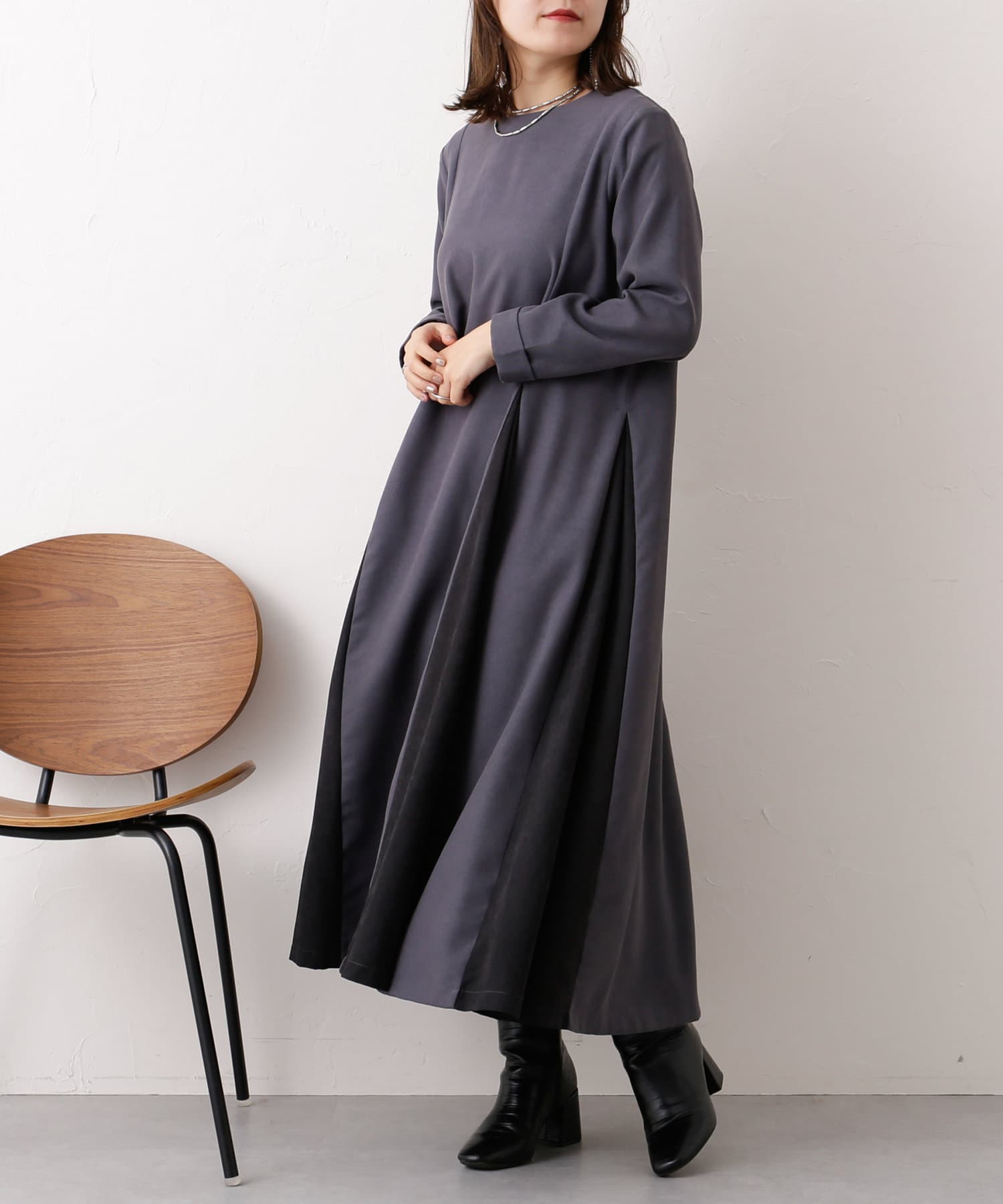 ・ワンピース・配色デザイン・配色ワンピース・ゆったりシルエット・シンプルデザイン・21AW・ロングワンピース・二次会・パーティ・女子会・#otona_saleop
