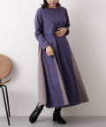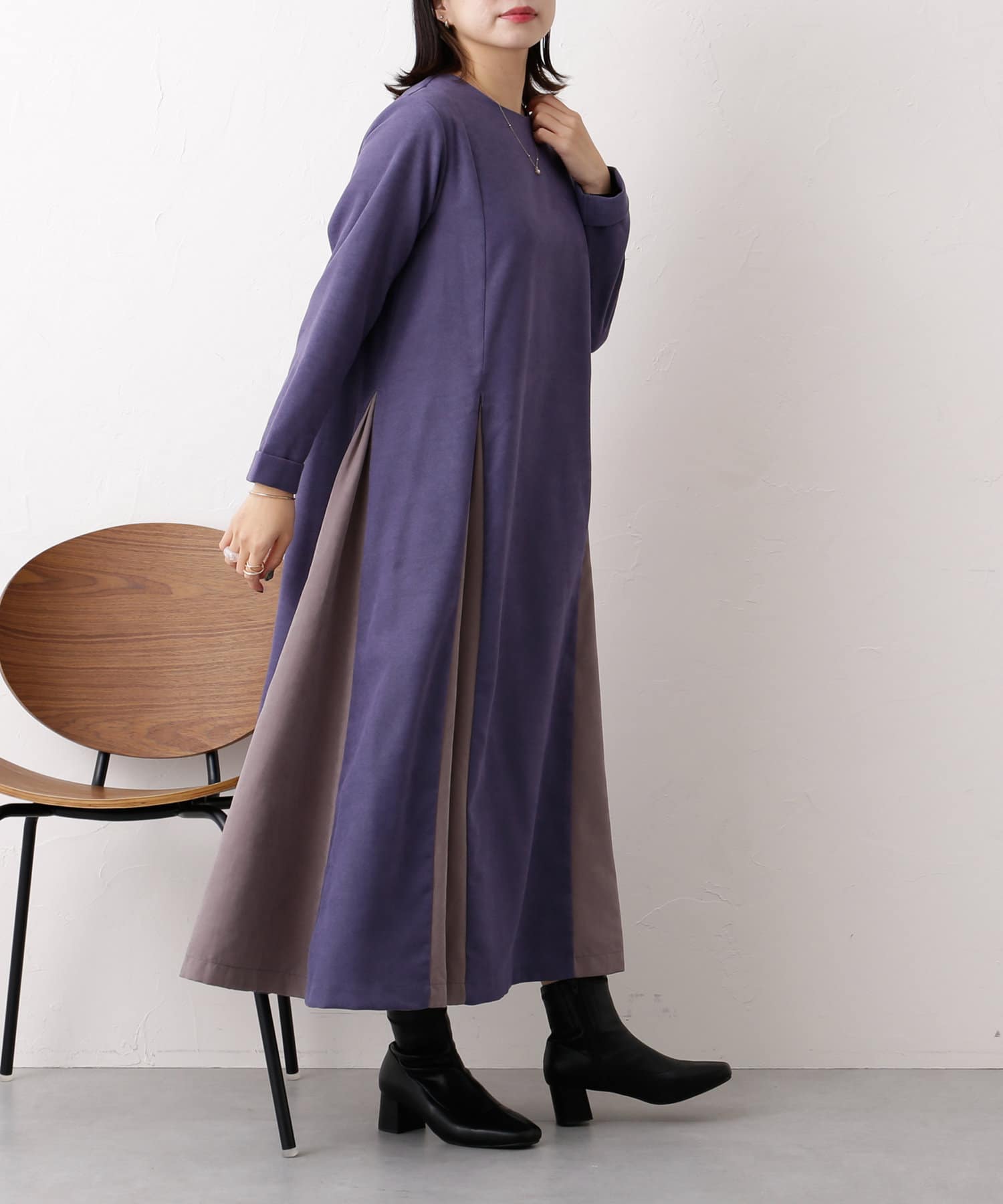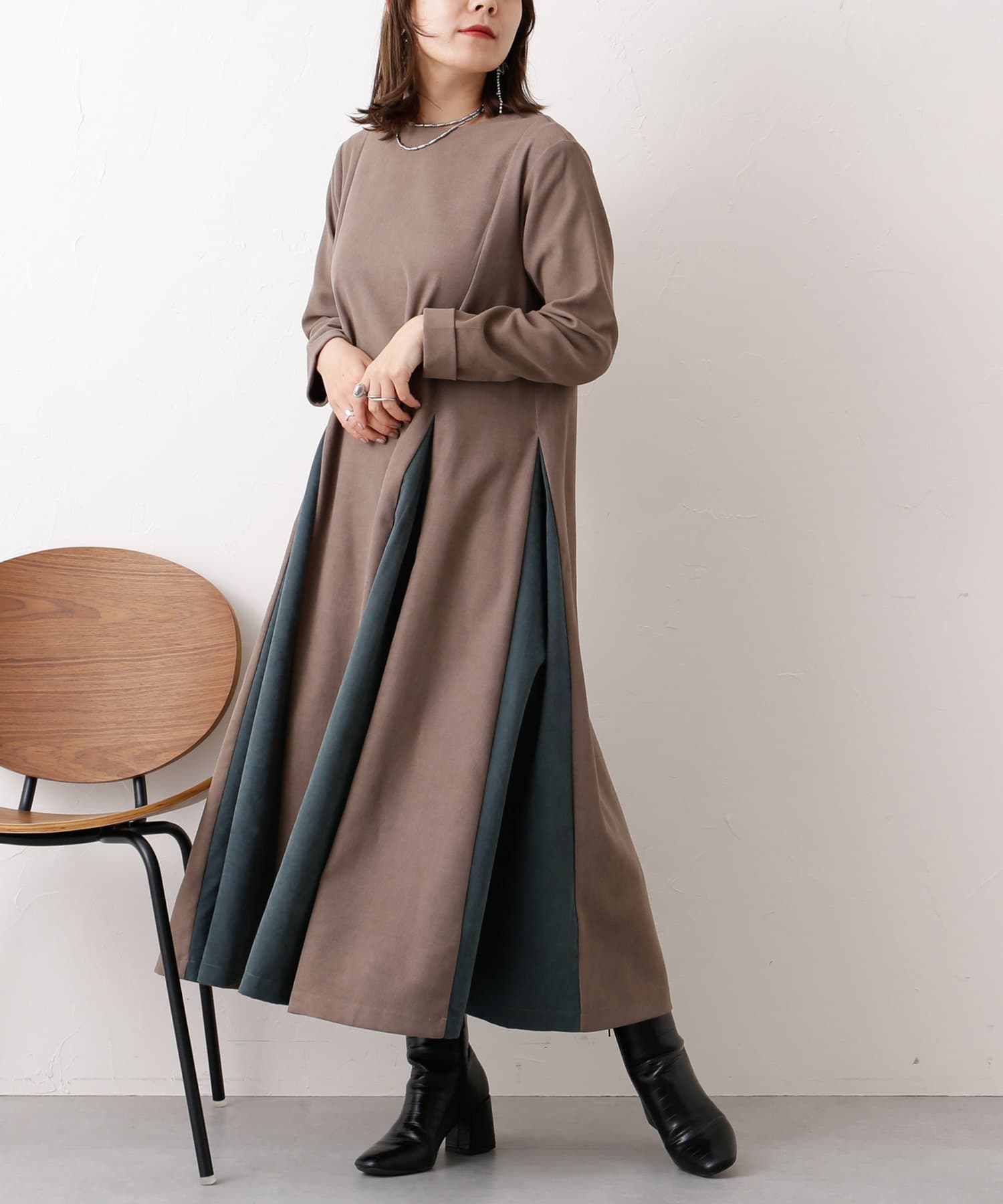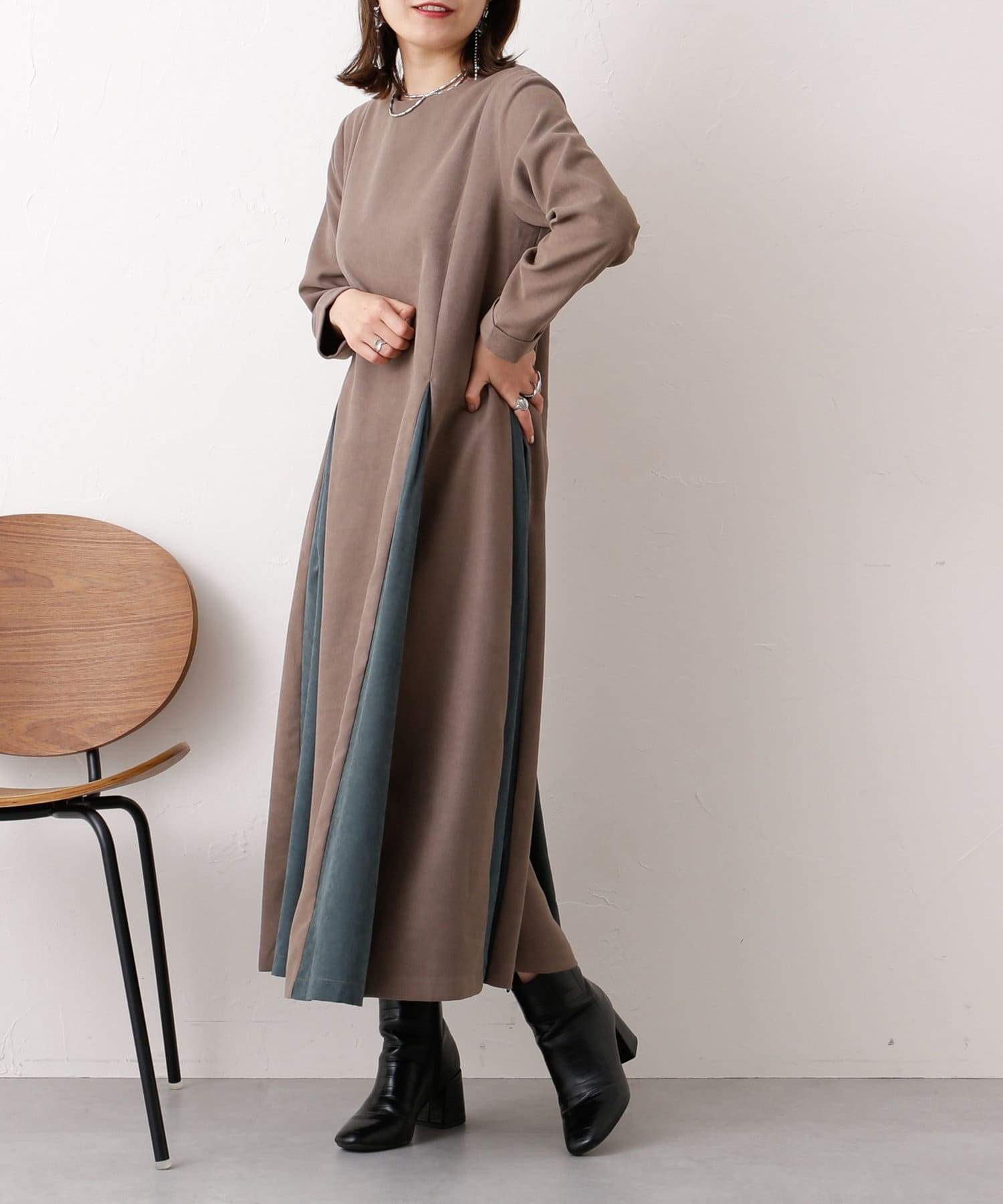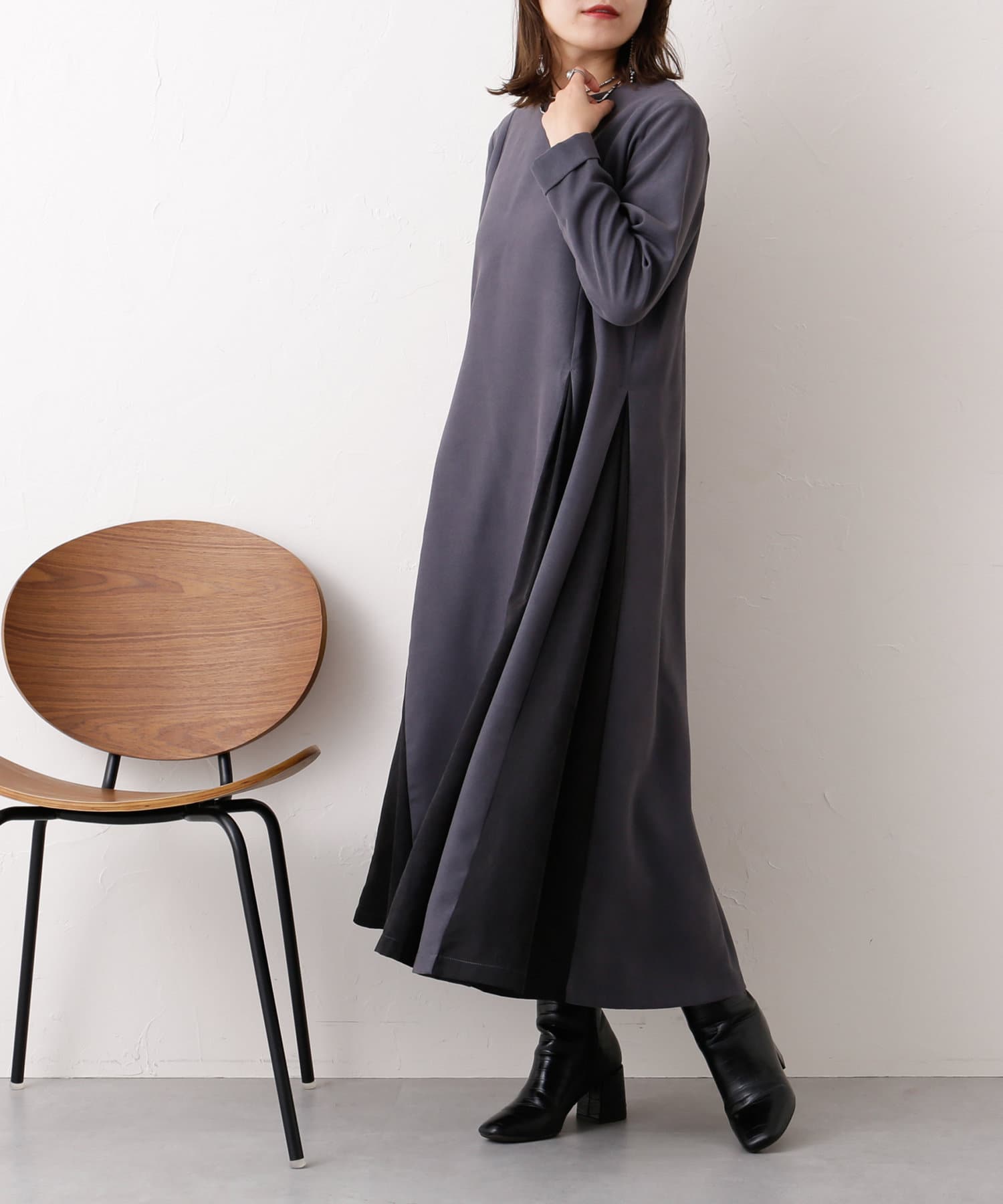 ・ワンピース・配色デザイン・配色ワンピース・ゆったりシルエット・シンプルデザイン・21AW・ロングワンピース・二次会・パーティ・女子会・#otona_saleop