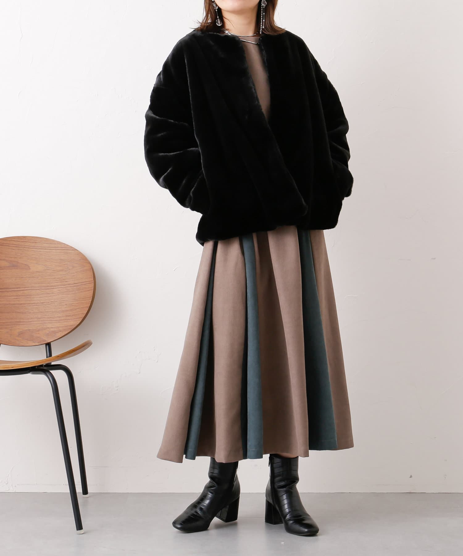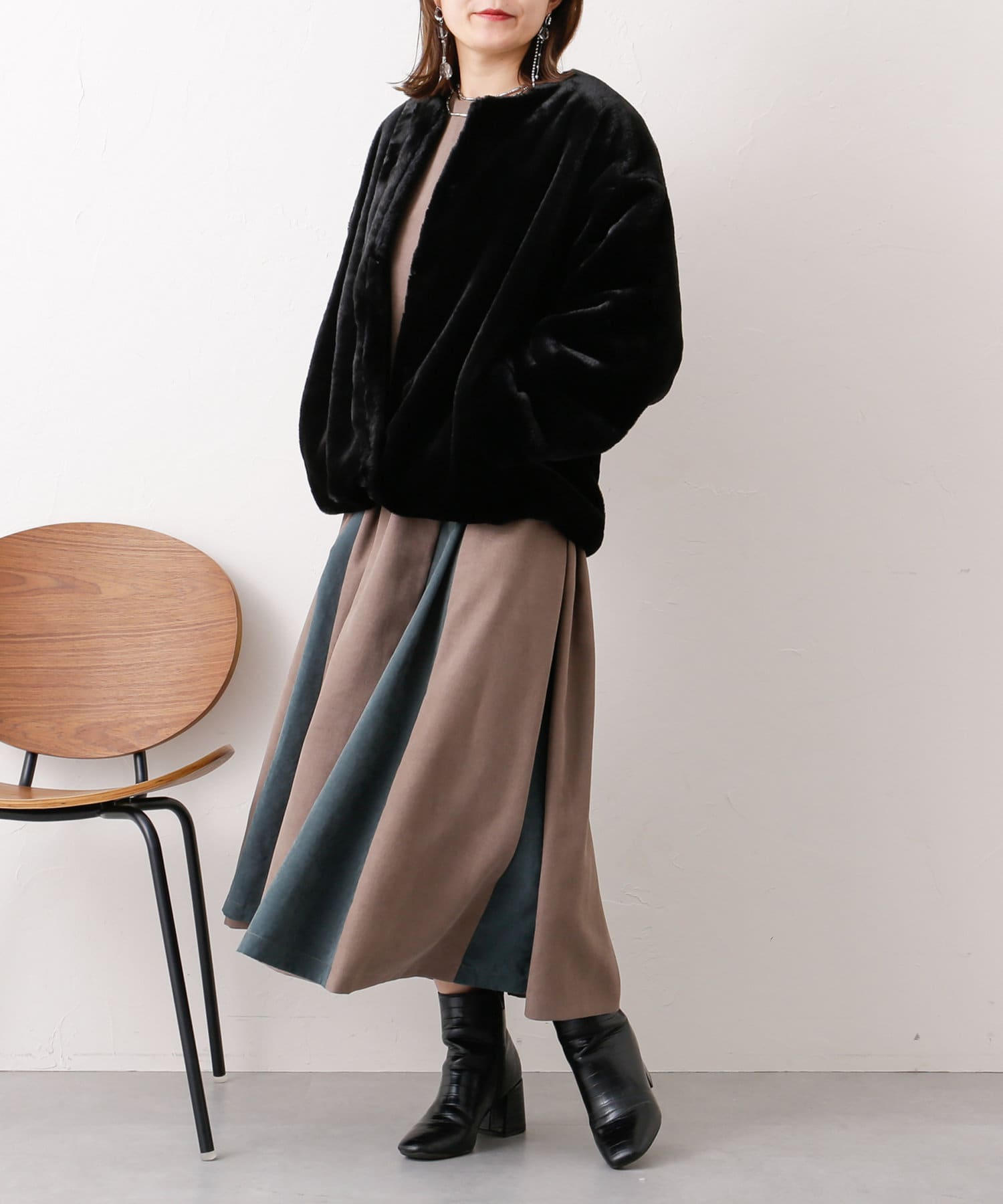 ・1枚でコーディネートが完成するデザインです。ショートブーツでシンプルに合わせたり、ファーベストを合わせたレイヤードコーディネートがオススメです。