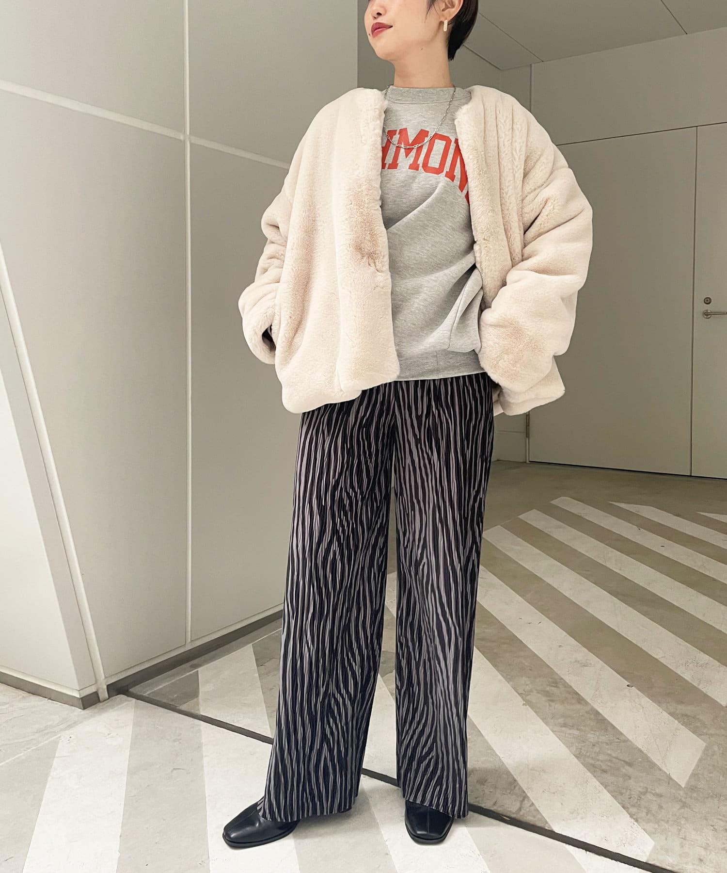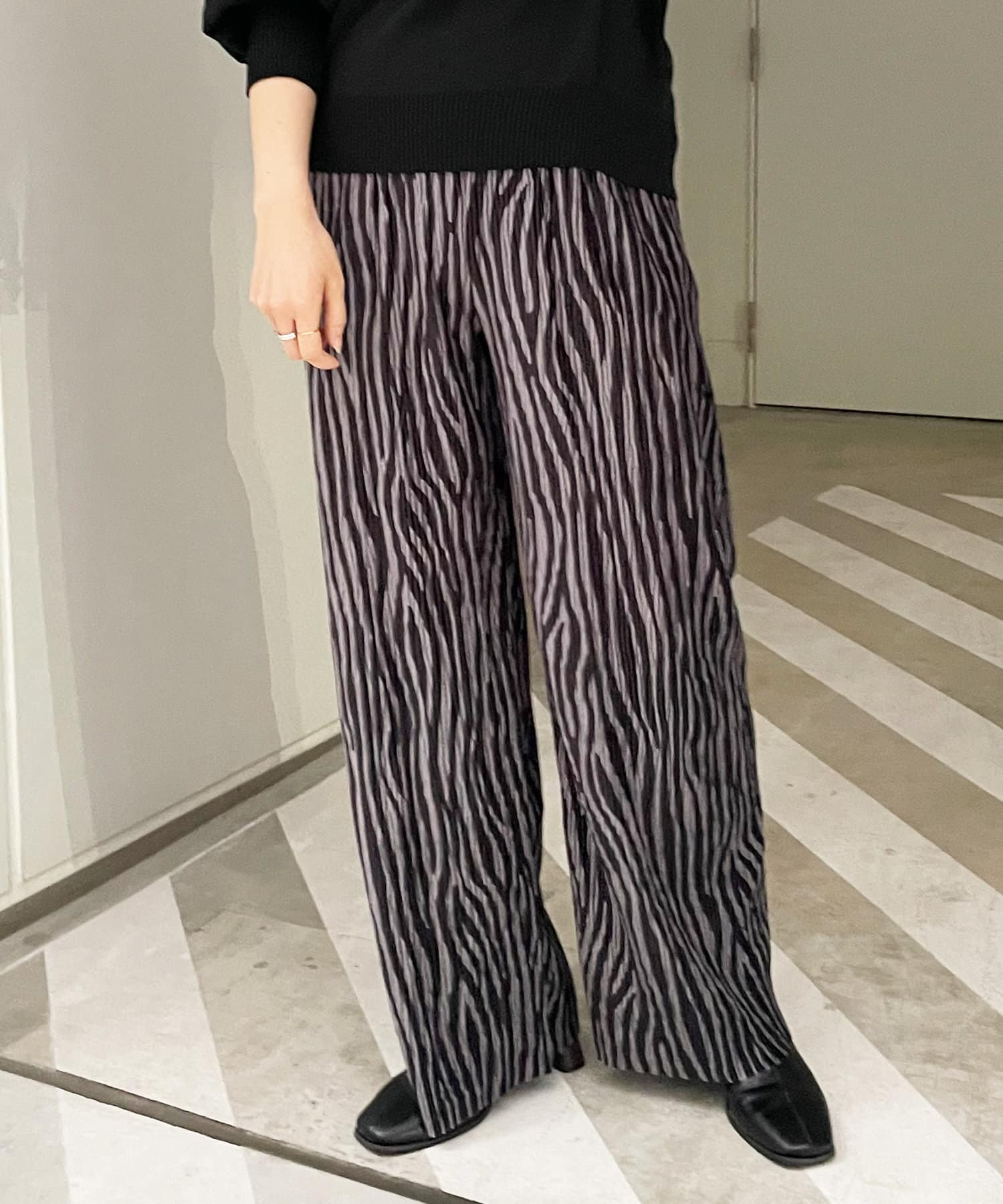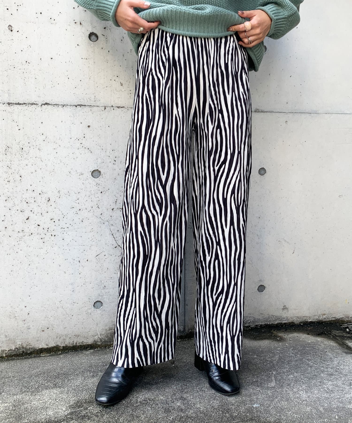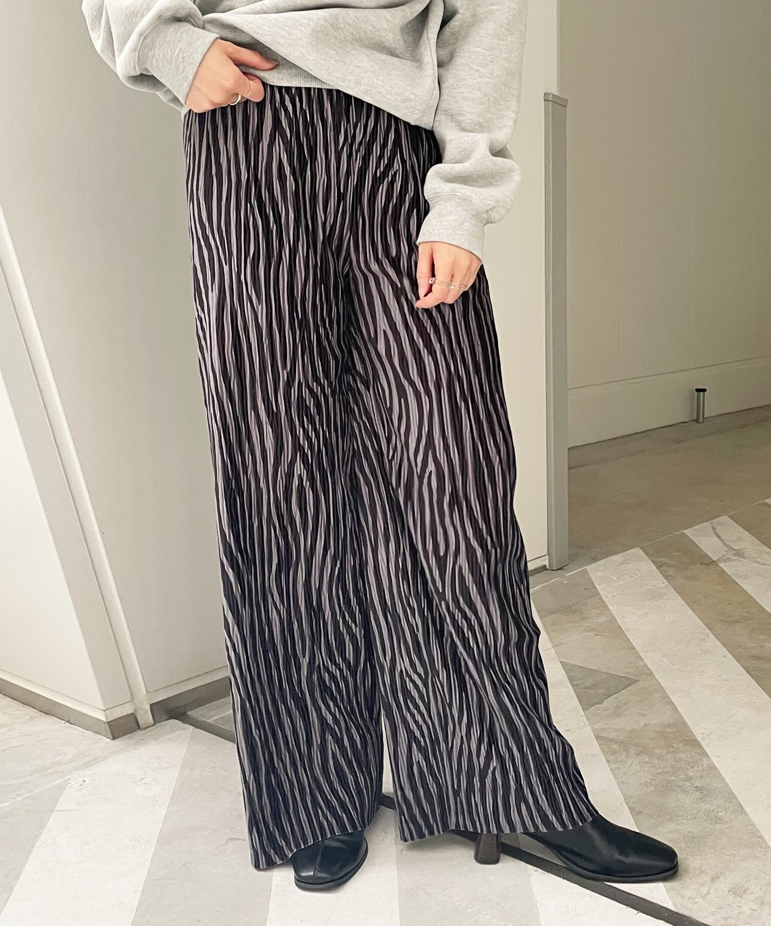 【WEB限定】ゼブラ柄起毛プリーツパンツ
