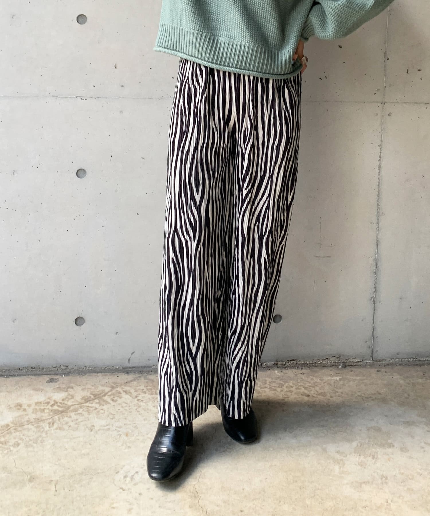 ・ゼブラ柄・アニマル柄・プリーツパンツ・ストレートパンツ・ワイドパンツ・ゆるパンツ・イージーパンツ・モノトーン・秋冬・秋ボトムス・冬ボトムス・21AW
