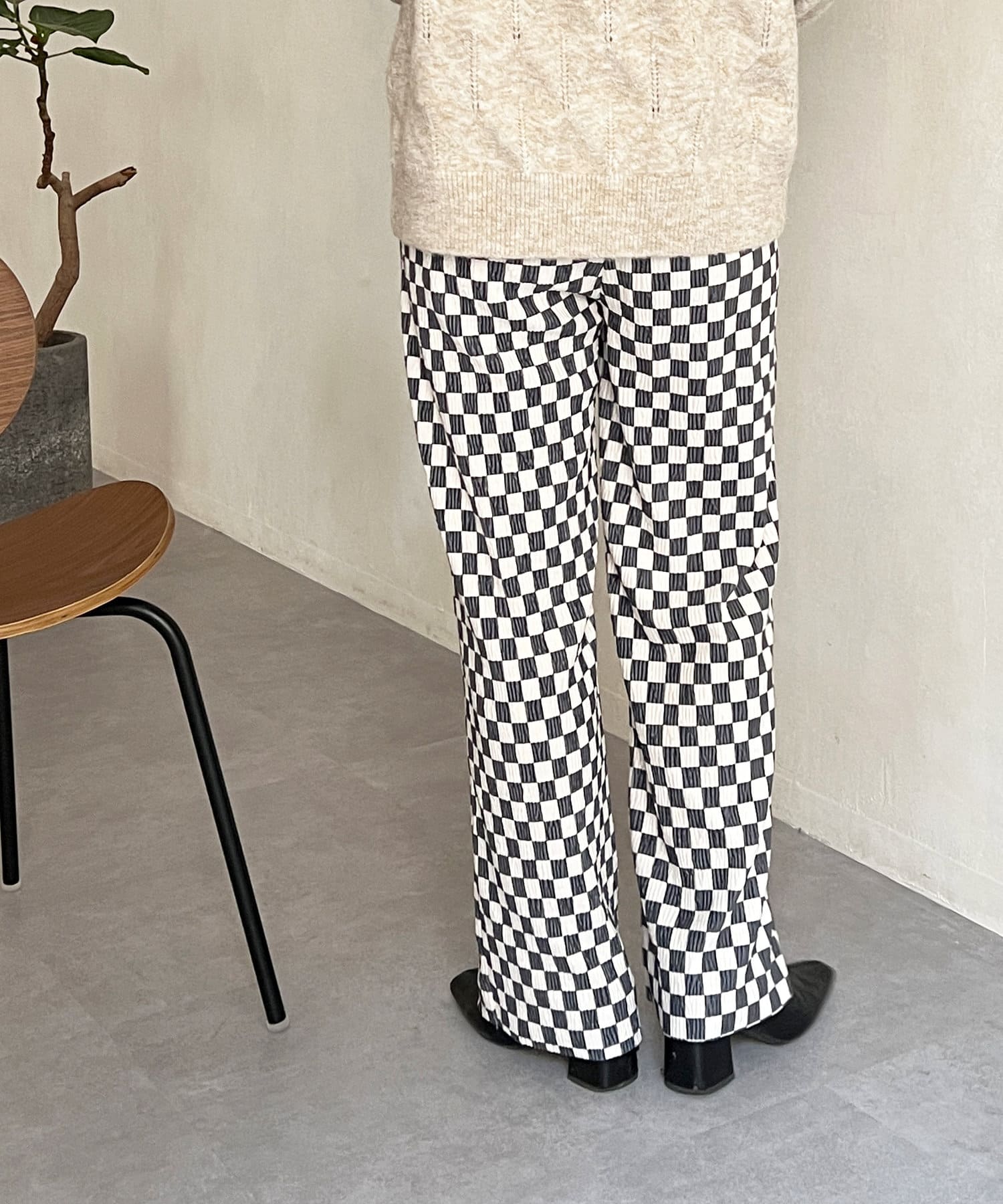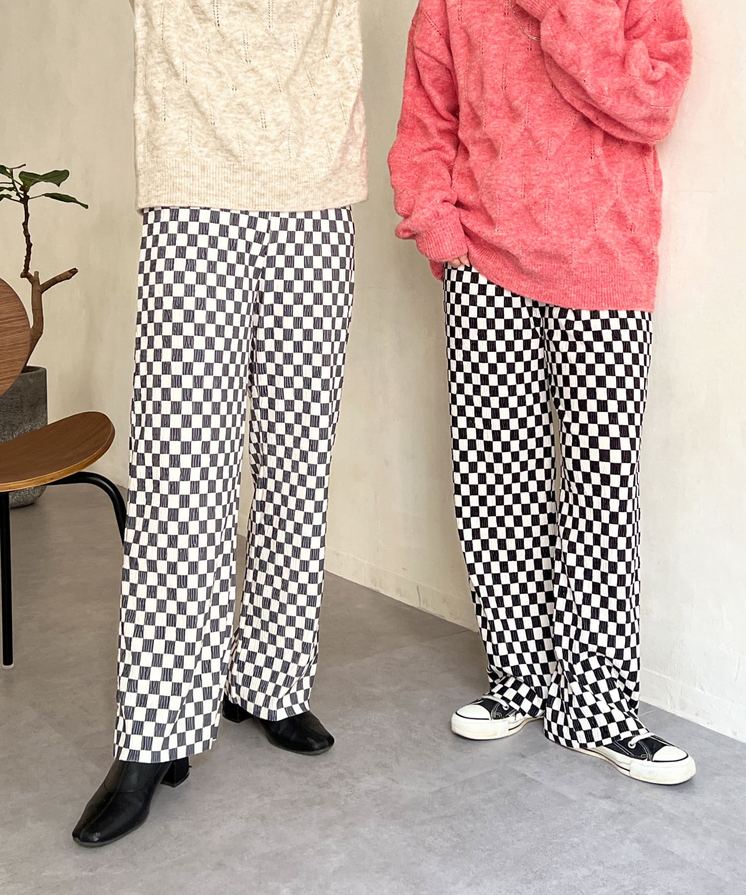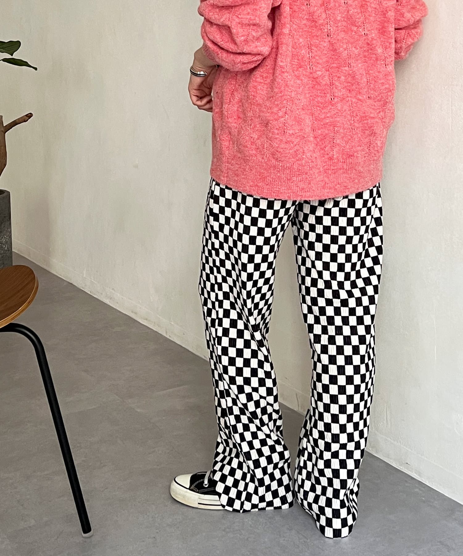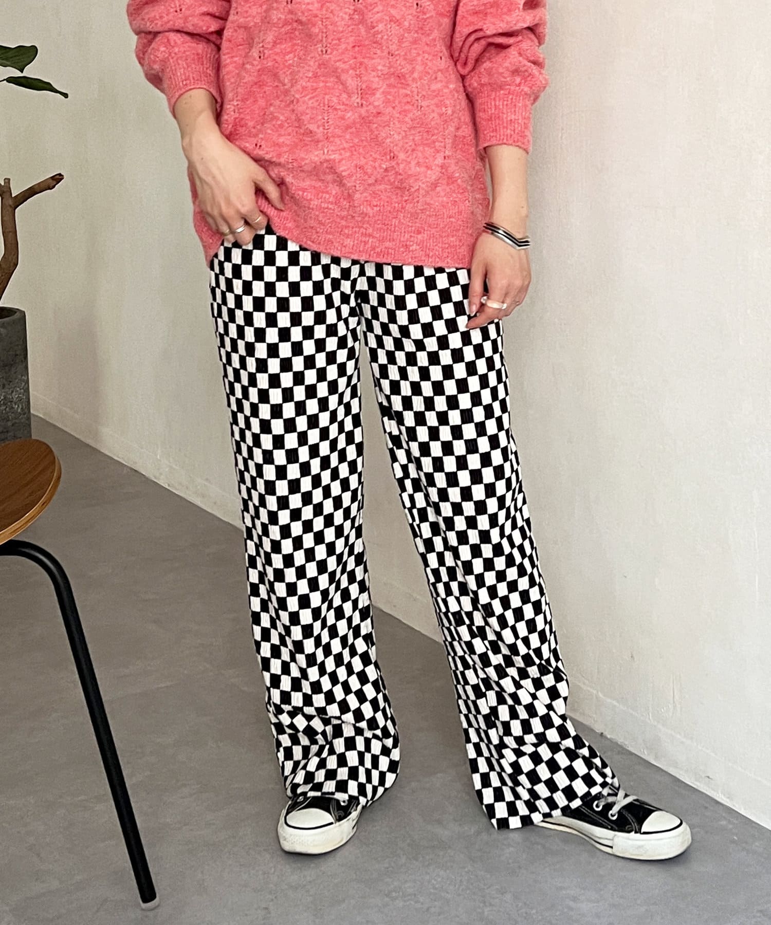 ・チェック・チェック柄パンツ・チェッカーフラッグ・ブロックチェック・モノトーン・起毛パンツ・イージーパンツ・ゆるパンツ・21AW・柄パンツ