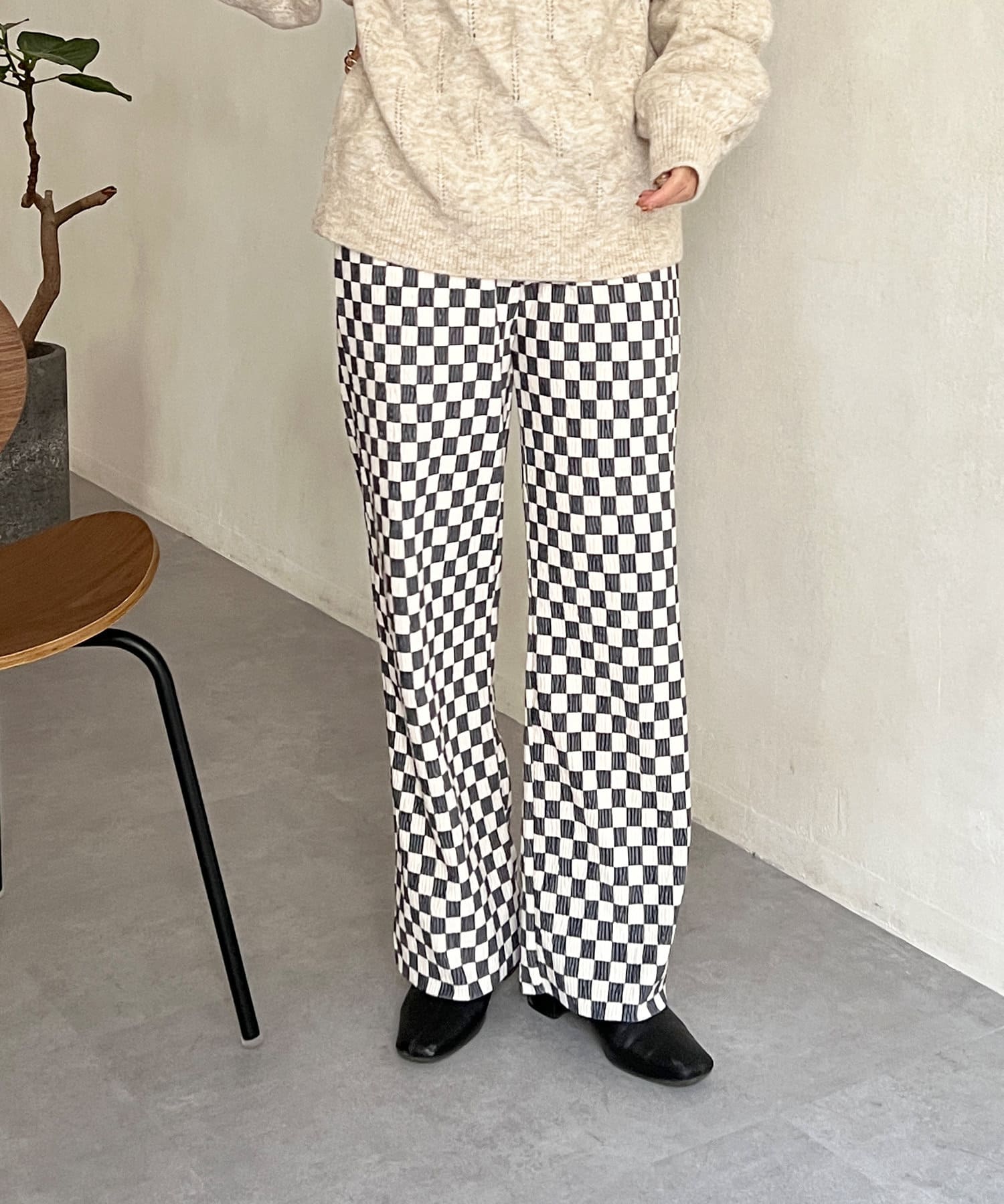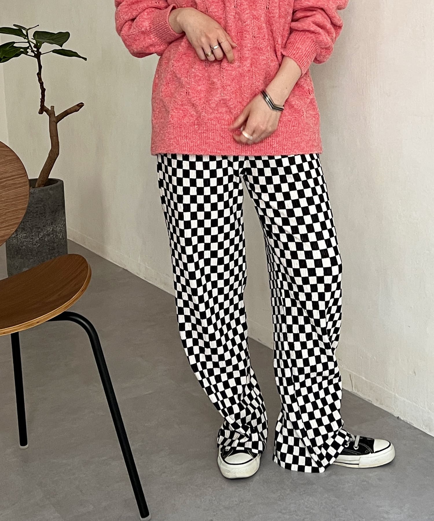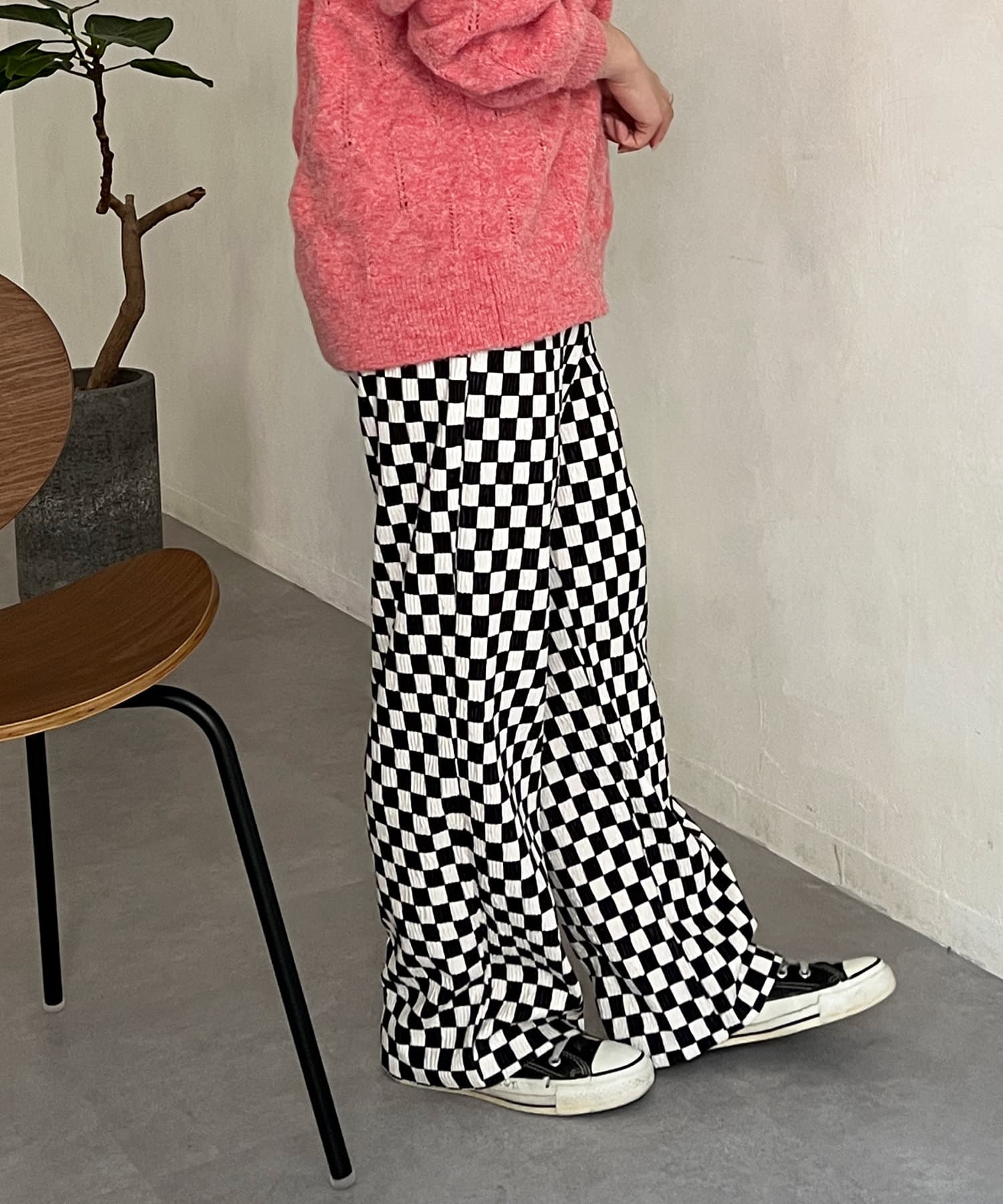 ・チェック・チェック柄パンツ・チェッカーフラッグ・ブロックチェック・モノトーン・起毛パンツ・イージーパンツ・ゆるパンツ・21AW・柄パンツ