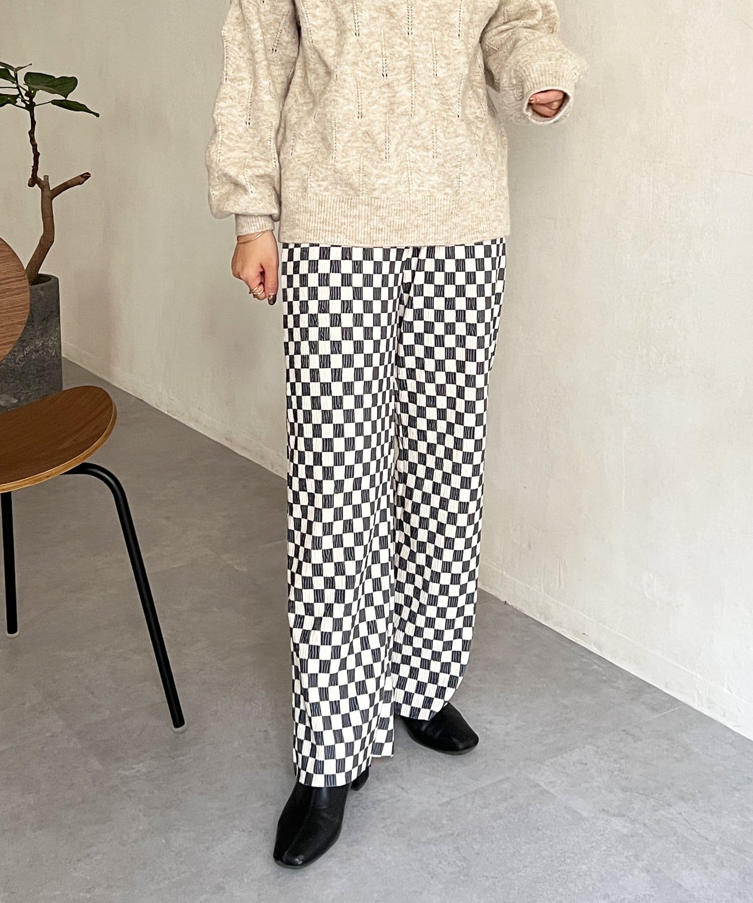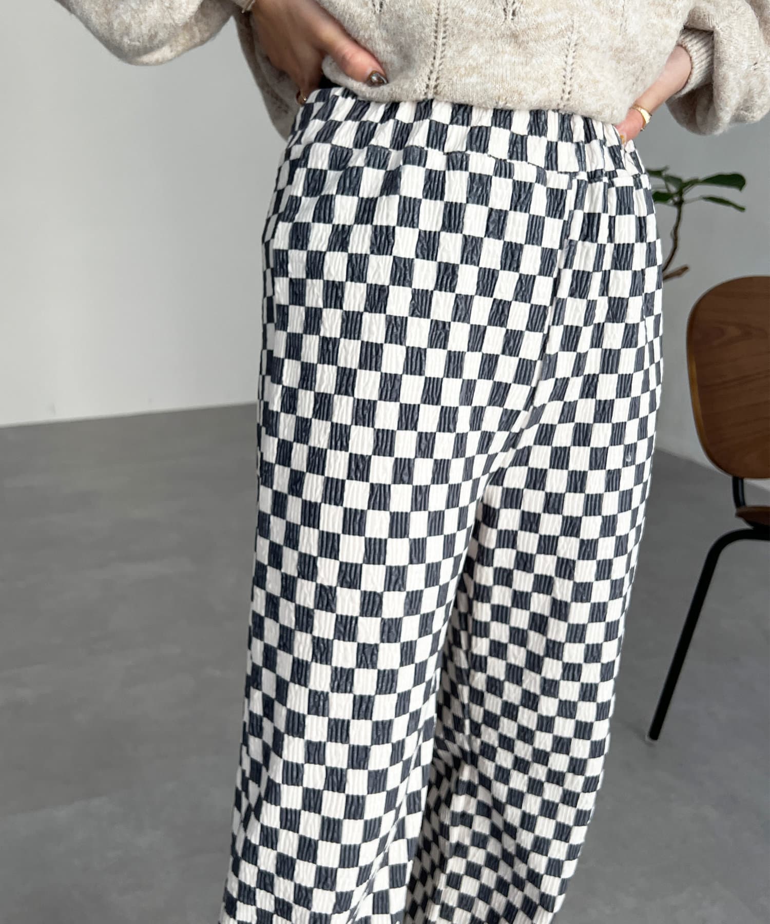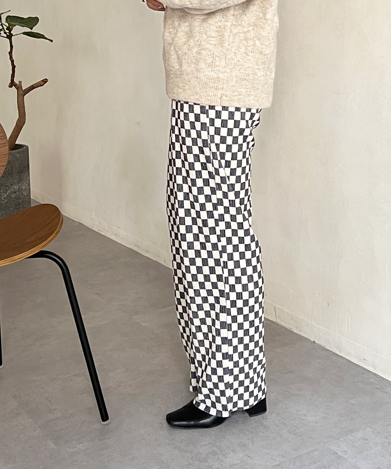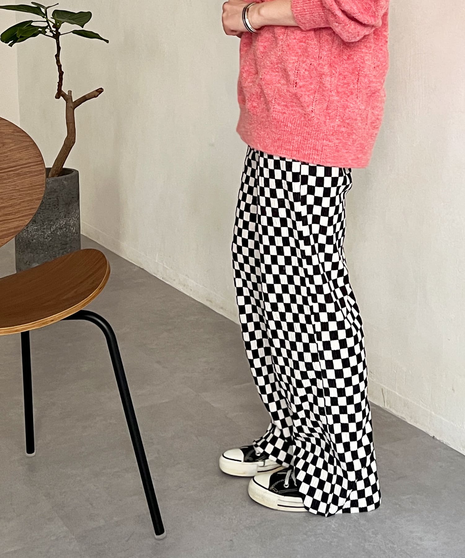・チェック・チェック柄パンツ・チェッカーフラッグ・ブロックチェック・モノトーン・起毛パンツ・イージーパンツ・ゆるパンツ・21AW・柄パンツ