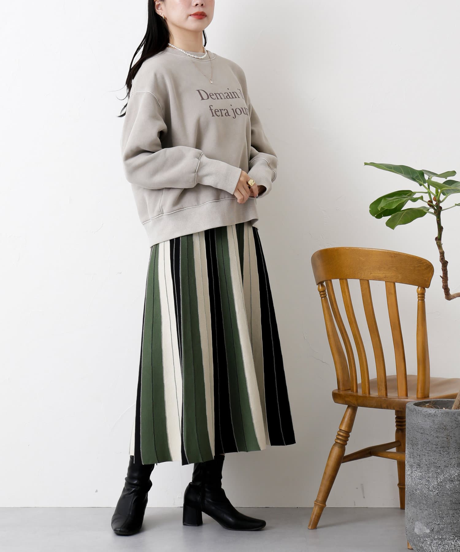 今シーズンはシアーインナーや襟付きブラウスをレイヤードしたり、ニットスカートやブーツと合わせたレディライクな着こなしがオススメです。