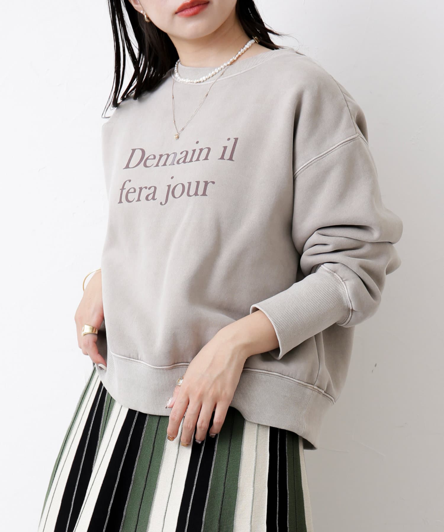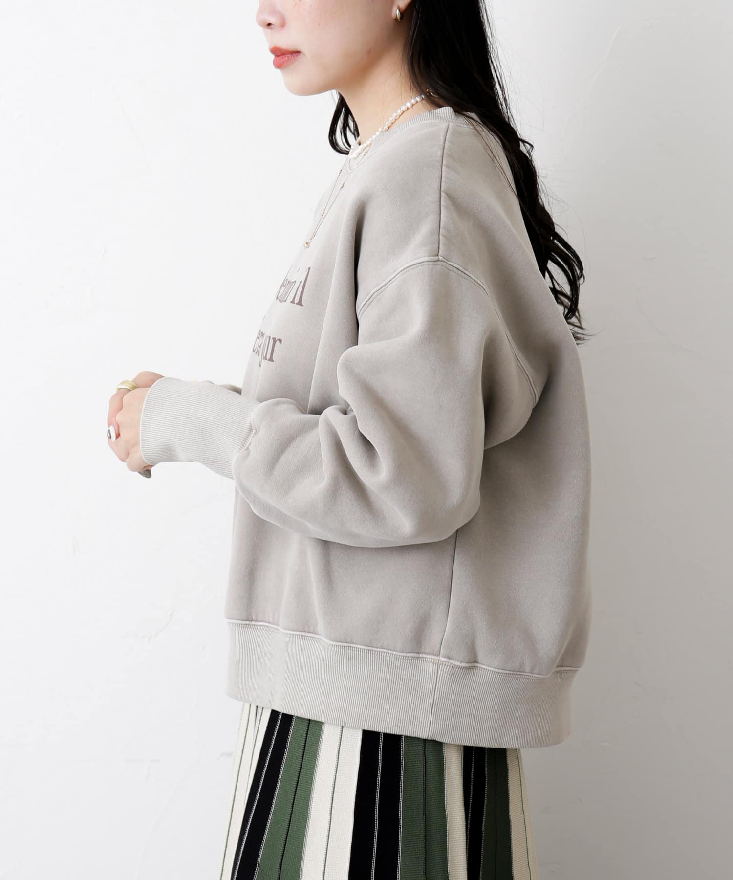 ・シンプルで様々なボトムスに合わせやすい短丈スウェットです。