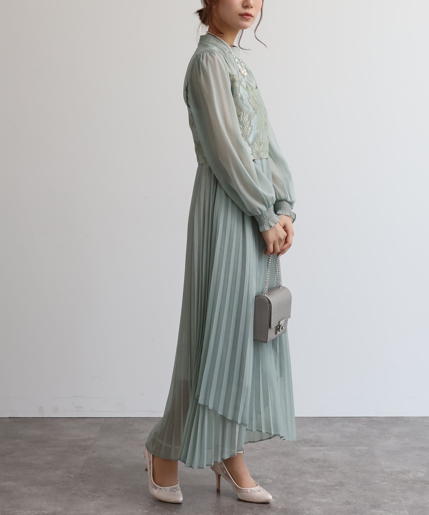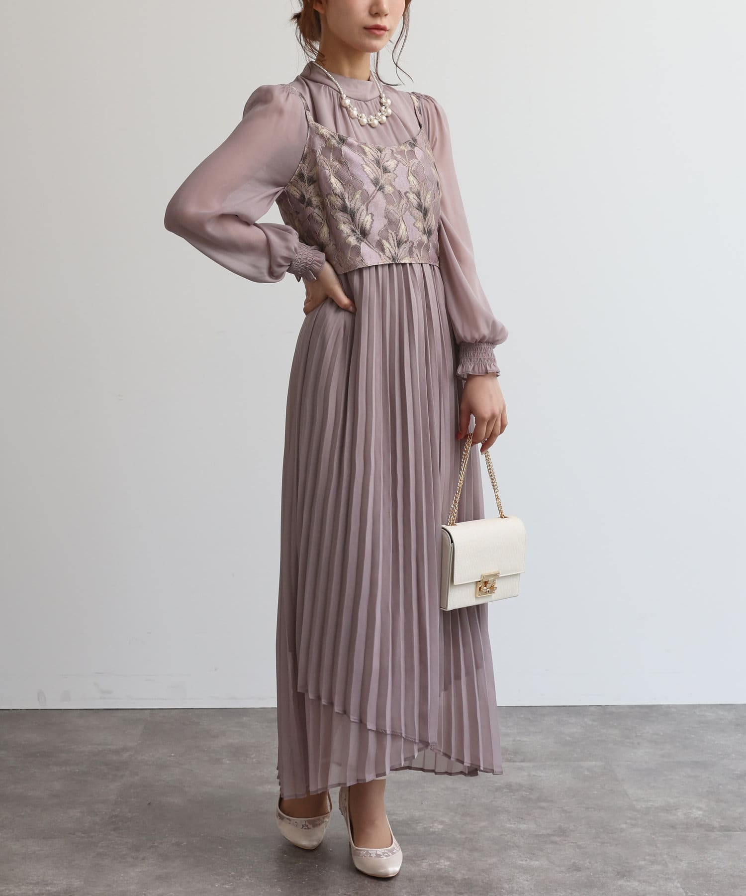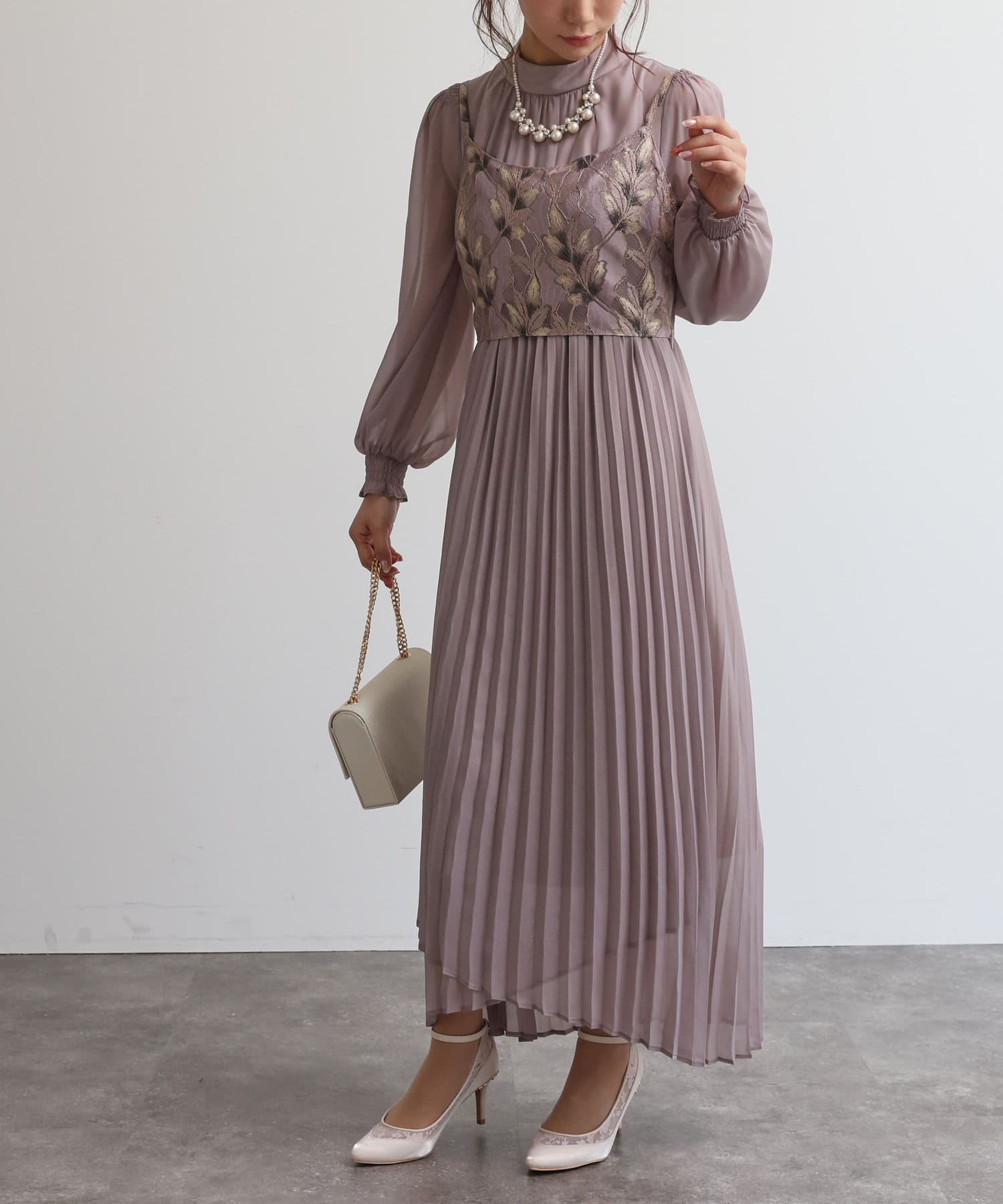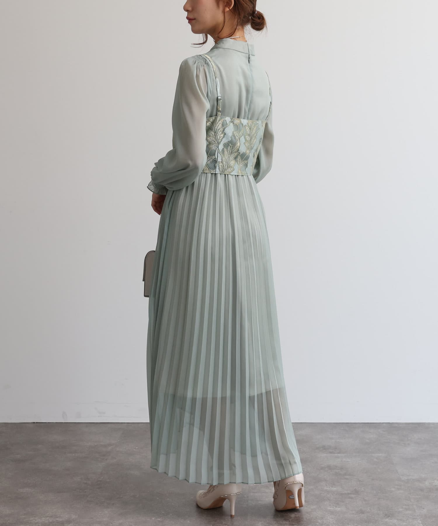 【オケージョン】レースビスチェ×プリーツワンピース