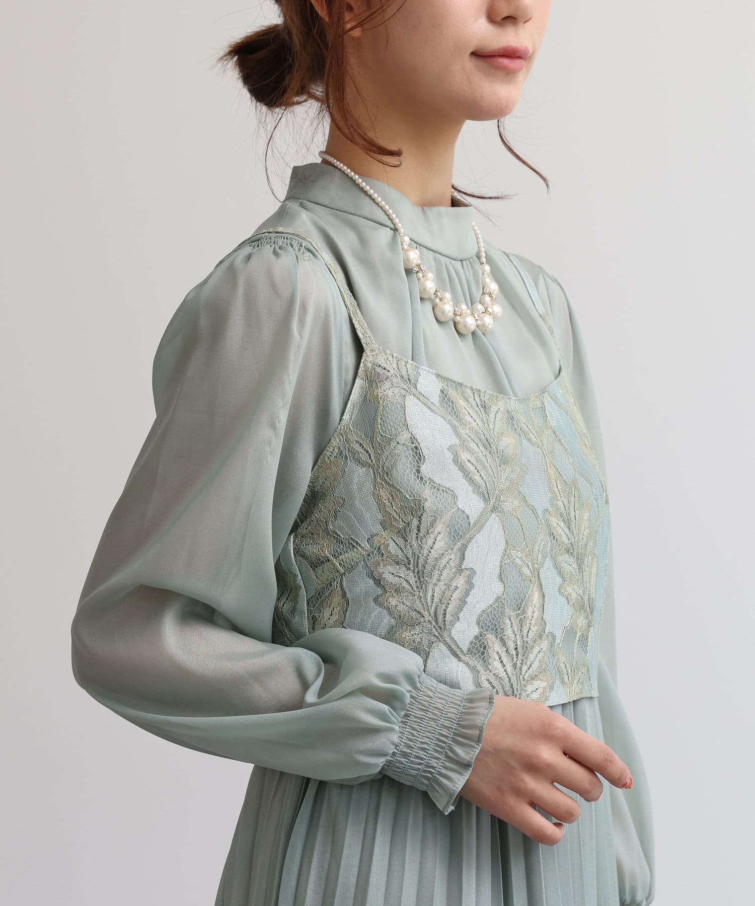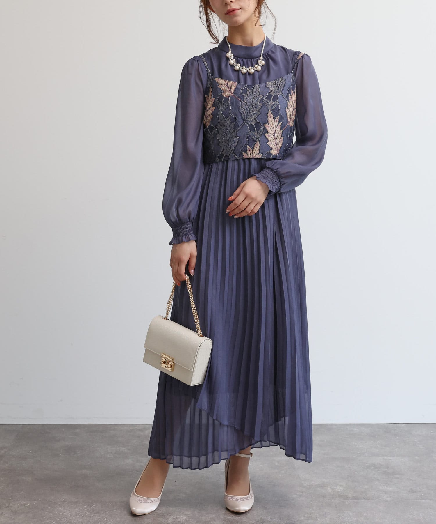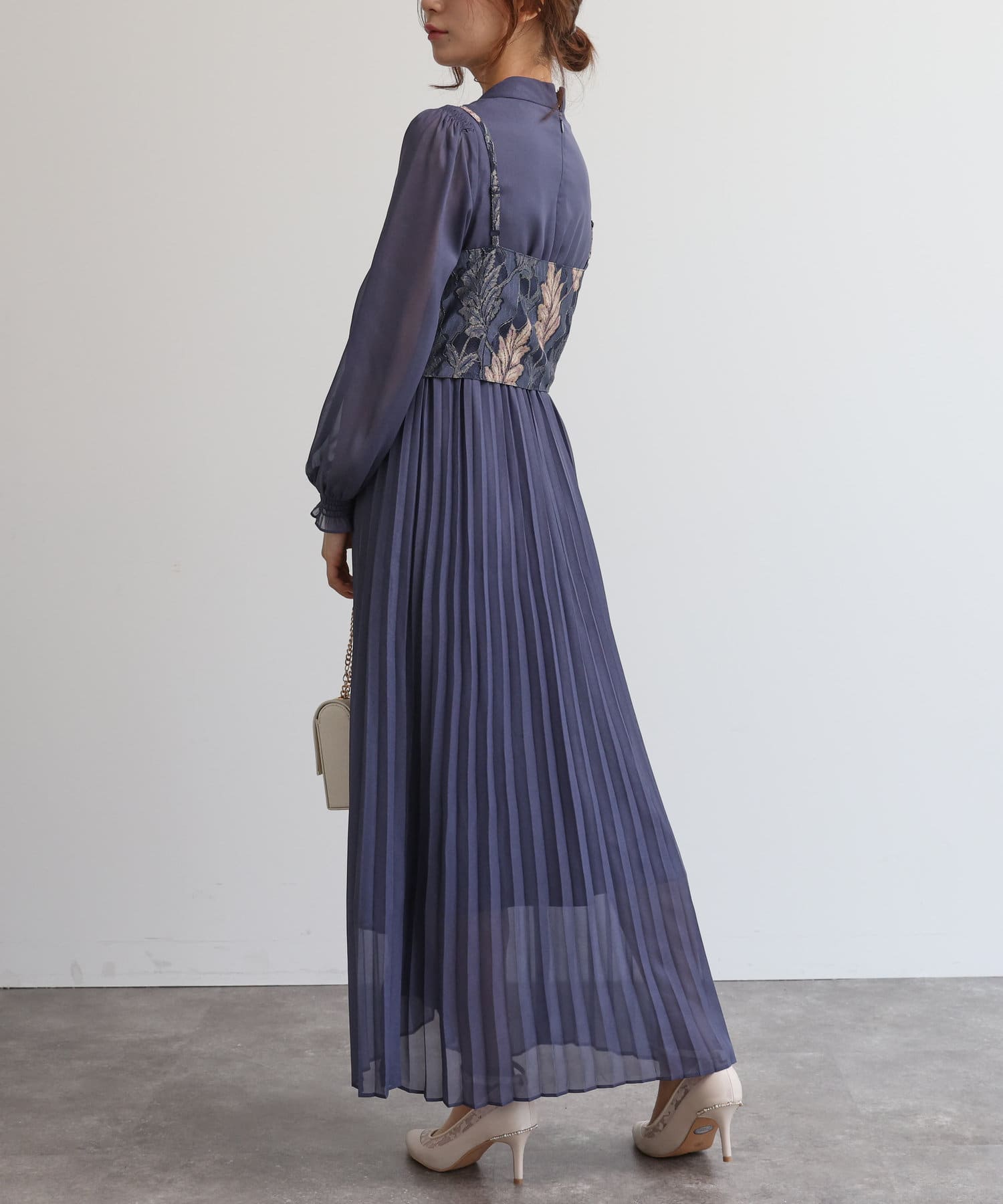 【オケージョン】レースビスチェ×プリーツワンピース