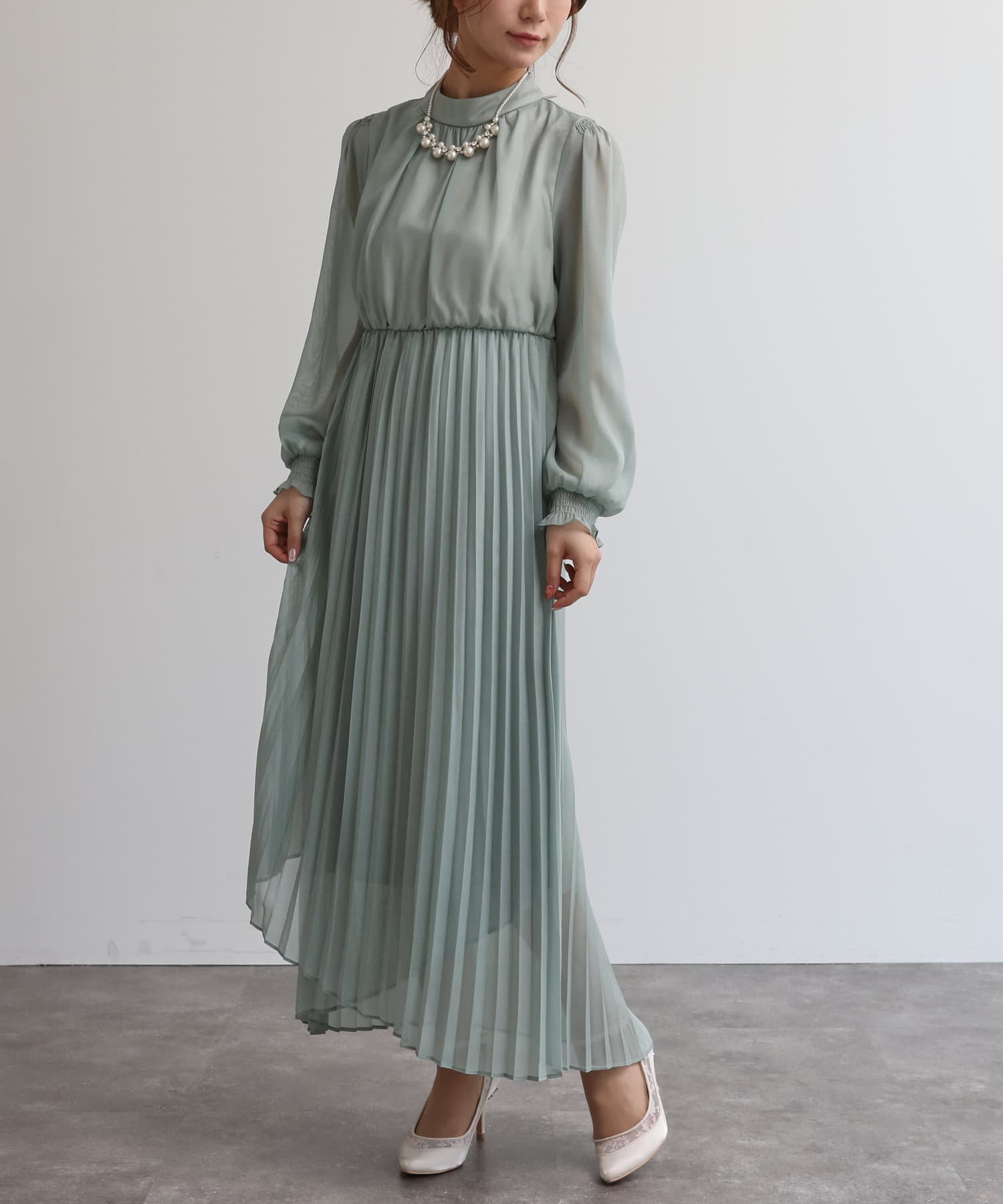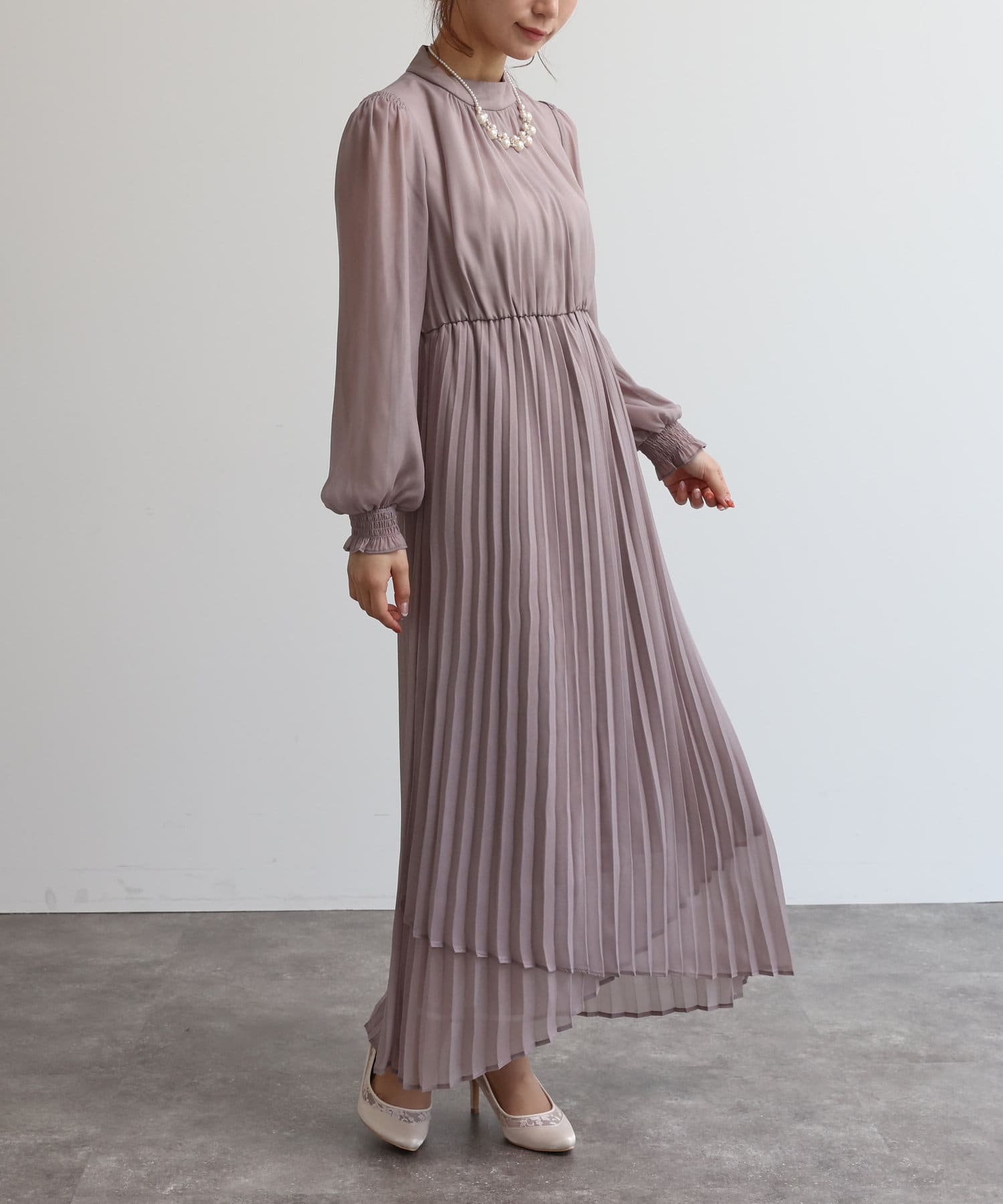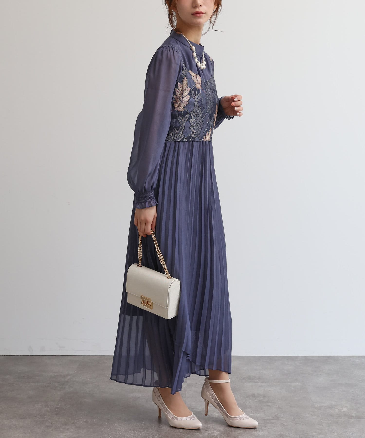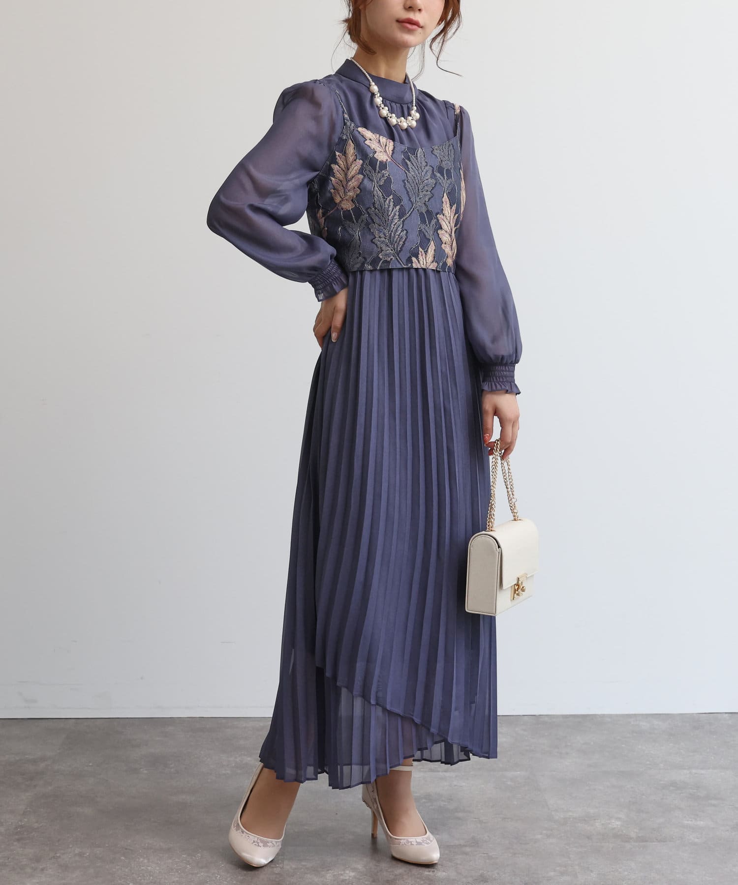 【オケージョン】レースビスチェ×プリーツワンピース