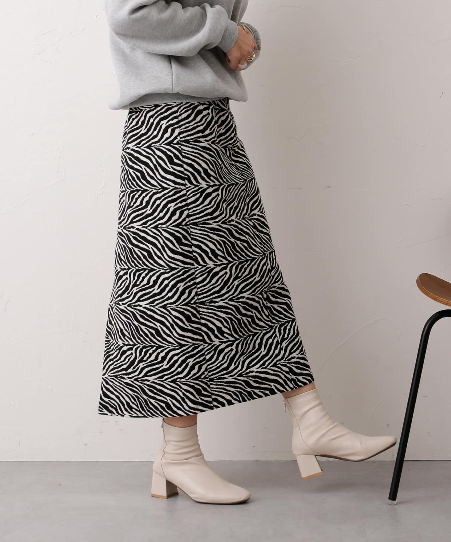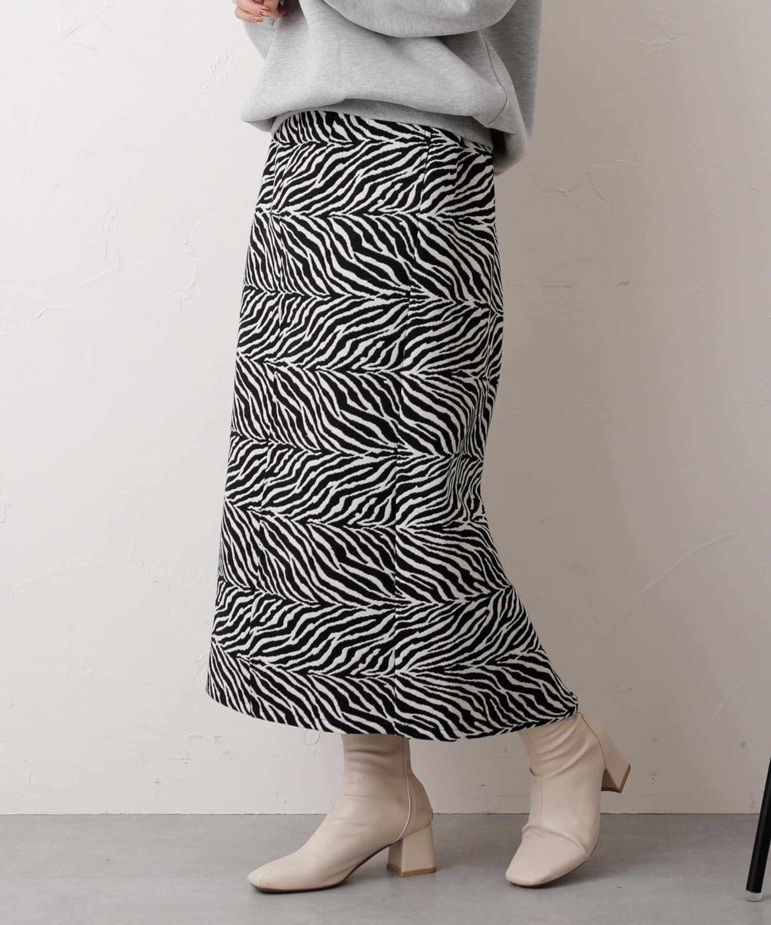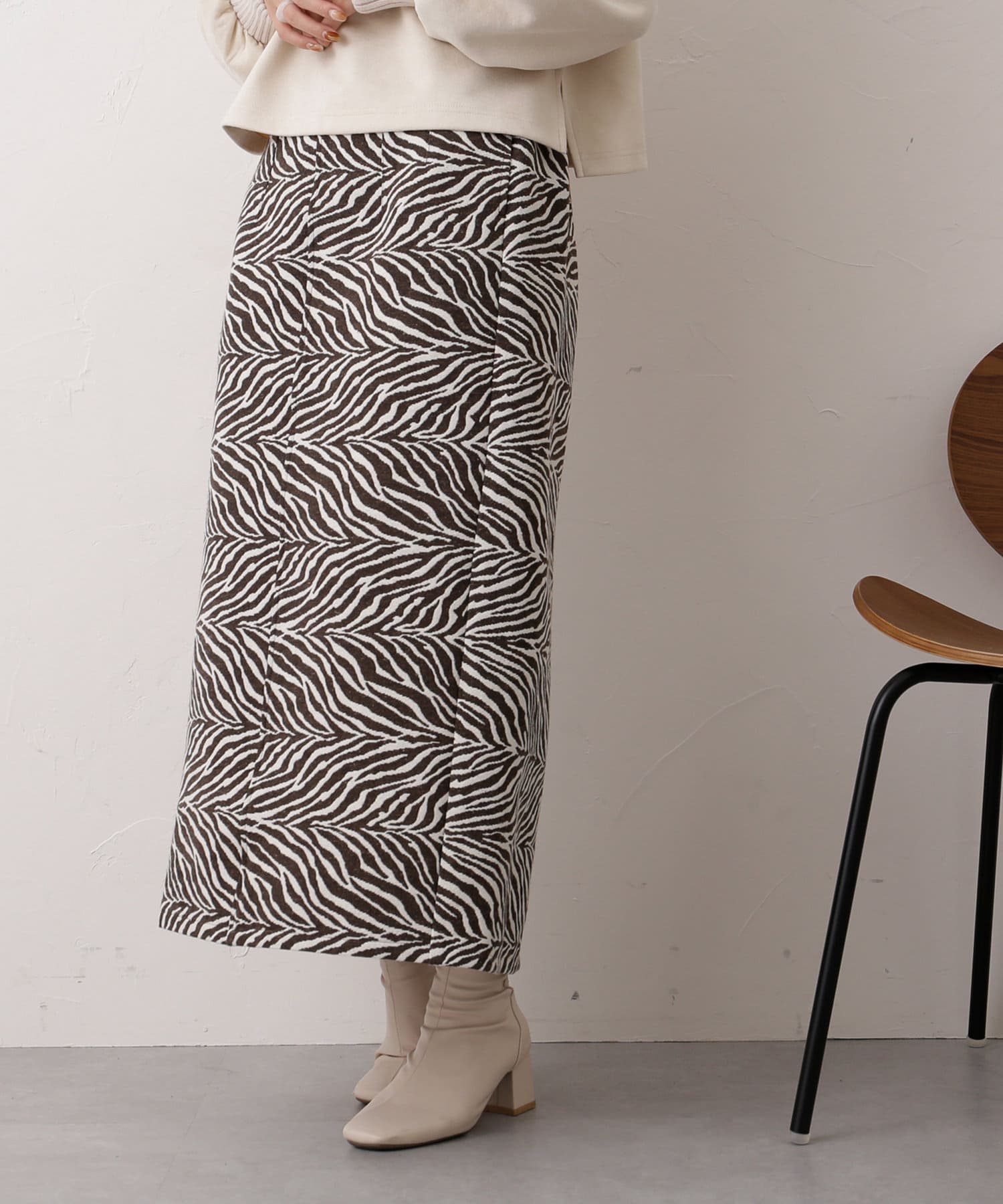 【WEB限定】ゼブラ柄ゴブランロングスカート