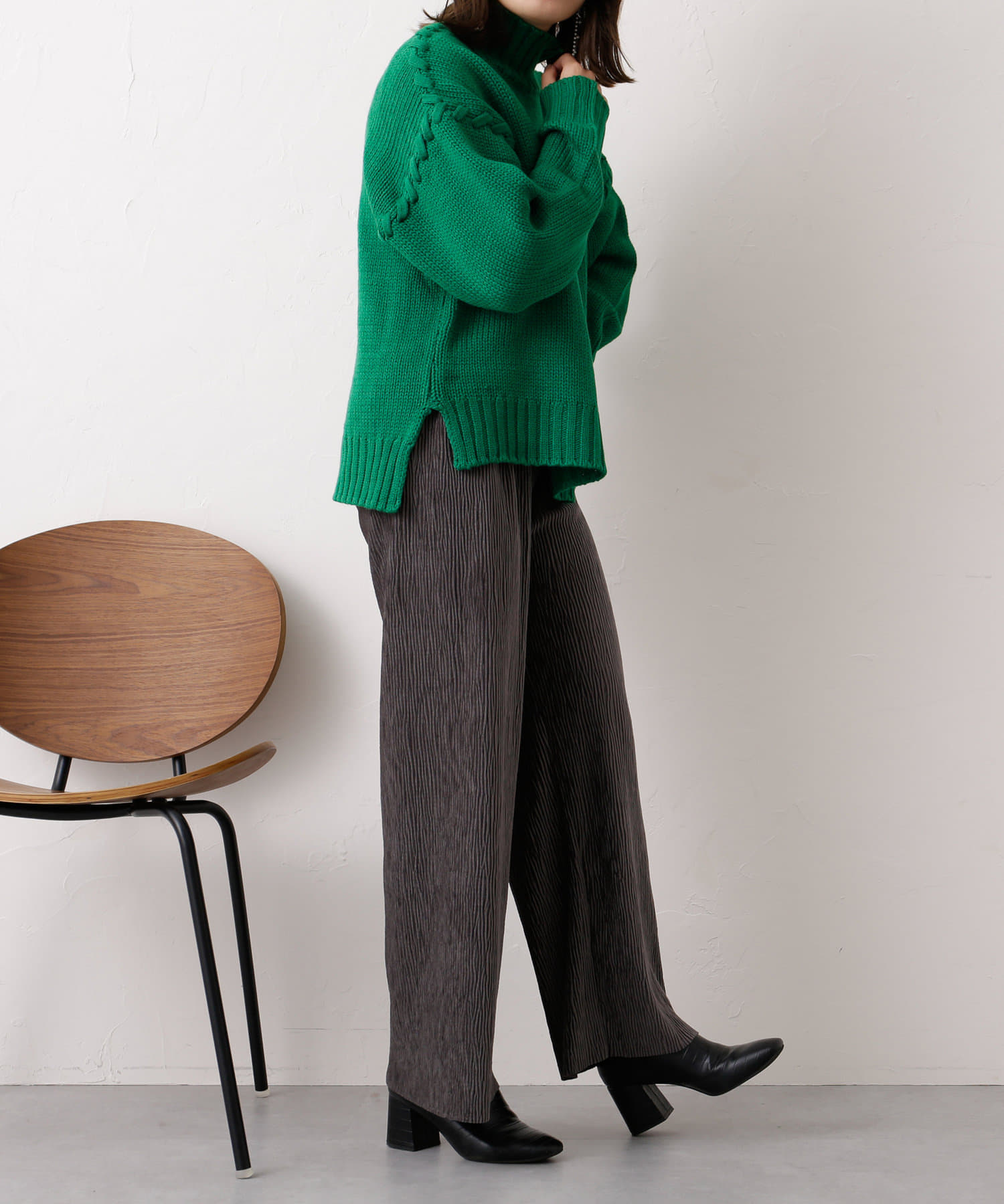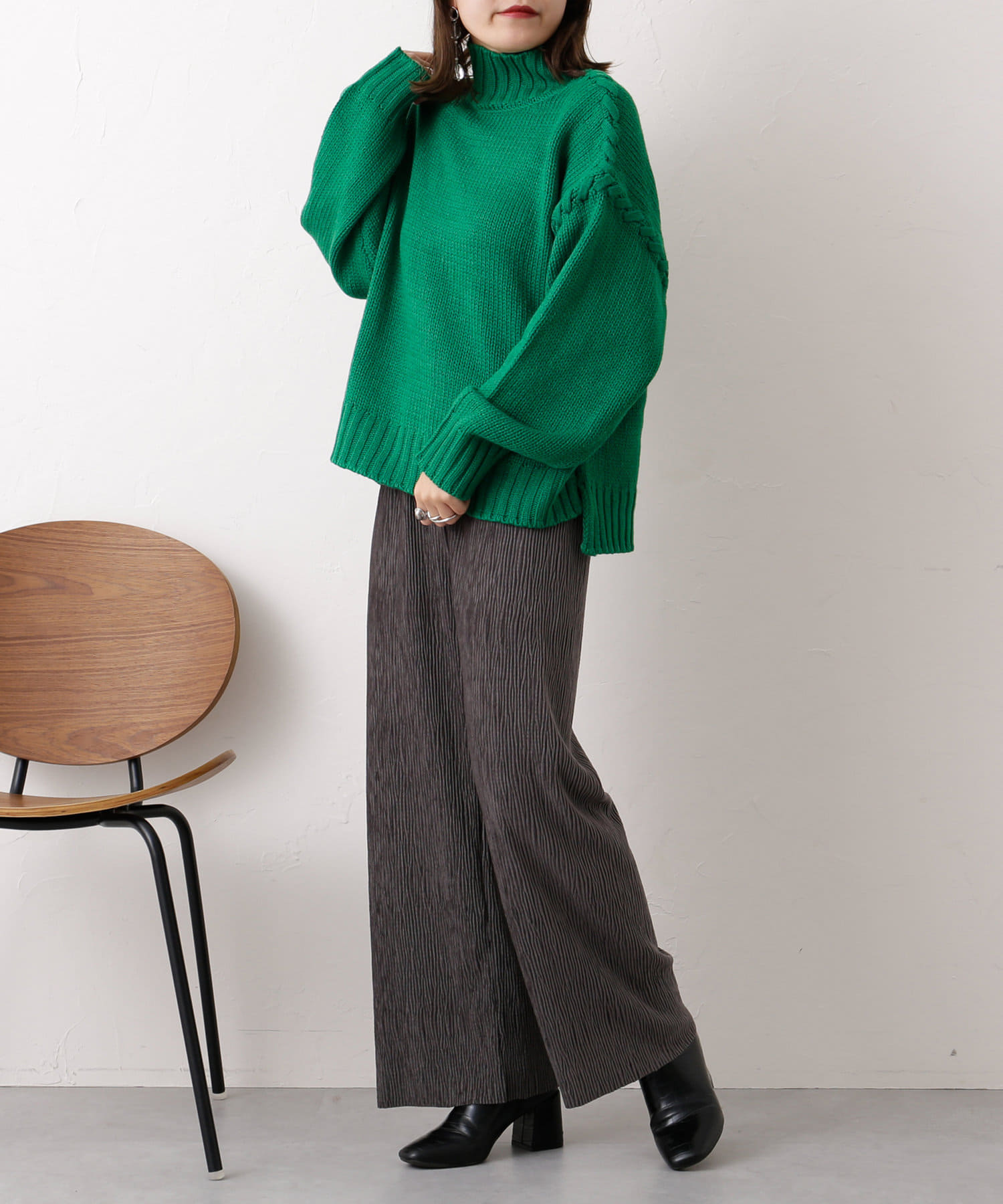 ・秋冬定番のハイネックニットです。合わせやすい着丈なので、スカート、パンツとボトムスを選びません。