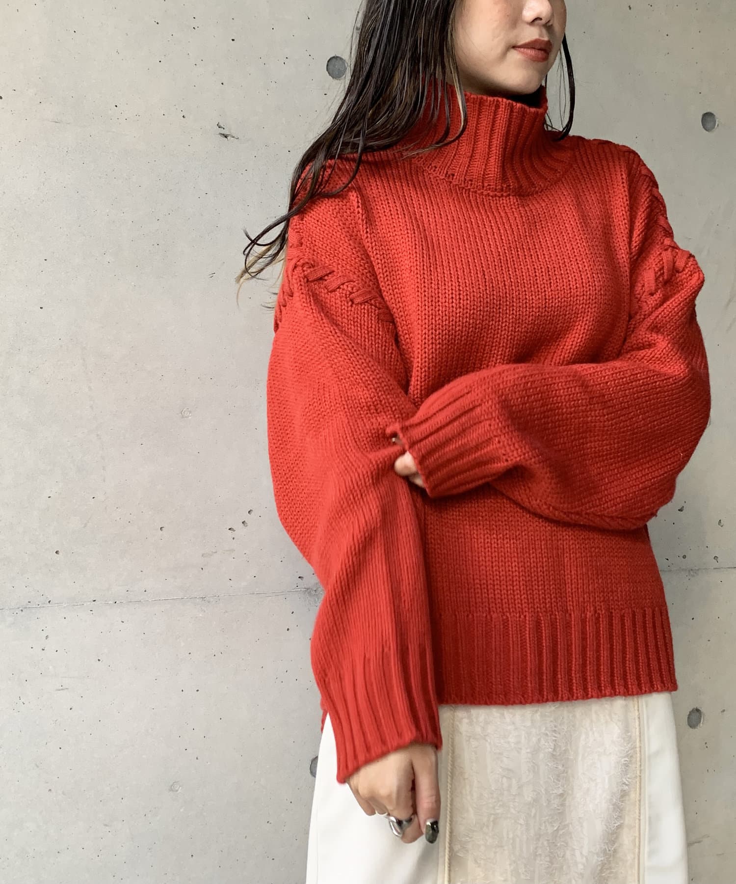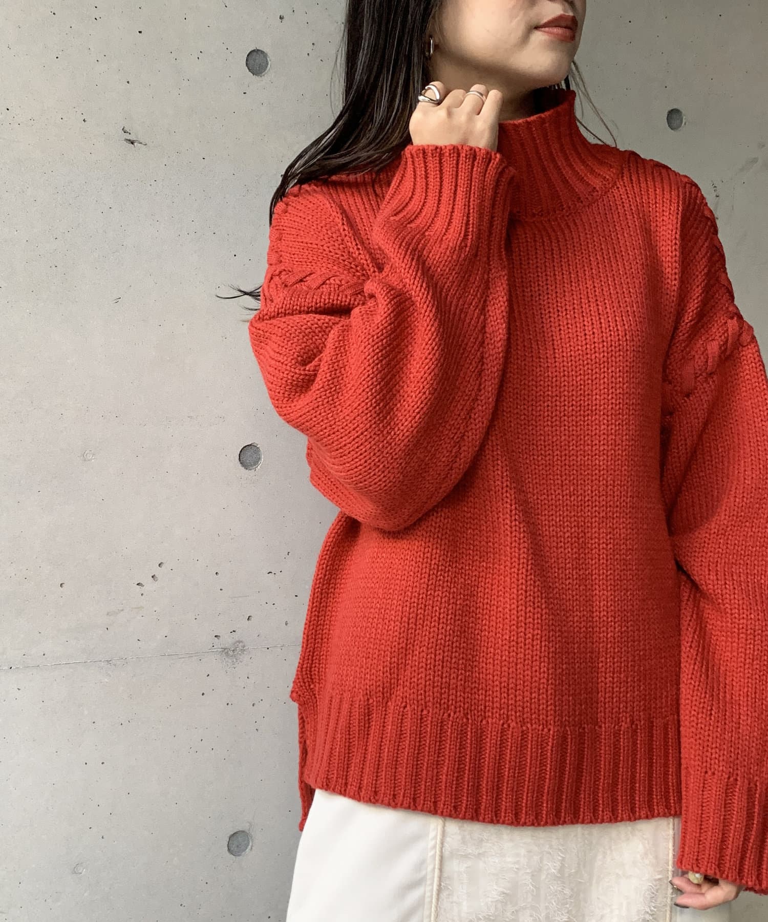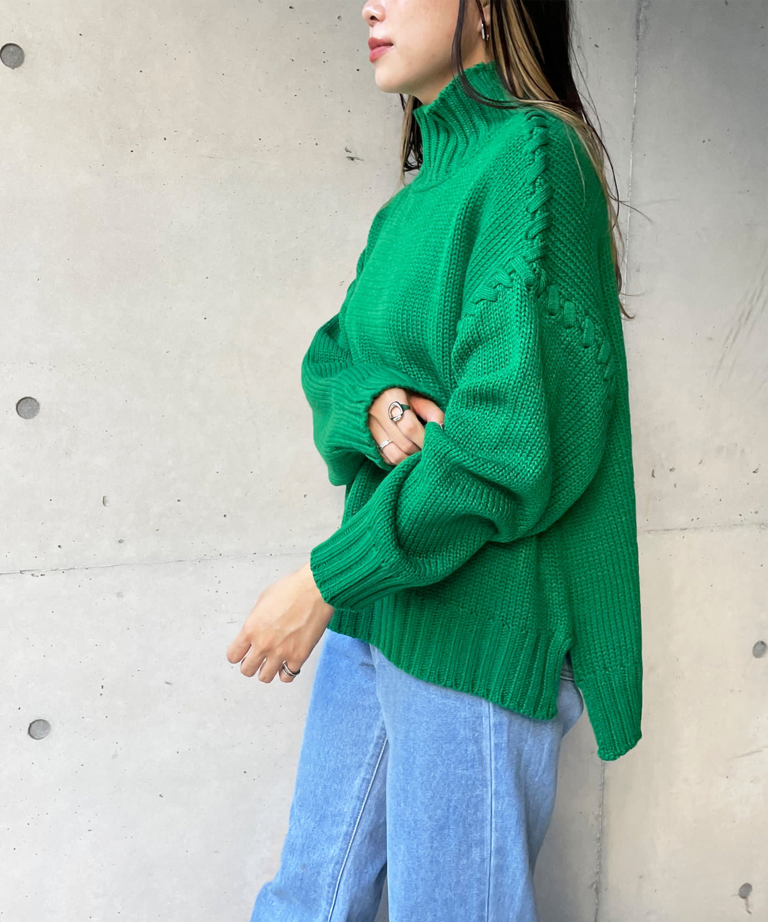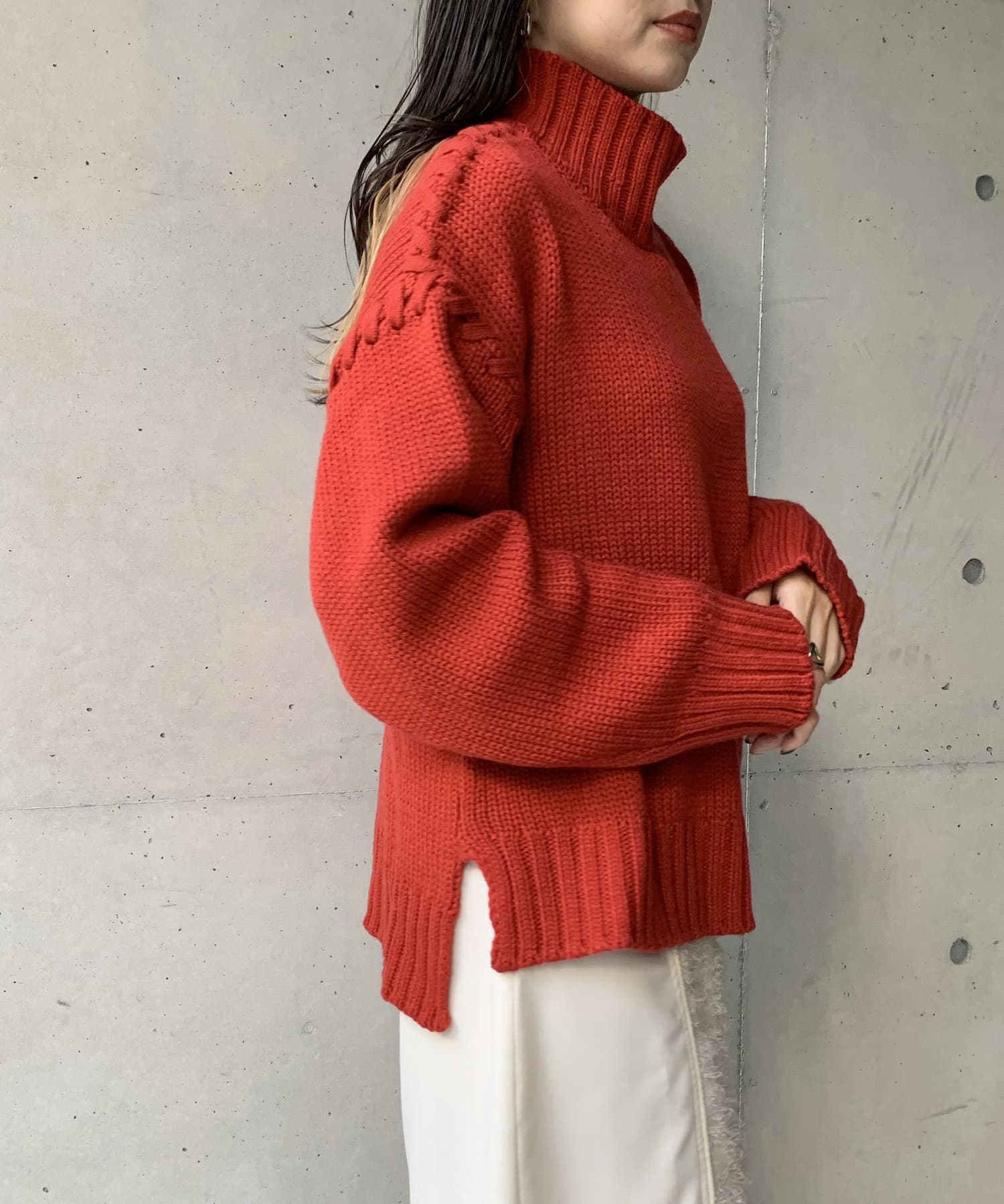 ・ハイネックニット・ステッチ・デザインニット・21AW・ゆるニット・ビッグシルエット・オーバーサイズ・カラーニット・原色カラー・ビタミンカラー・赤色ニット・ビッグハイネック・#otona_highneck・#otona_designkint・otona_mens