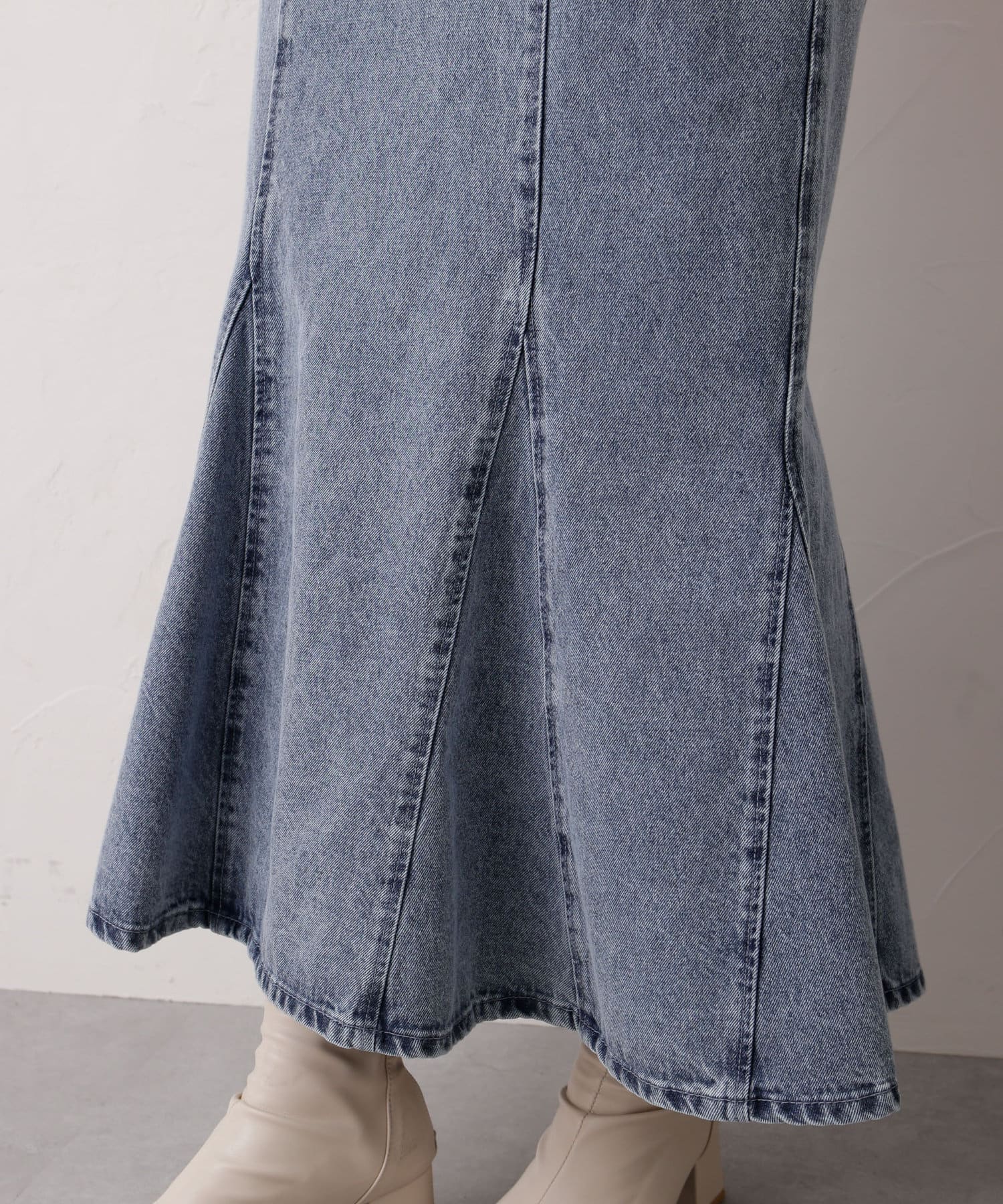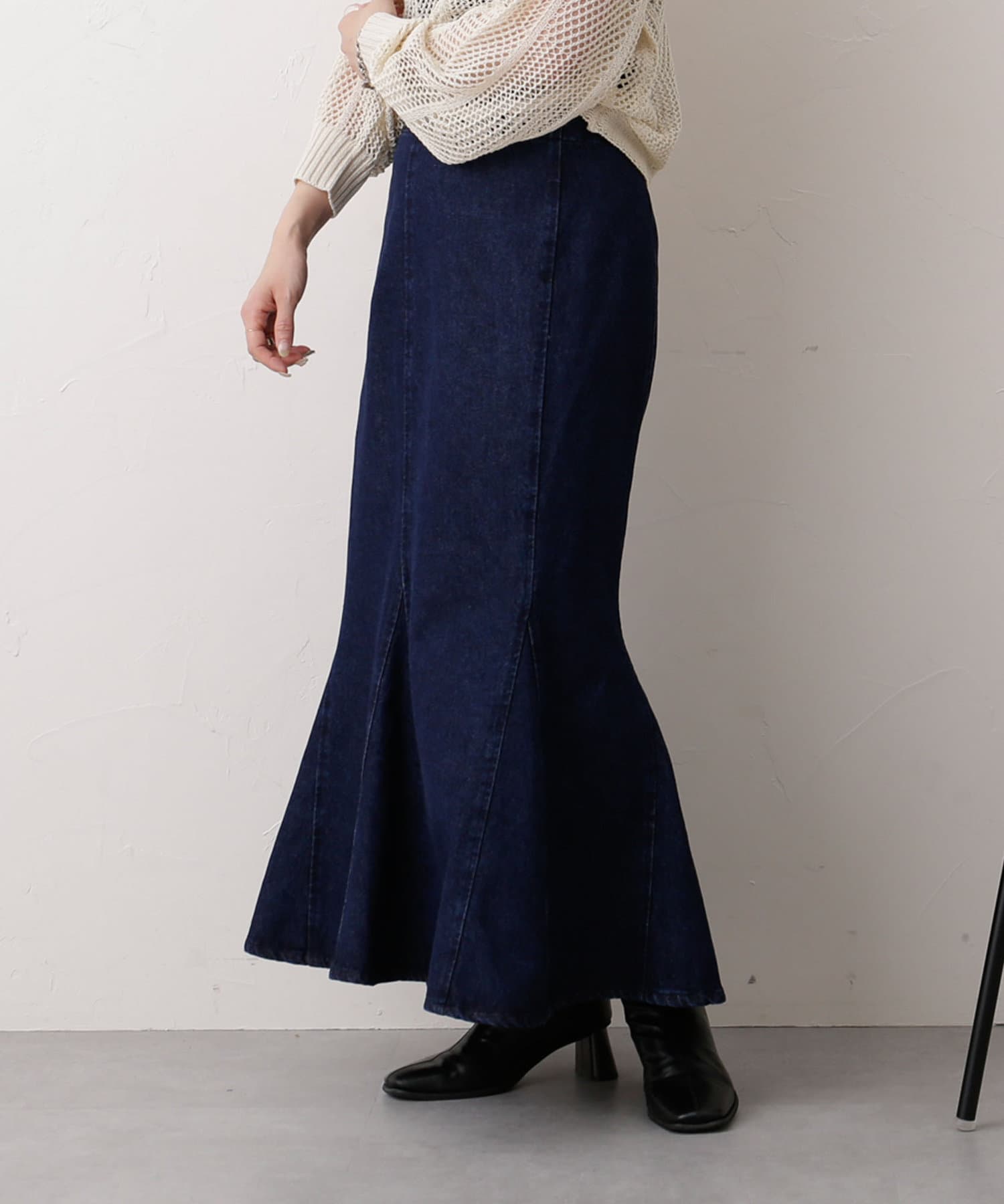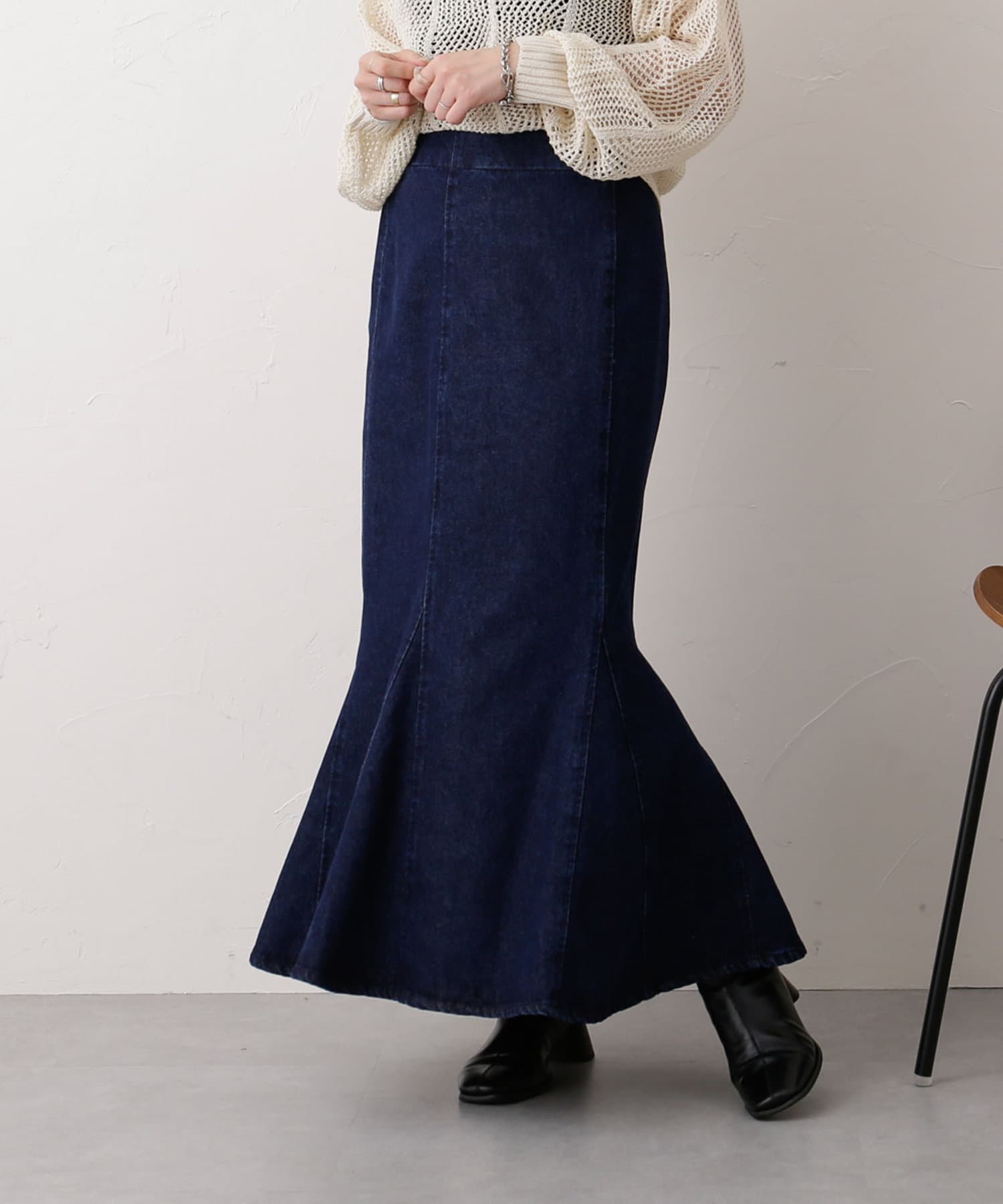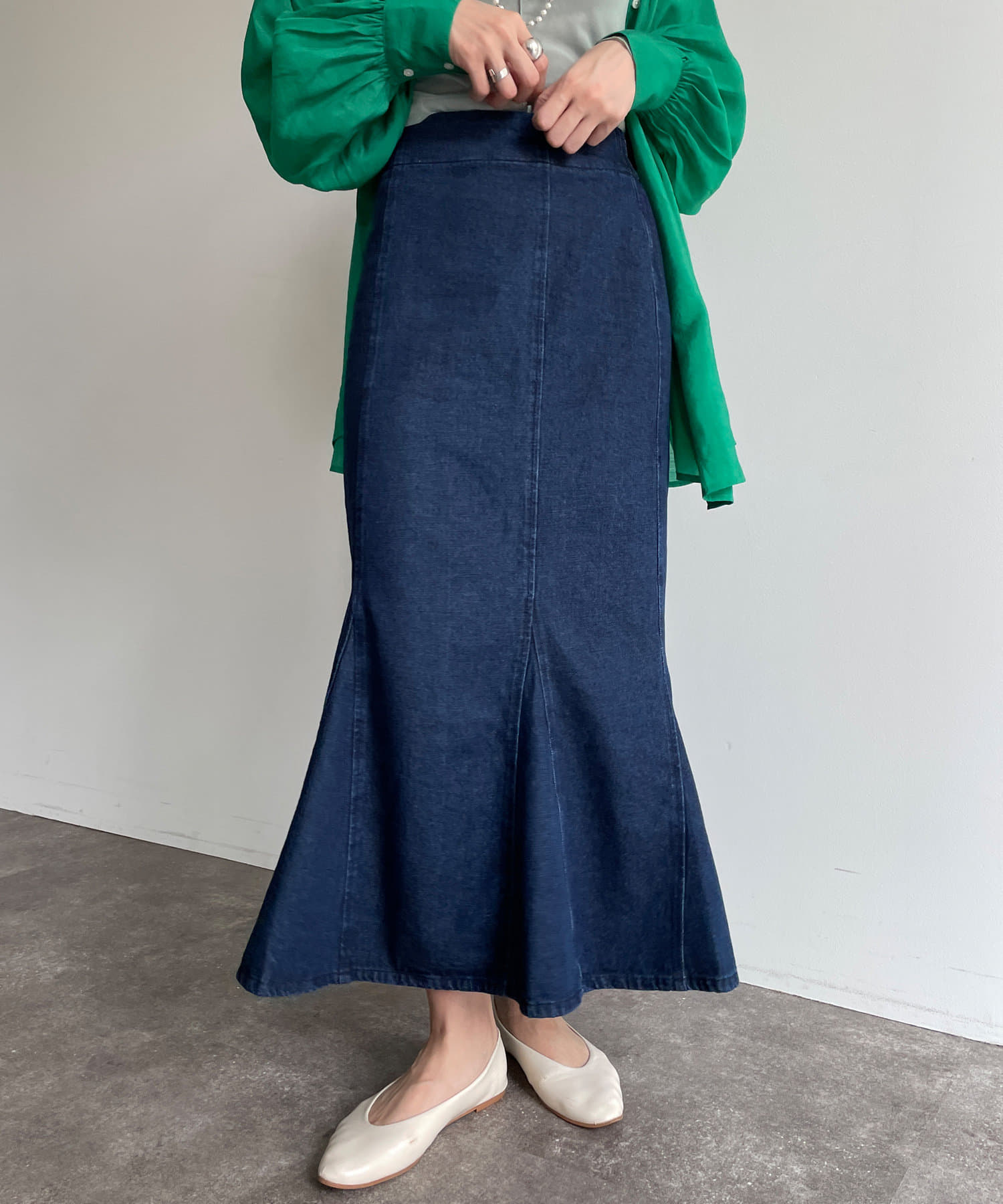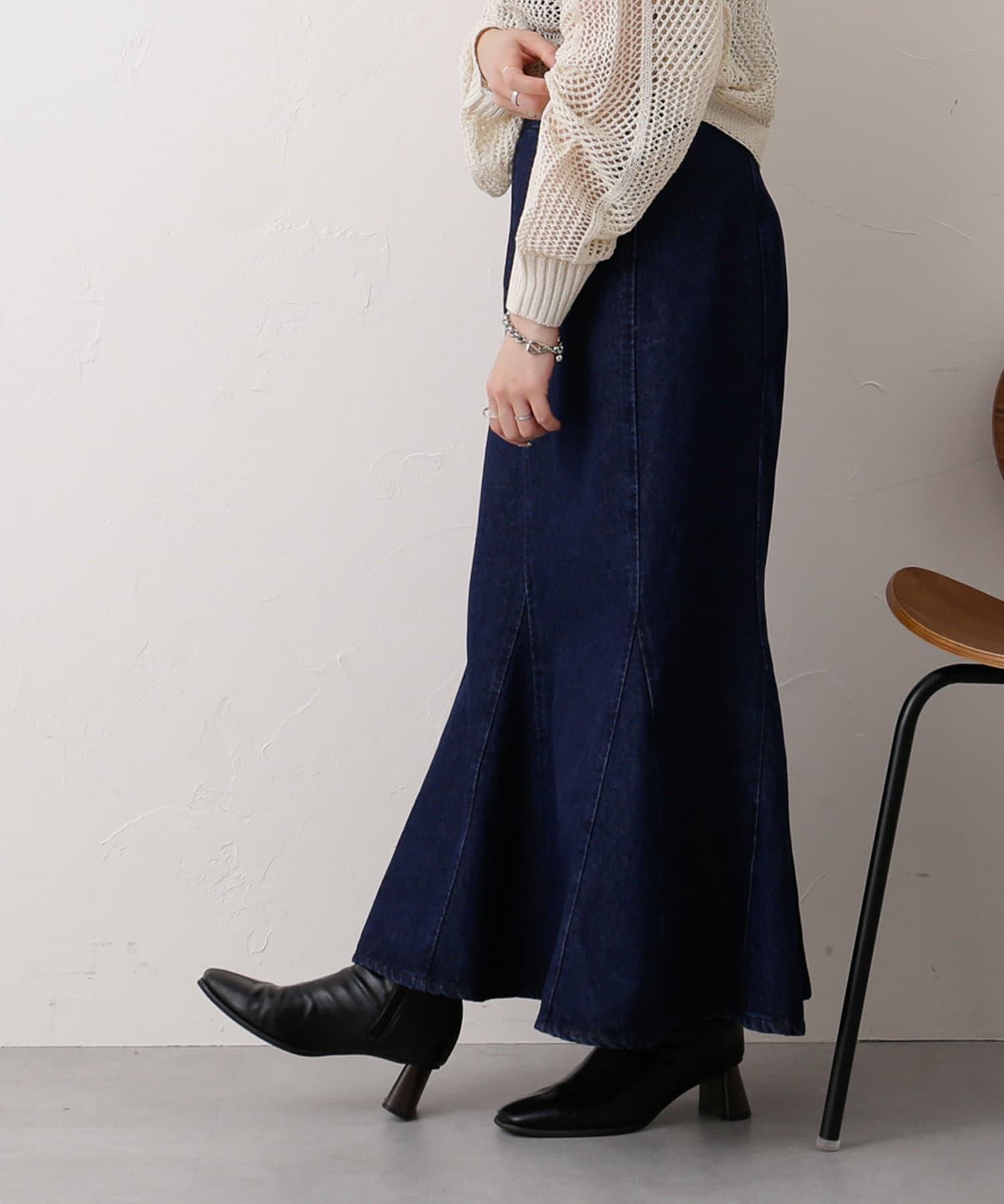 ・キレイめな印象のマーメイドスカートをデニム素材にすることで、カジュアルでも着まわせる万能アイテムに仕上げました。