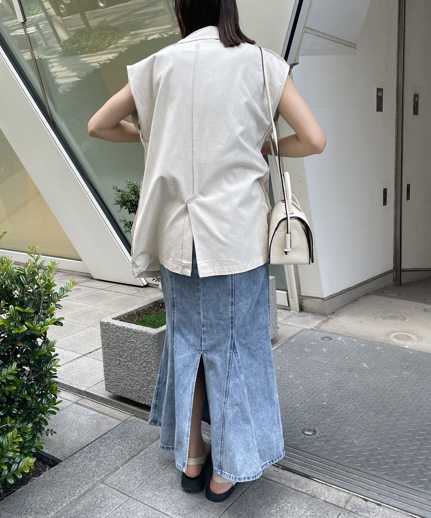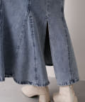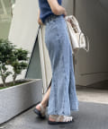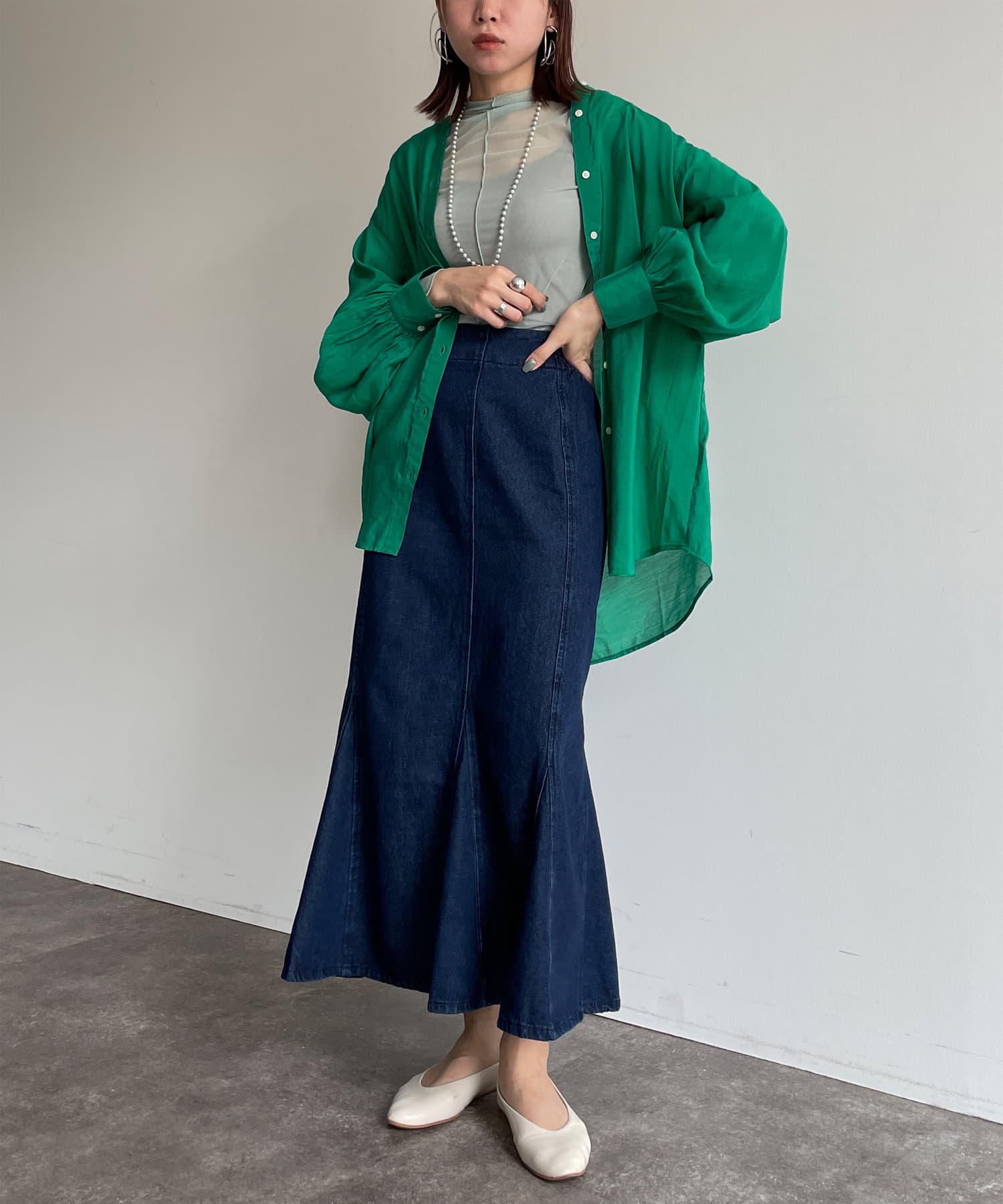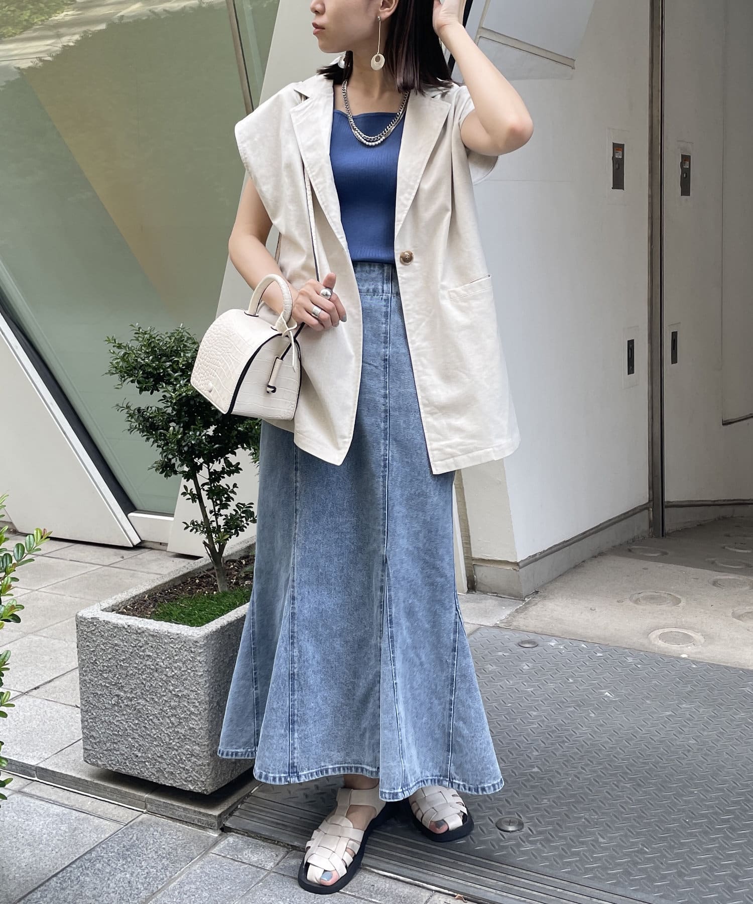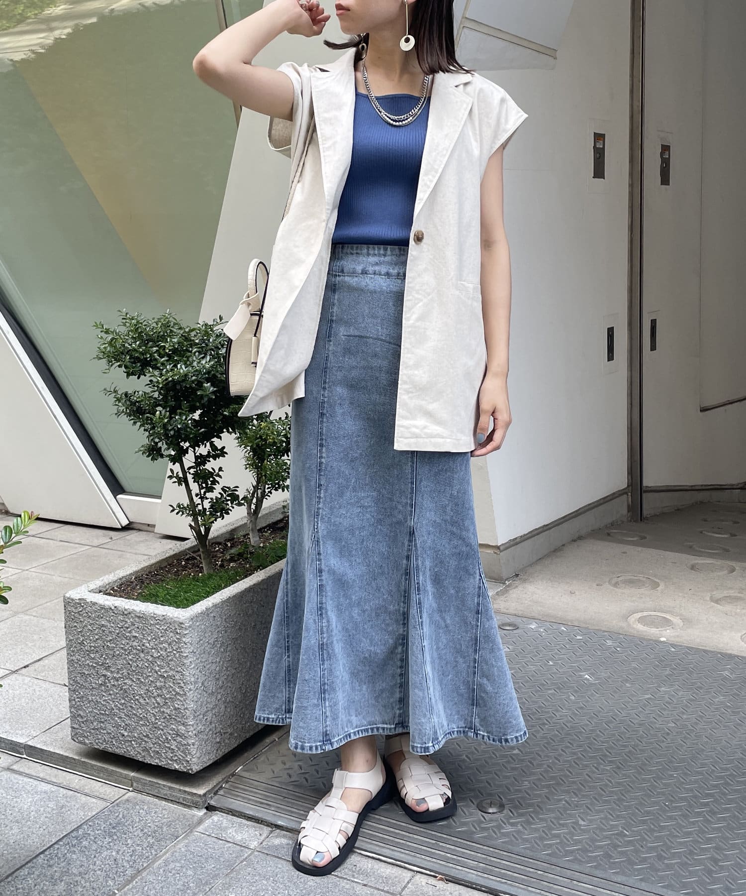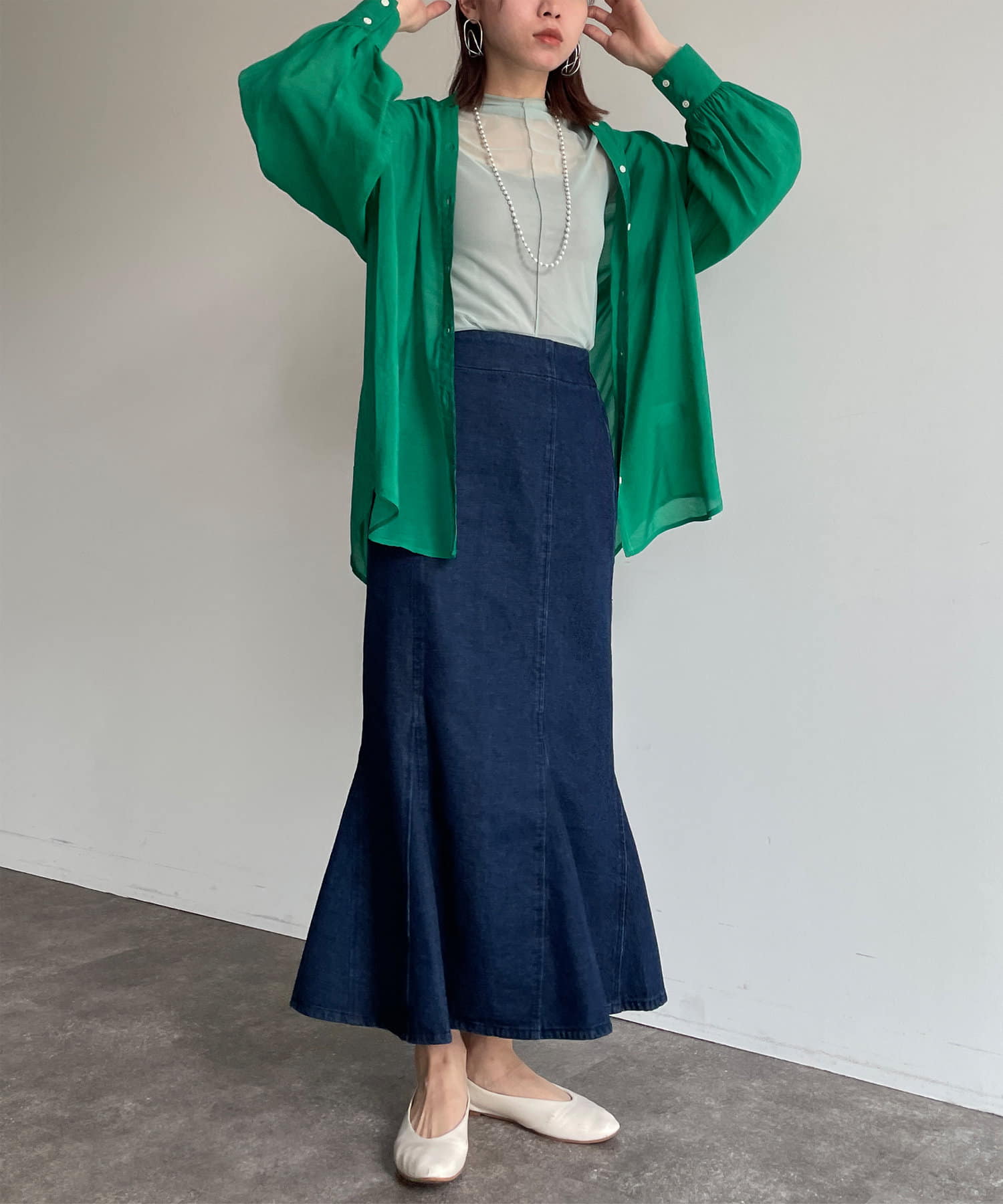・キレイめな印象のマーメイドスカートをデニム素材にすることで、カジュアルでも着まわせる万能アイテムに仕上げました。