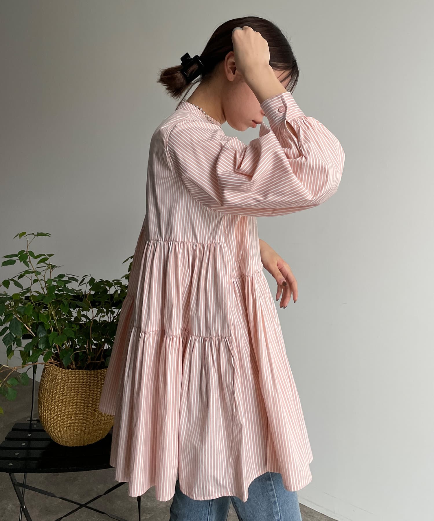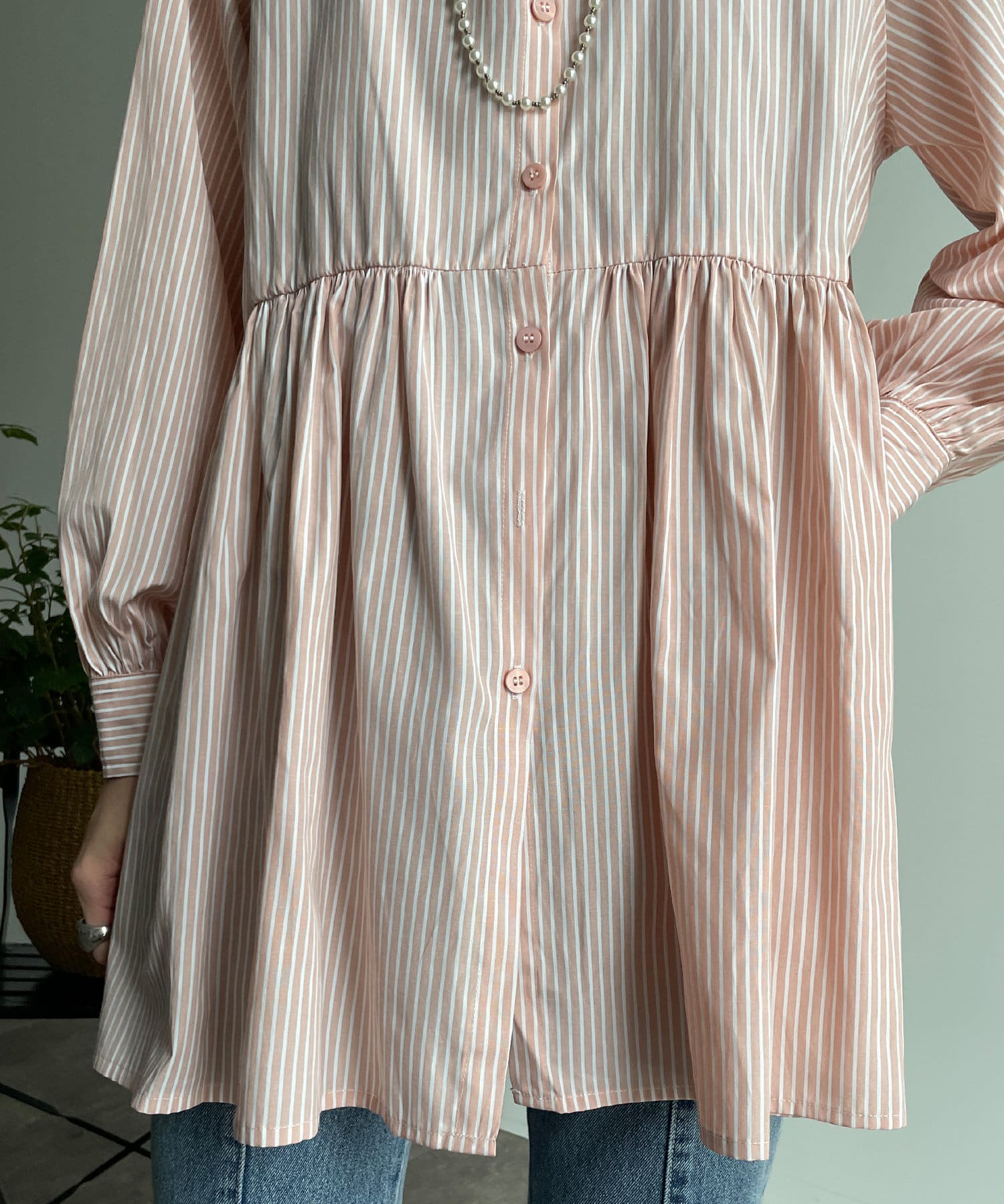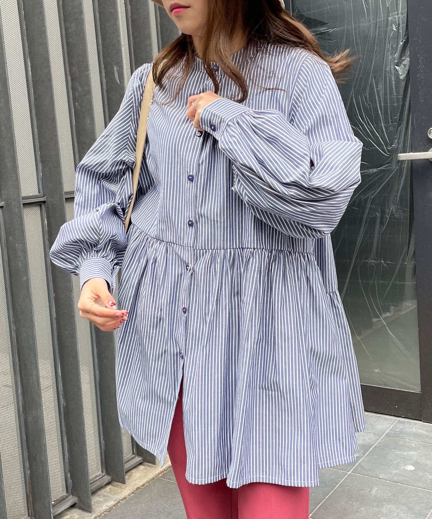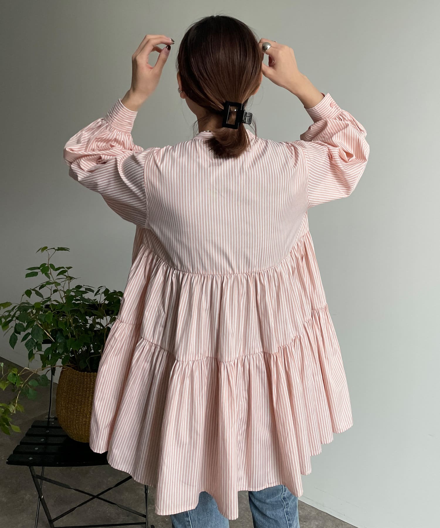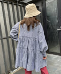 TOP > Thevon. > レディース > トップス > シャツ/ブラウス(ボタン) > ストライプティアードチュニックブラウス