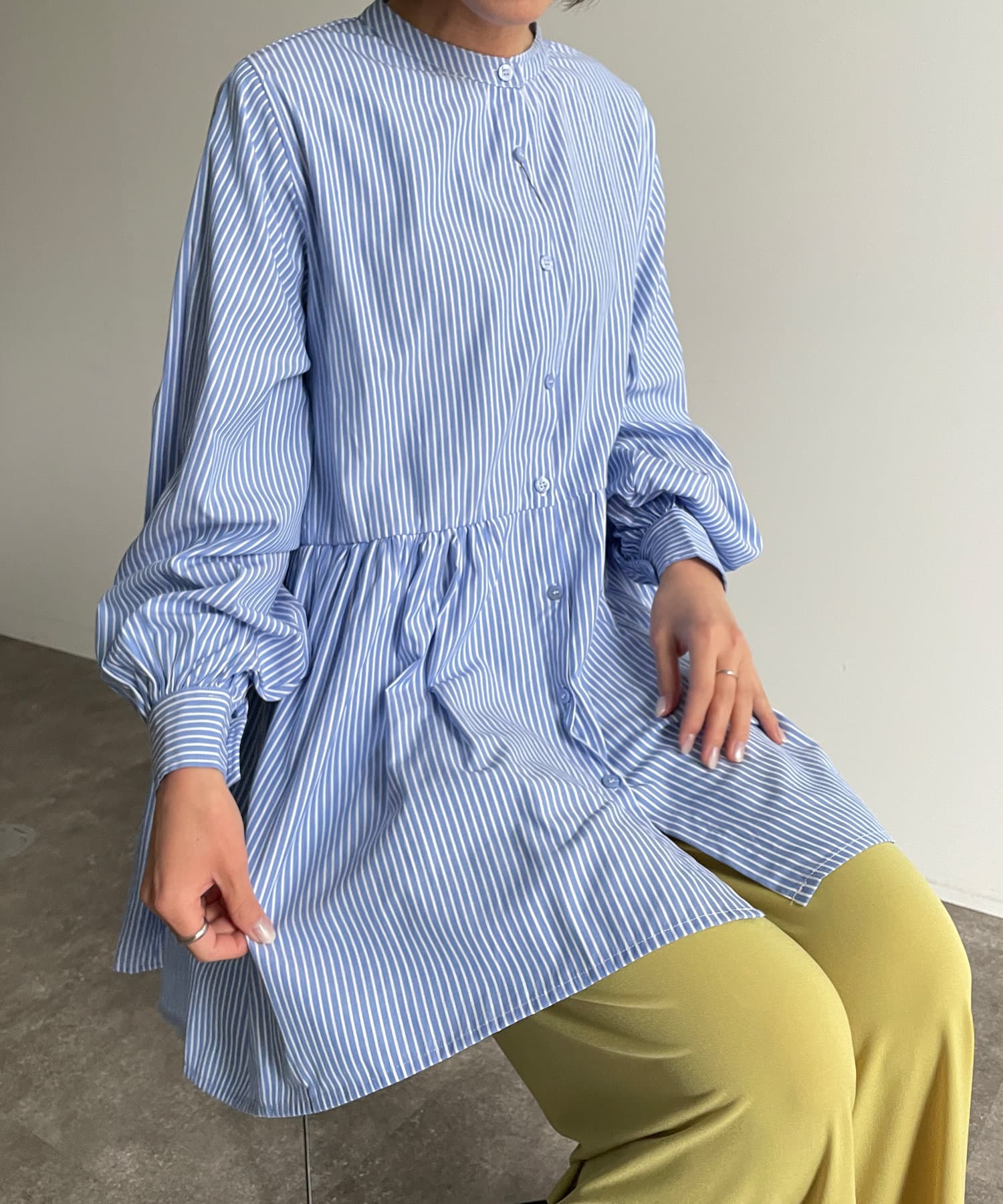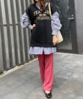 ボリューミーなチュニック丈なので、パンツと合わせたメリハリのあるスタイリングがおすすめです。
