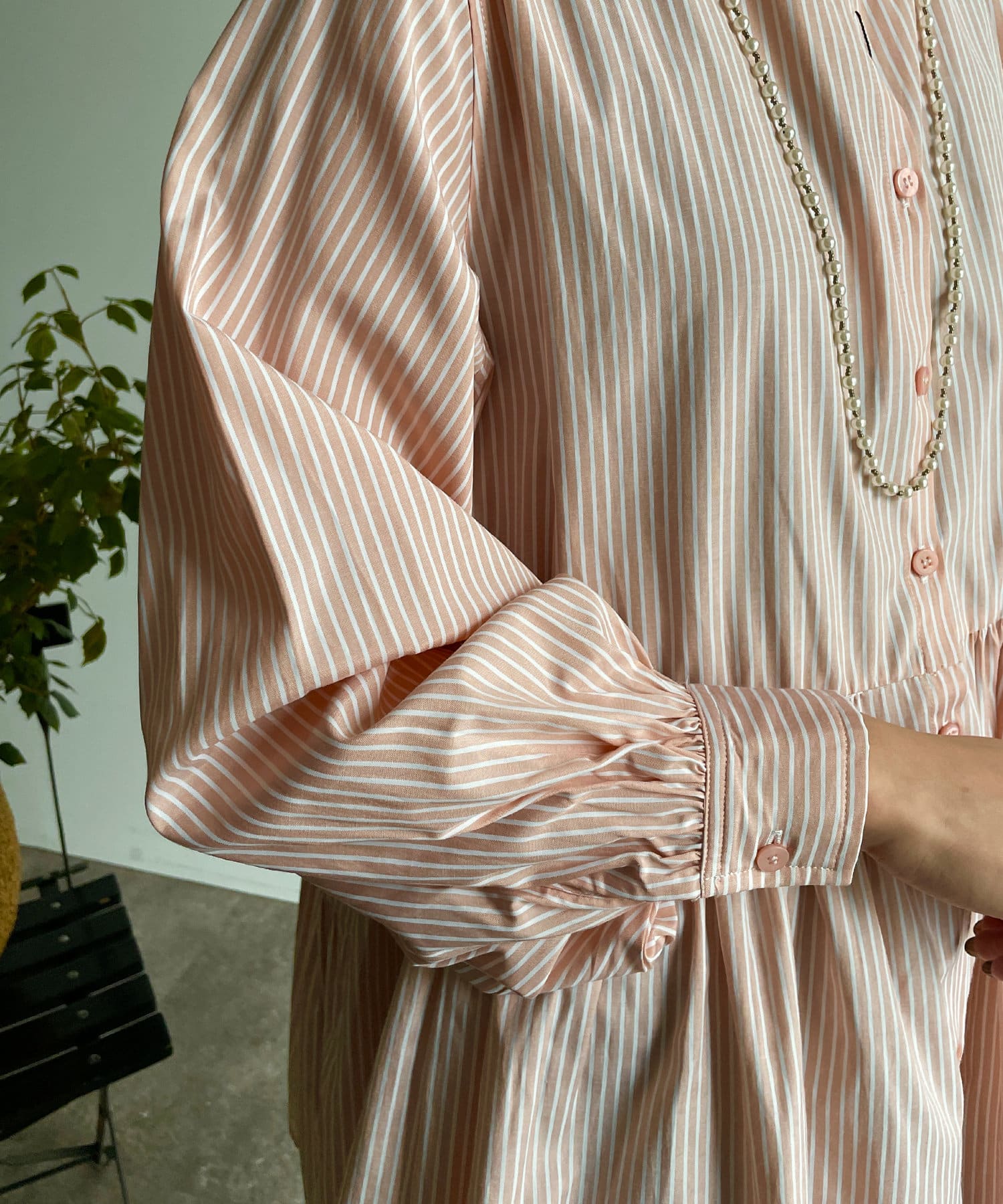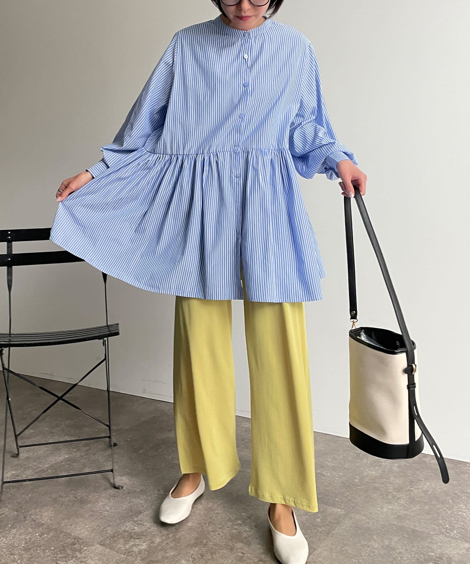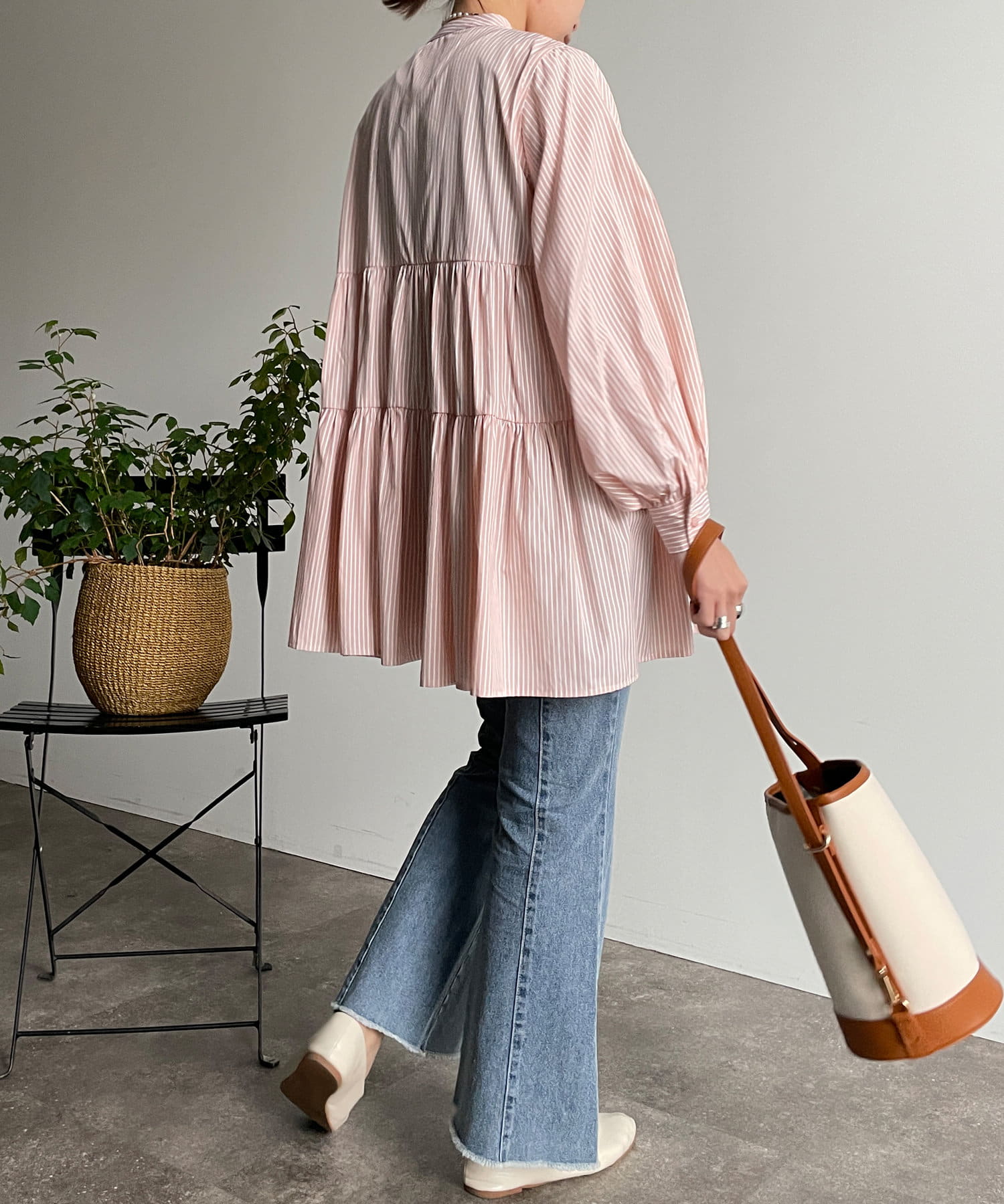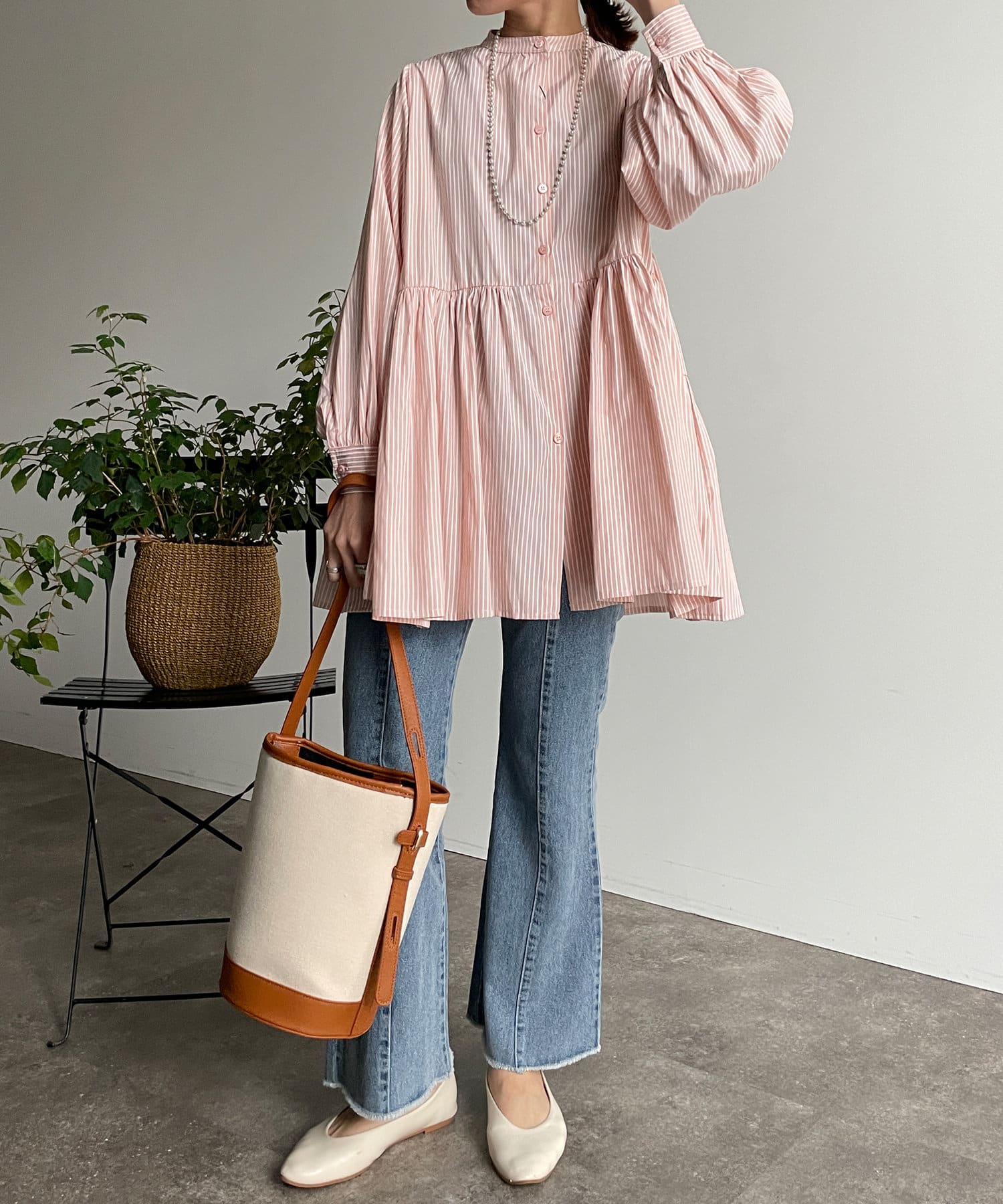 ・細ストライプでコーデに取り入れやすく、存在感のある主役級ブラウスです。