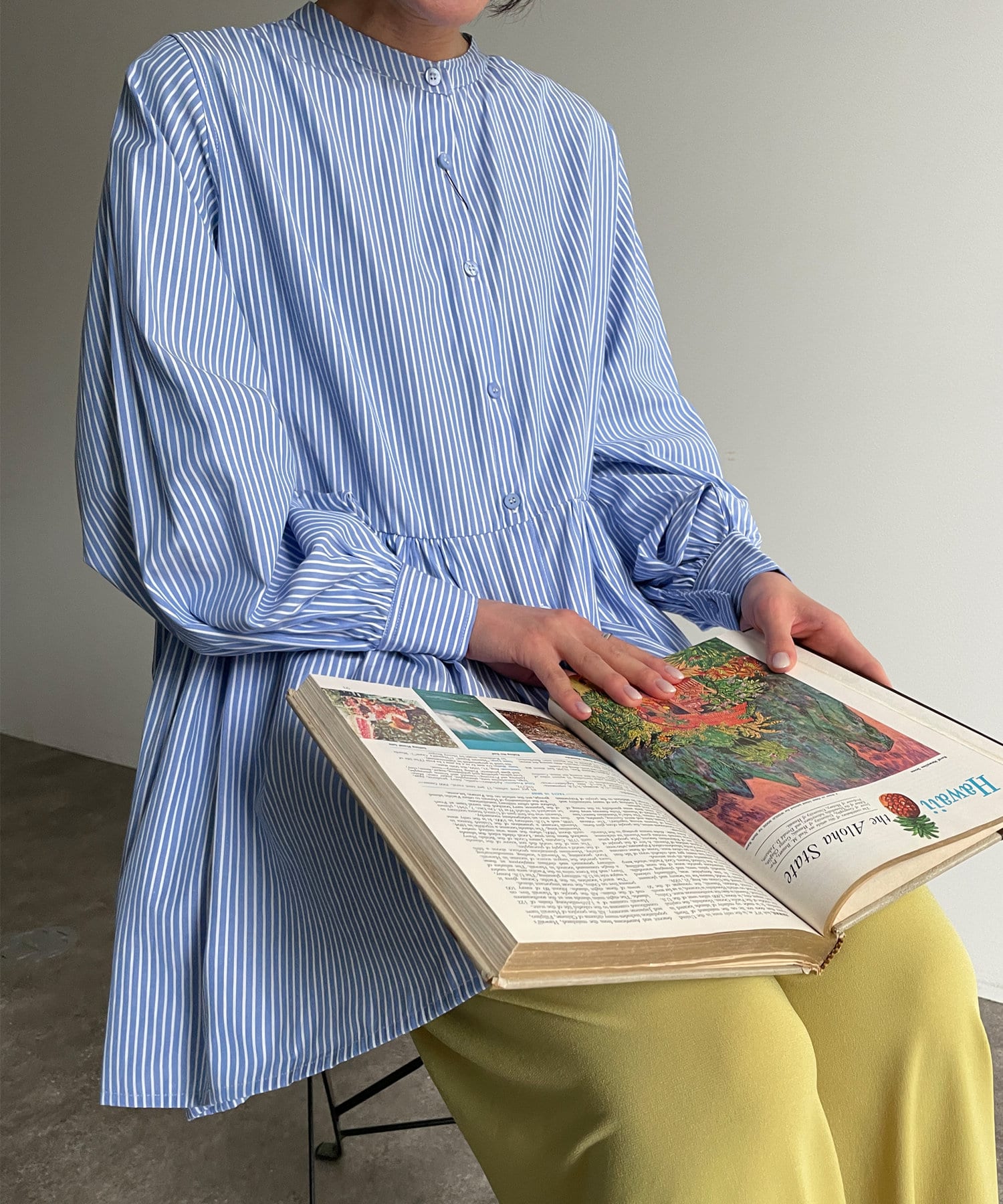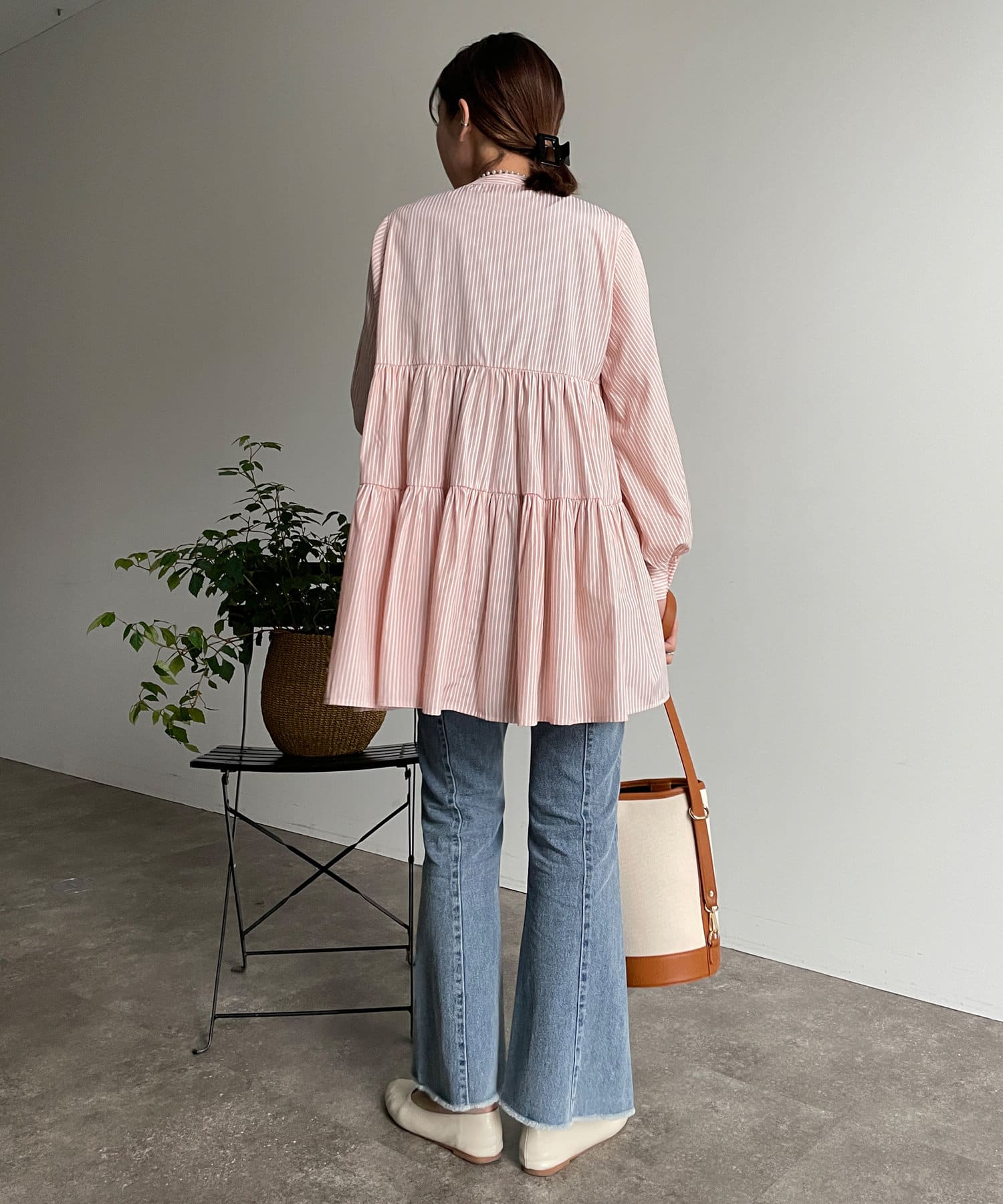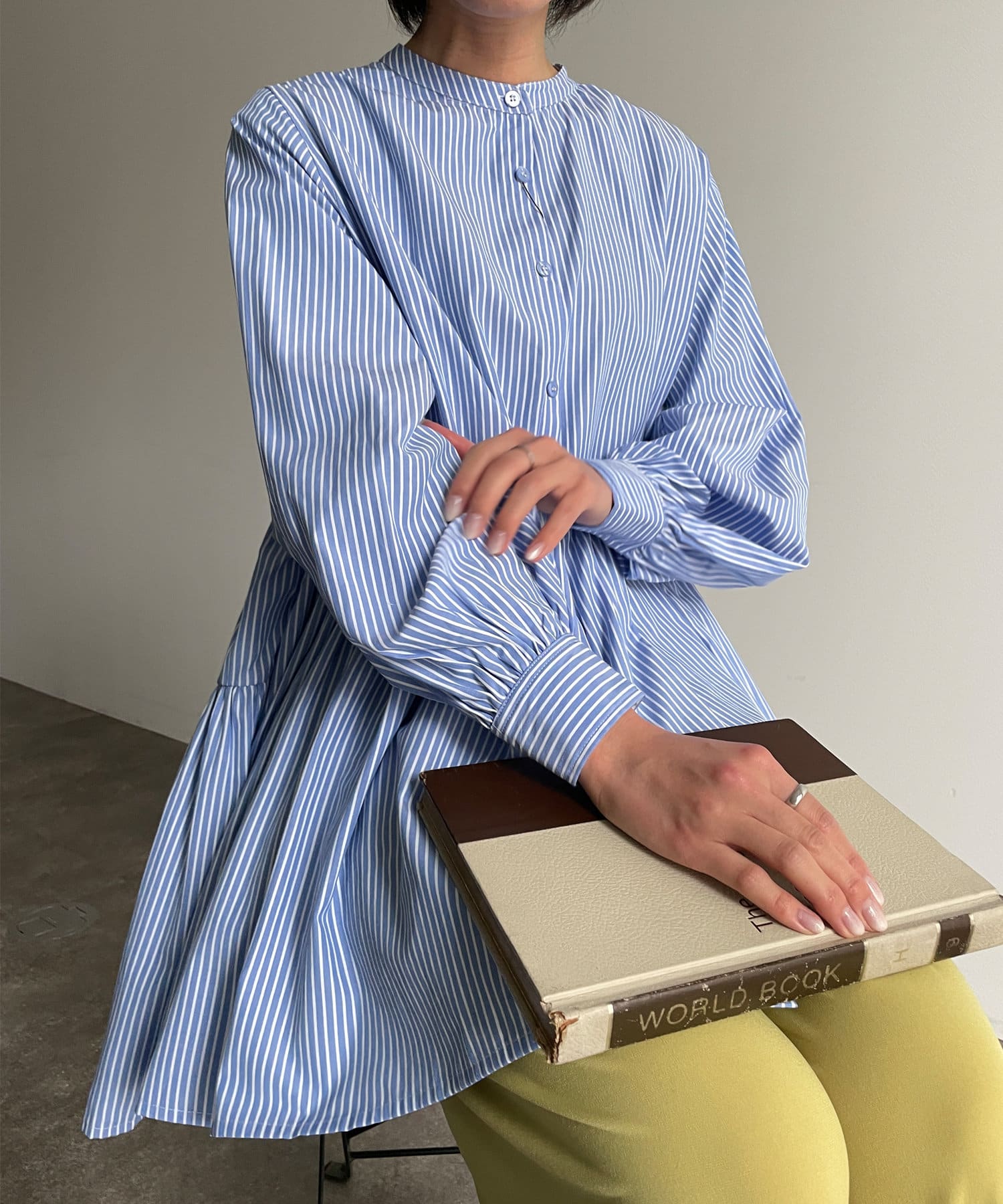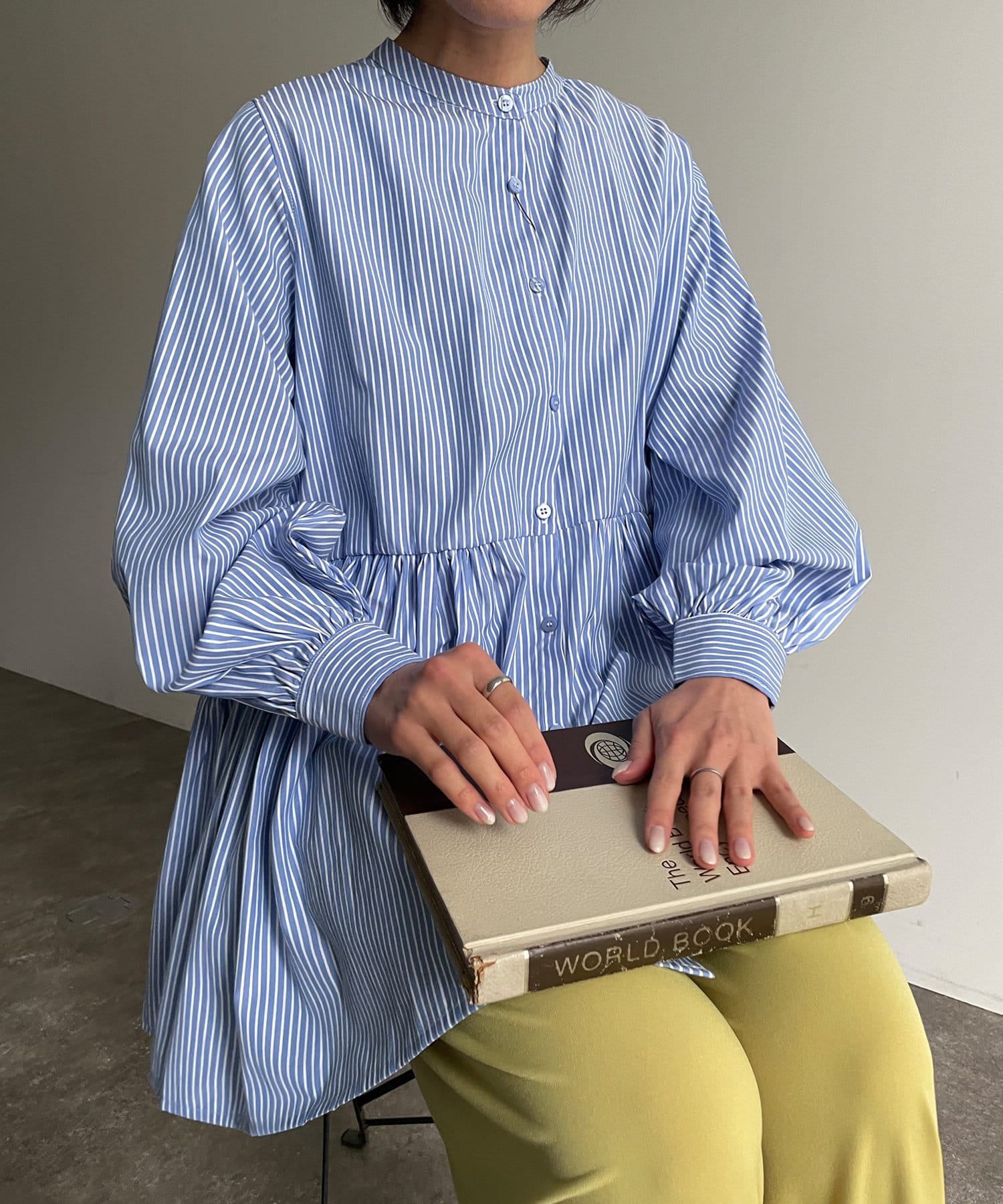 ・細ストライプでコーデに取り入れやすく、存在感のある主役級ブラウスです。