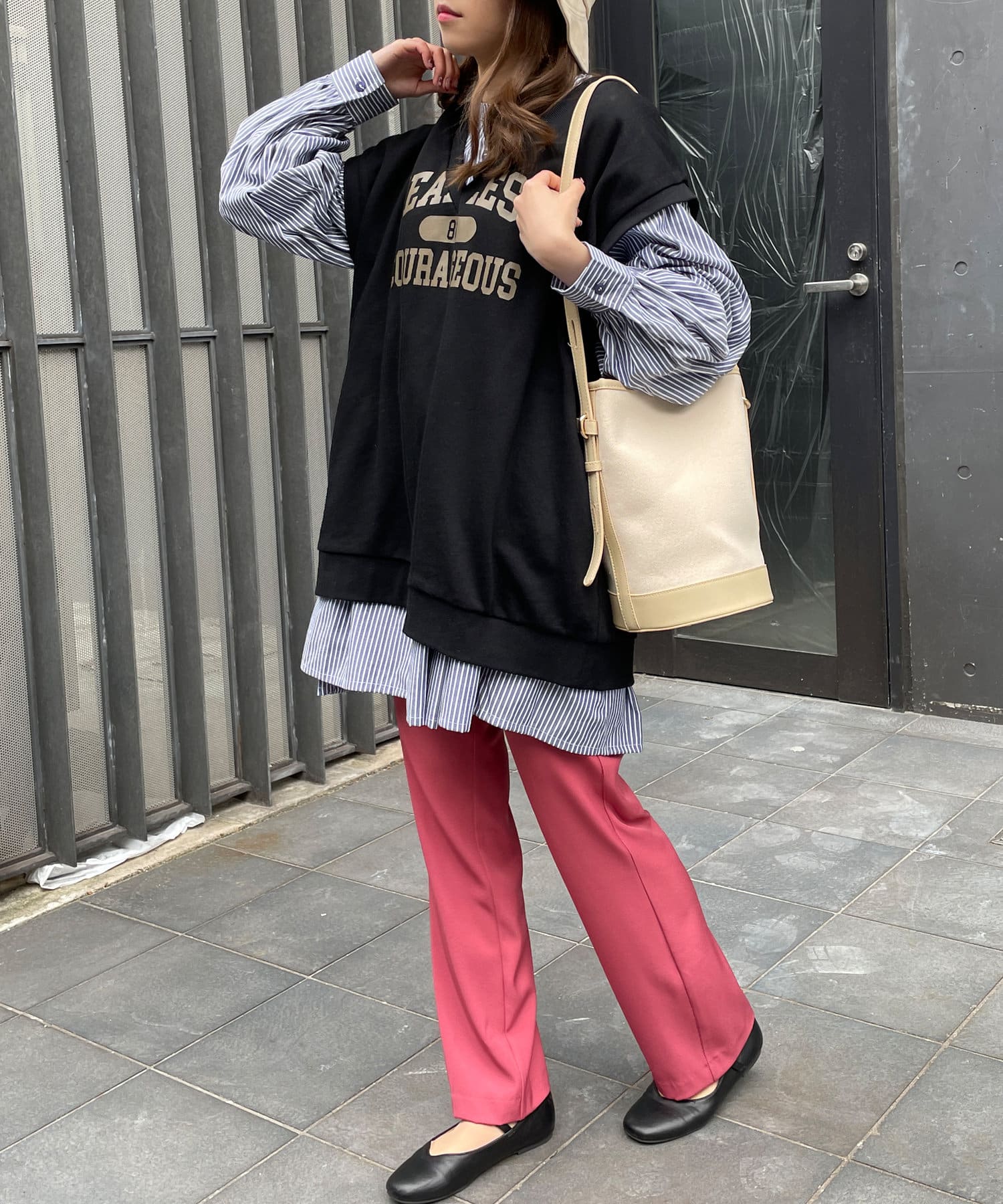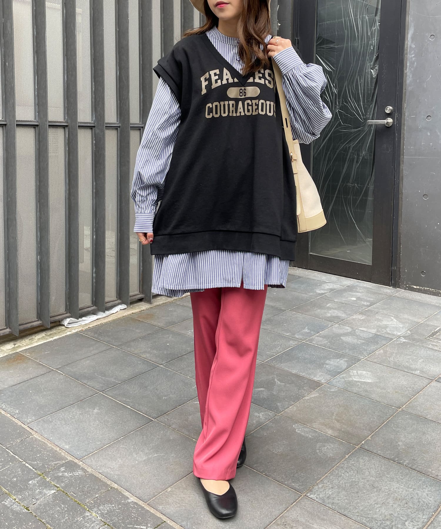 単体でもお洒落で可愛く仕上がりますが、ベストやスウェットとレイヤードしたアレンジも楽しめます。