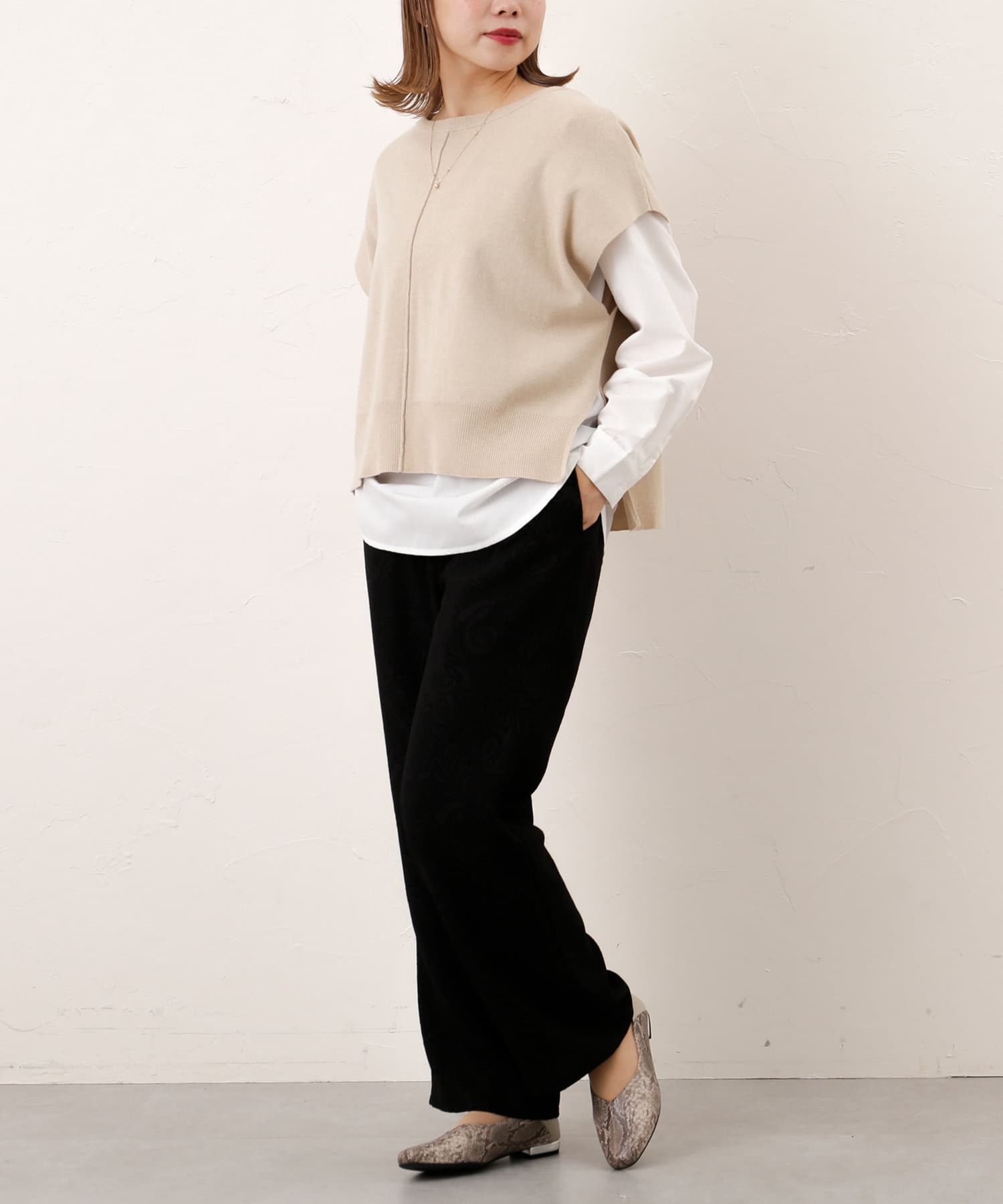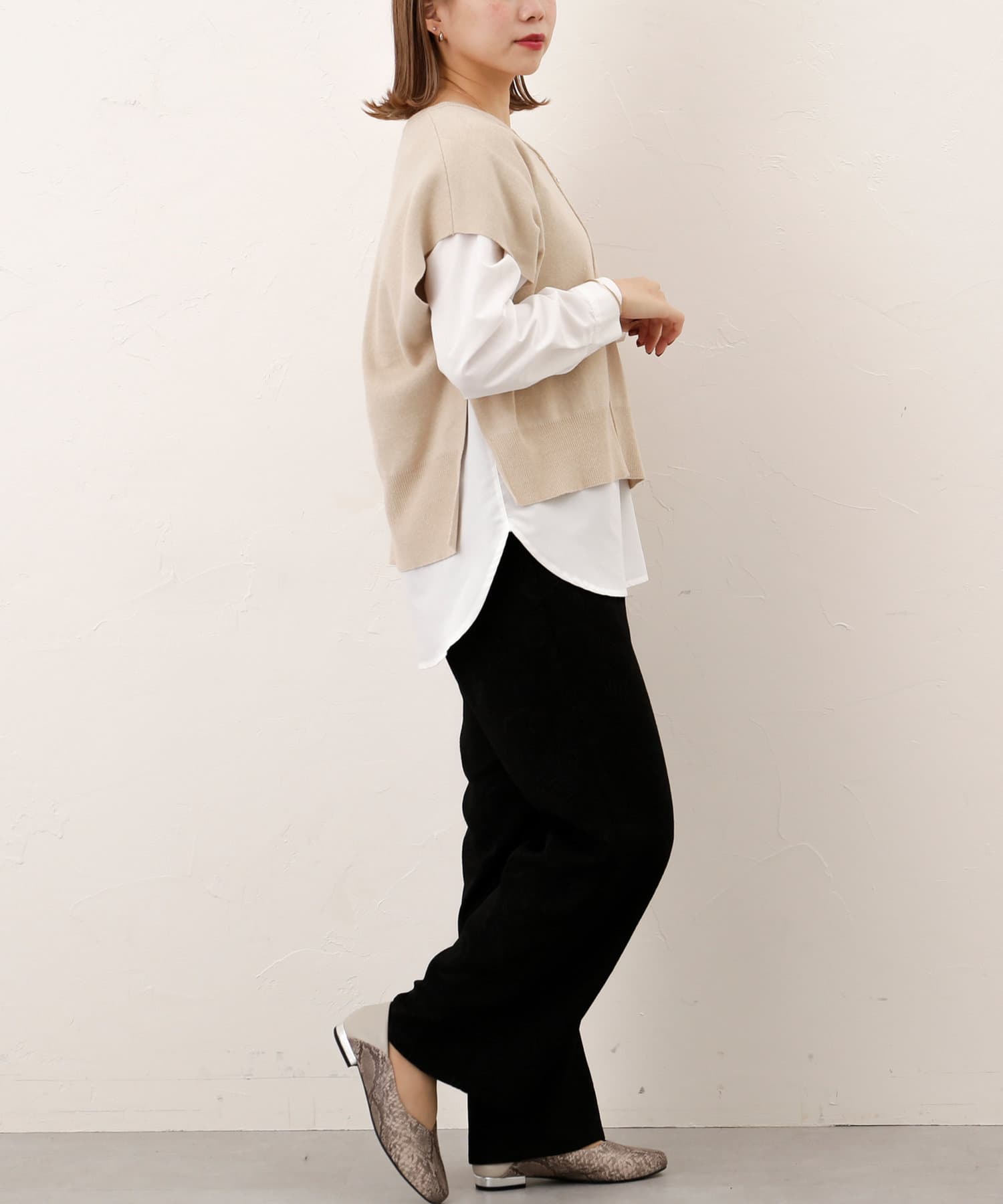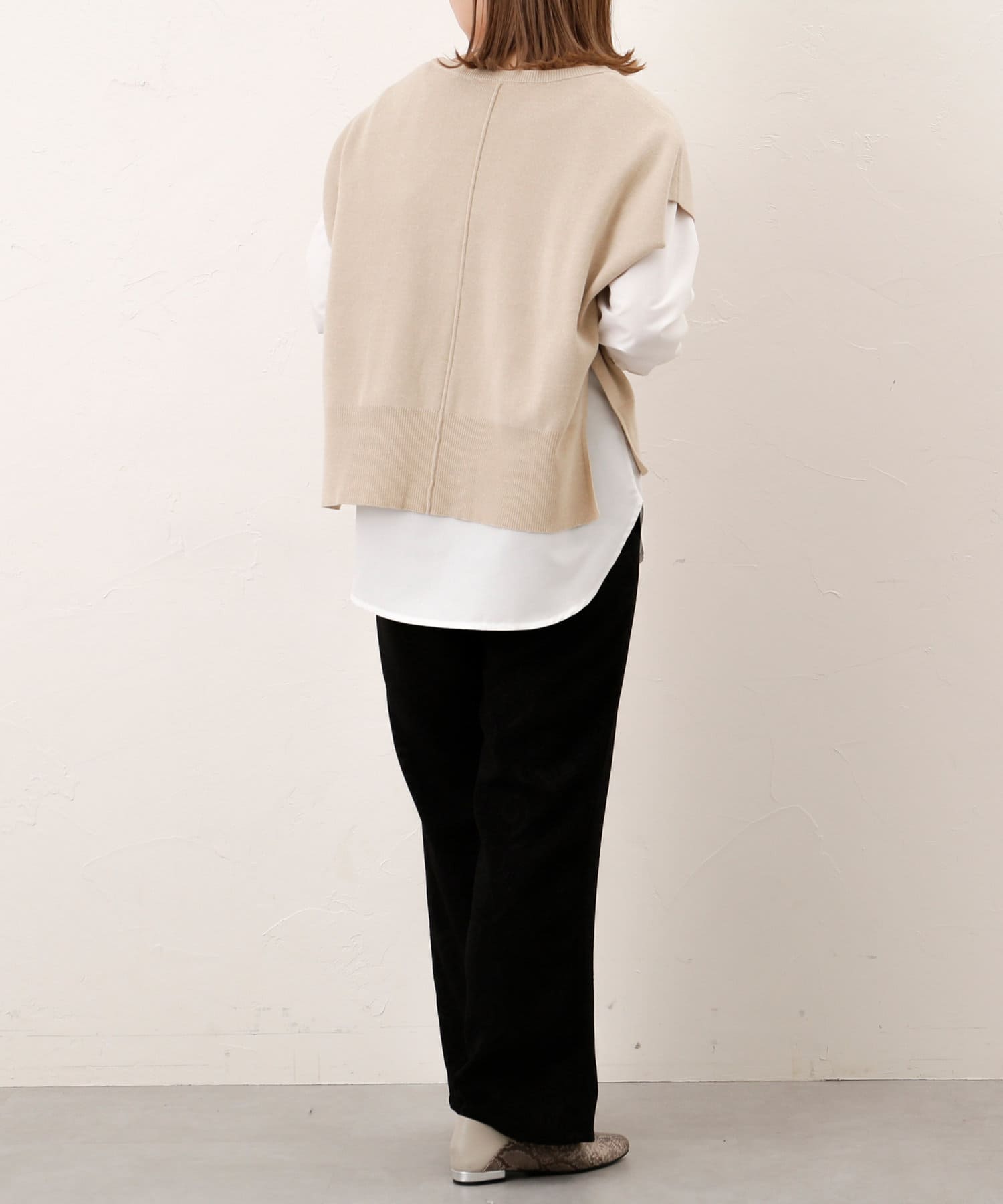 ベストはサイドスリット入りなのでワンピースにレイヤードするのもおすすめです。