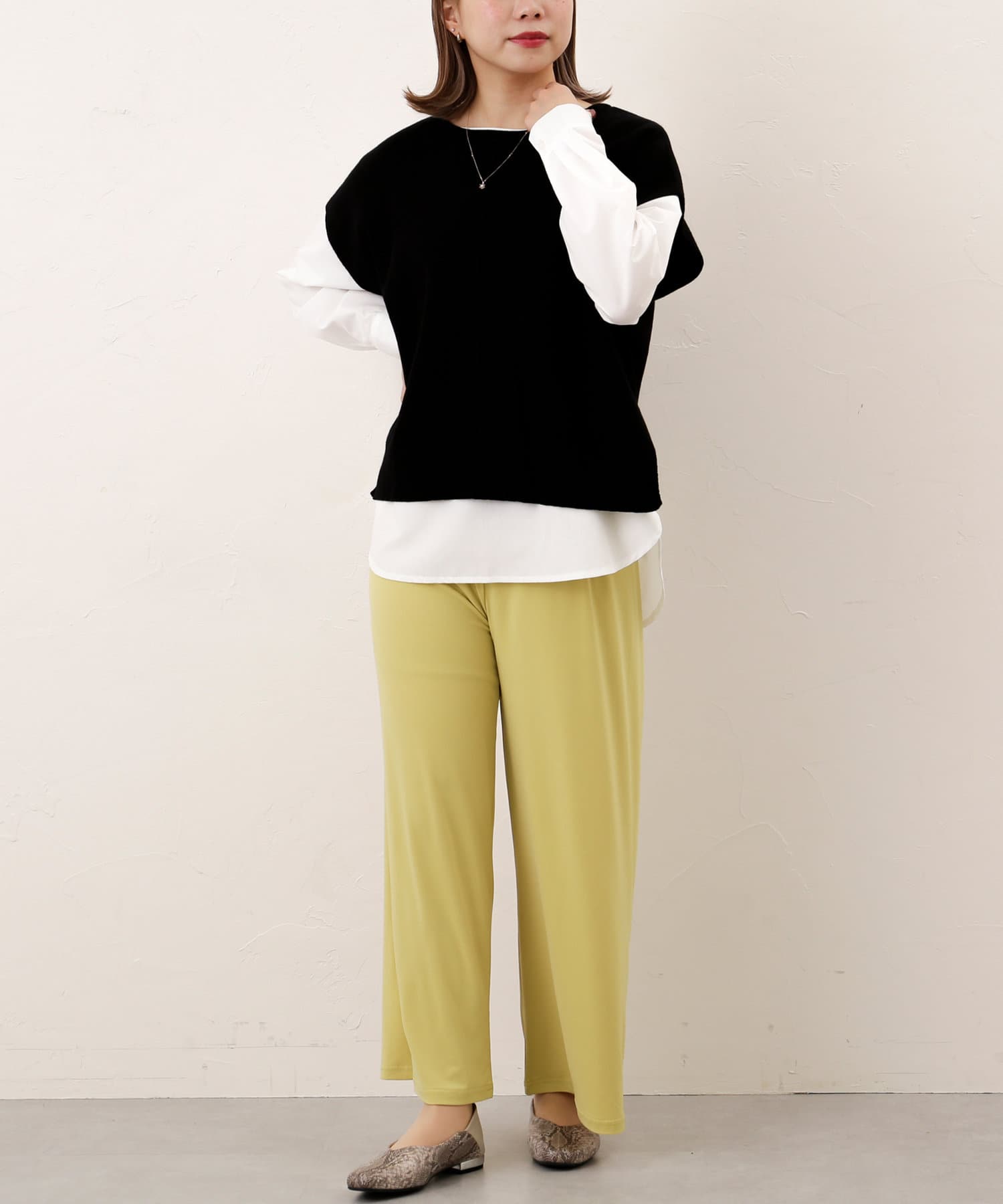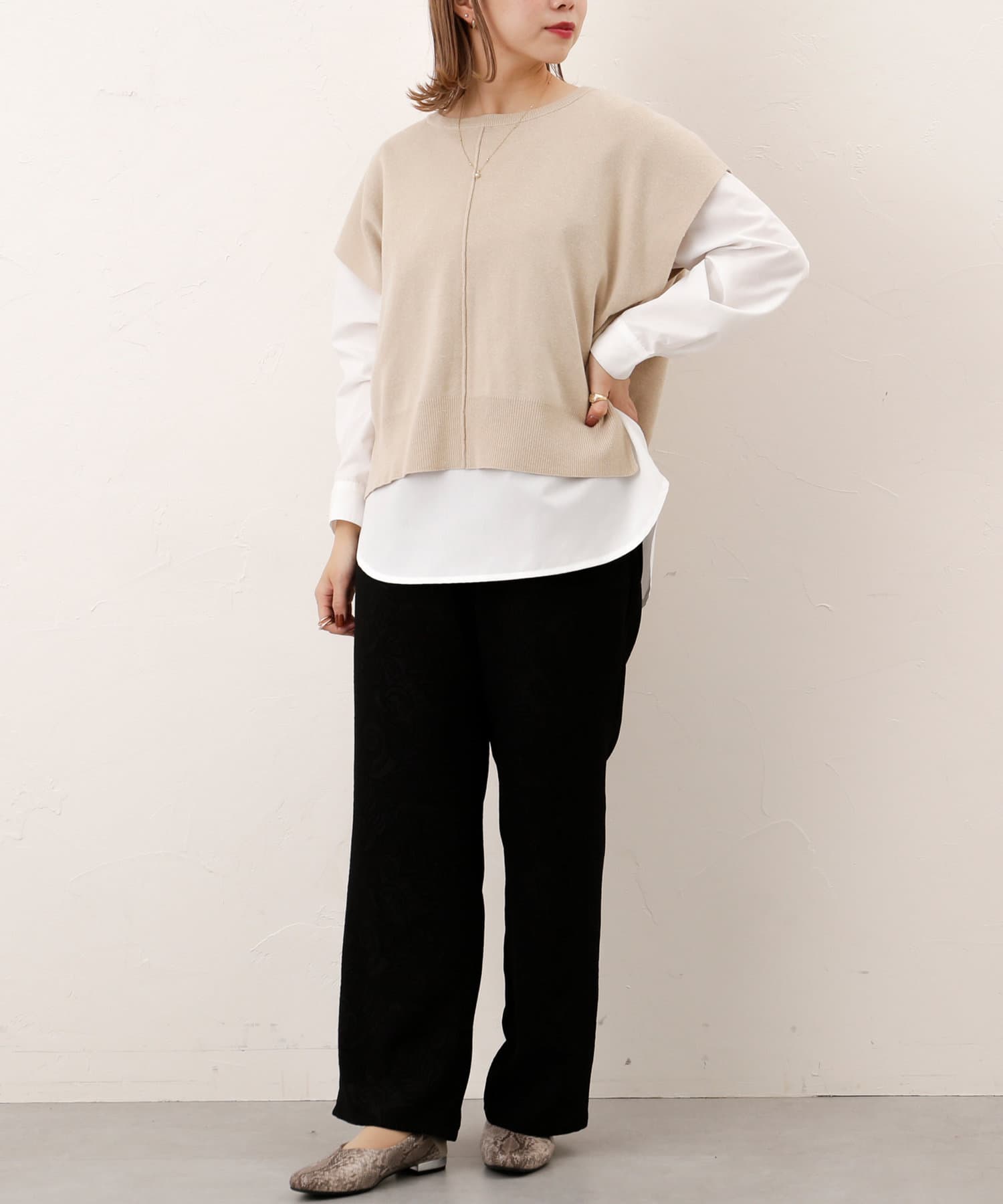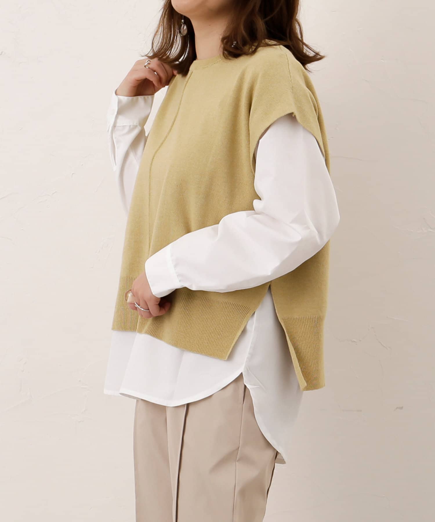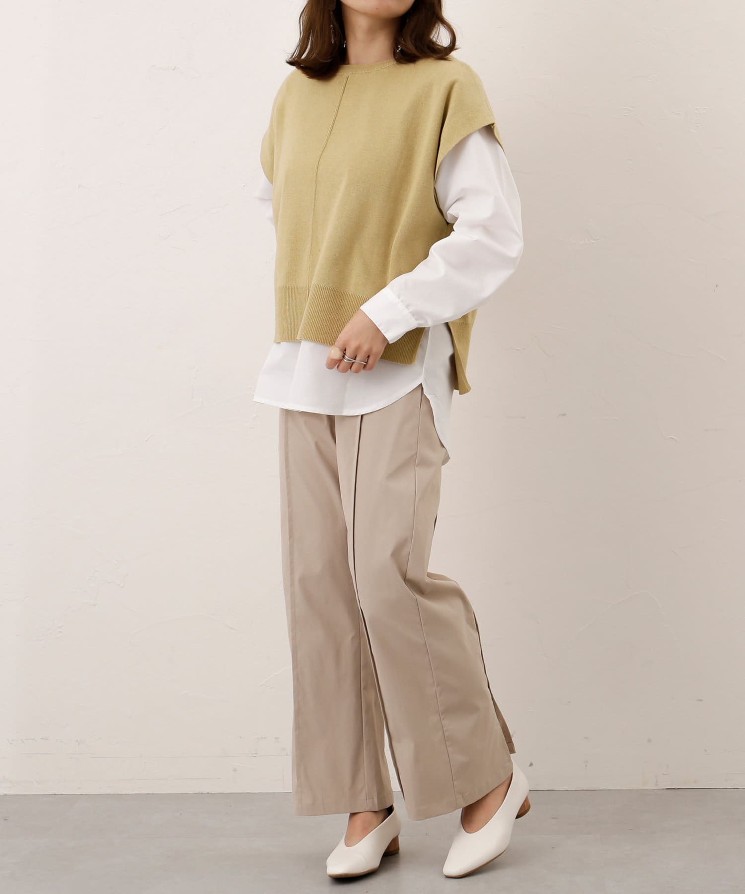 ベストはサイドスリット入りなのでワンピースにレイヤードするのもおすすめです。
