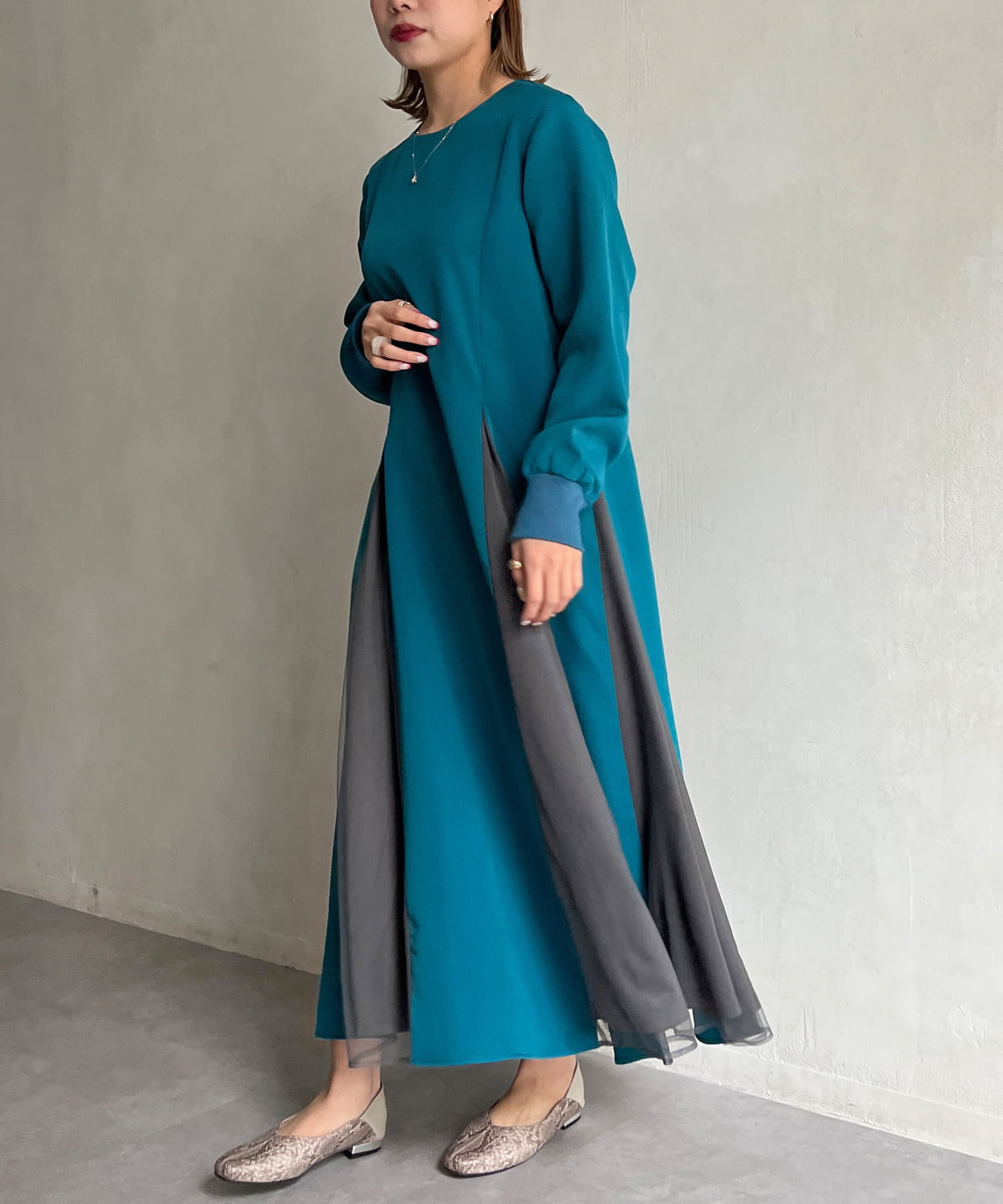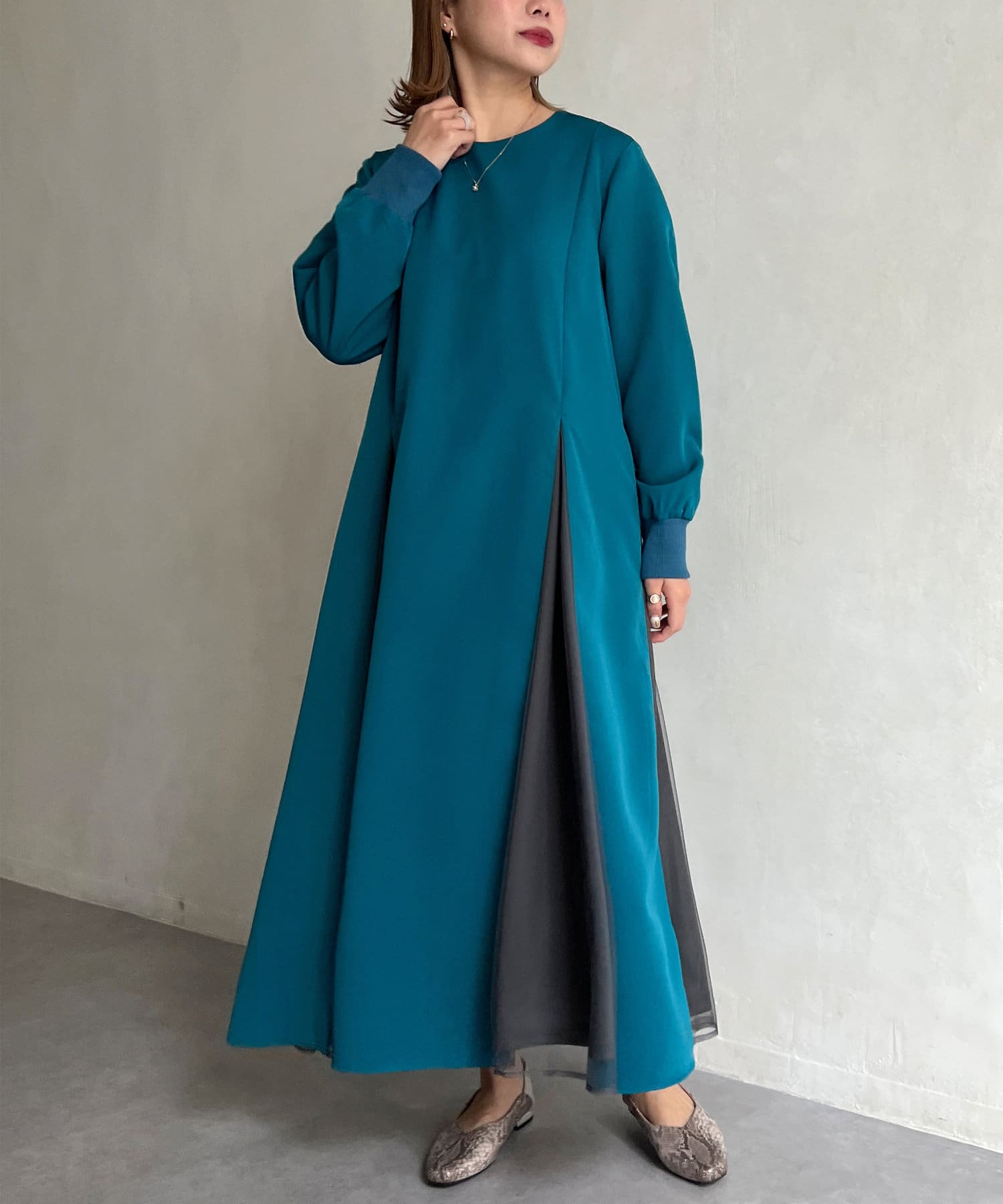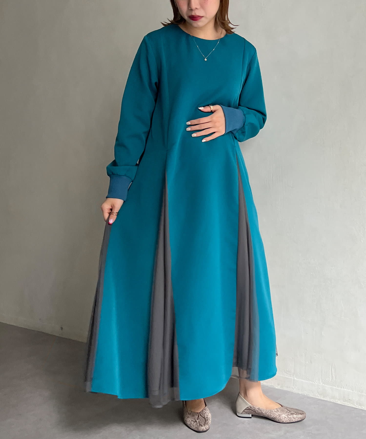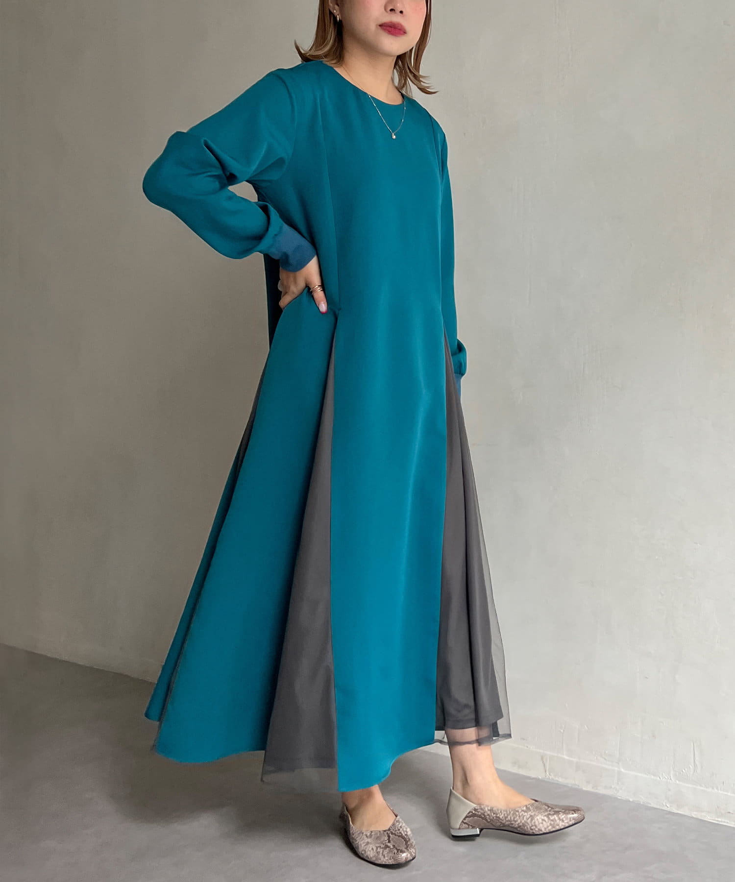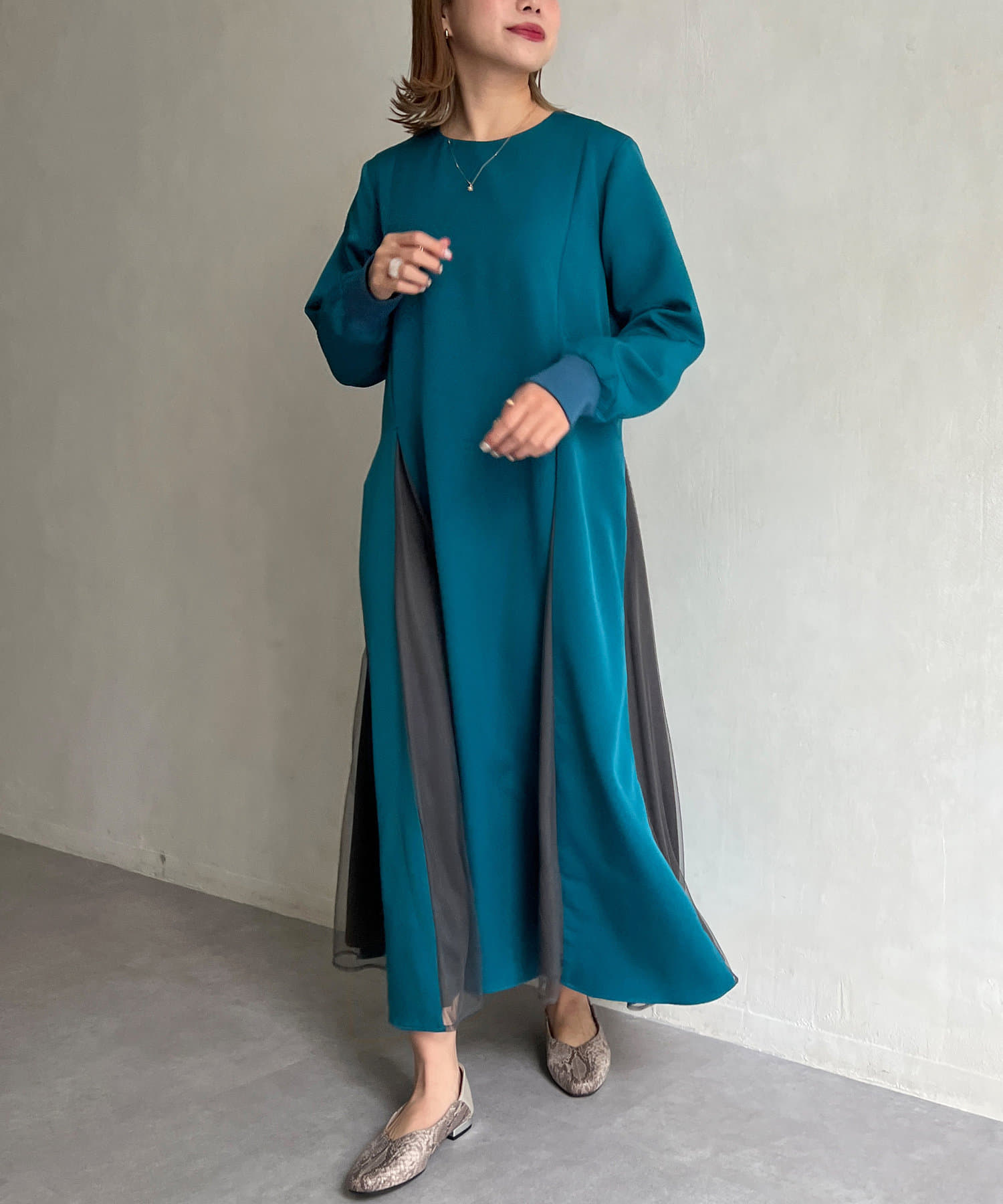 ・華やかなチュールの配色デザインが映える春ワンピースです。