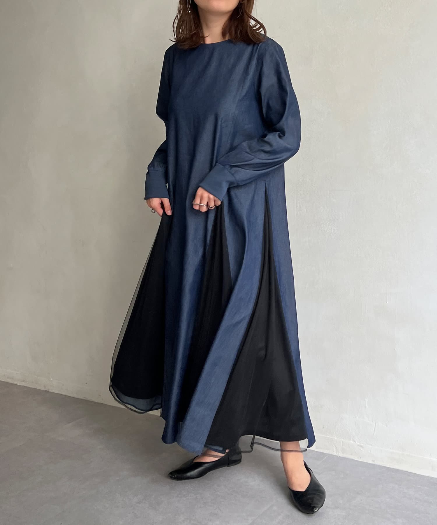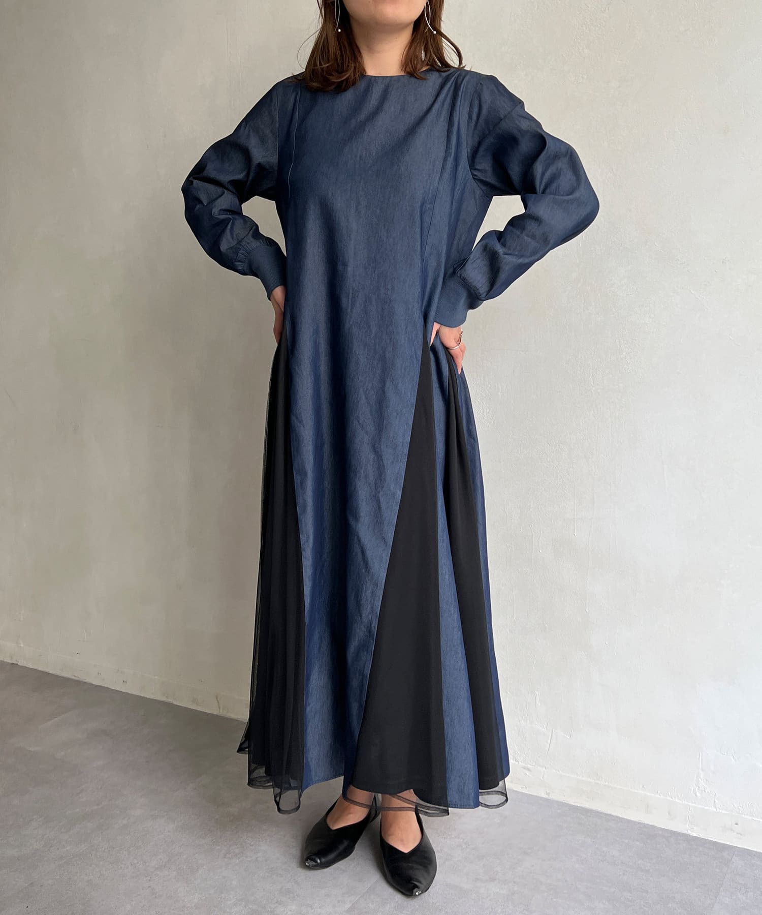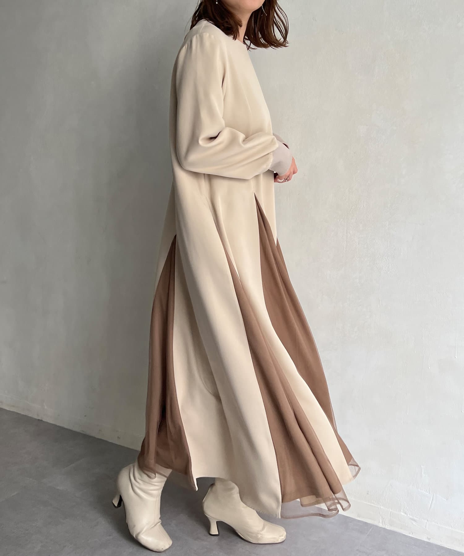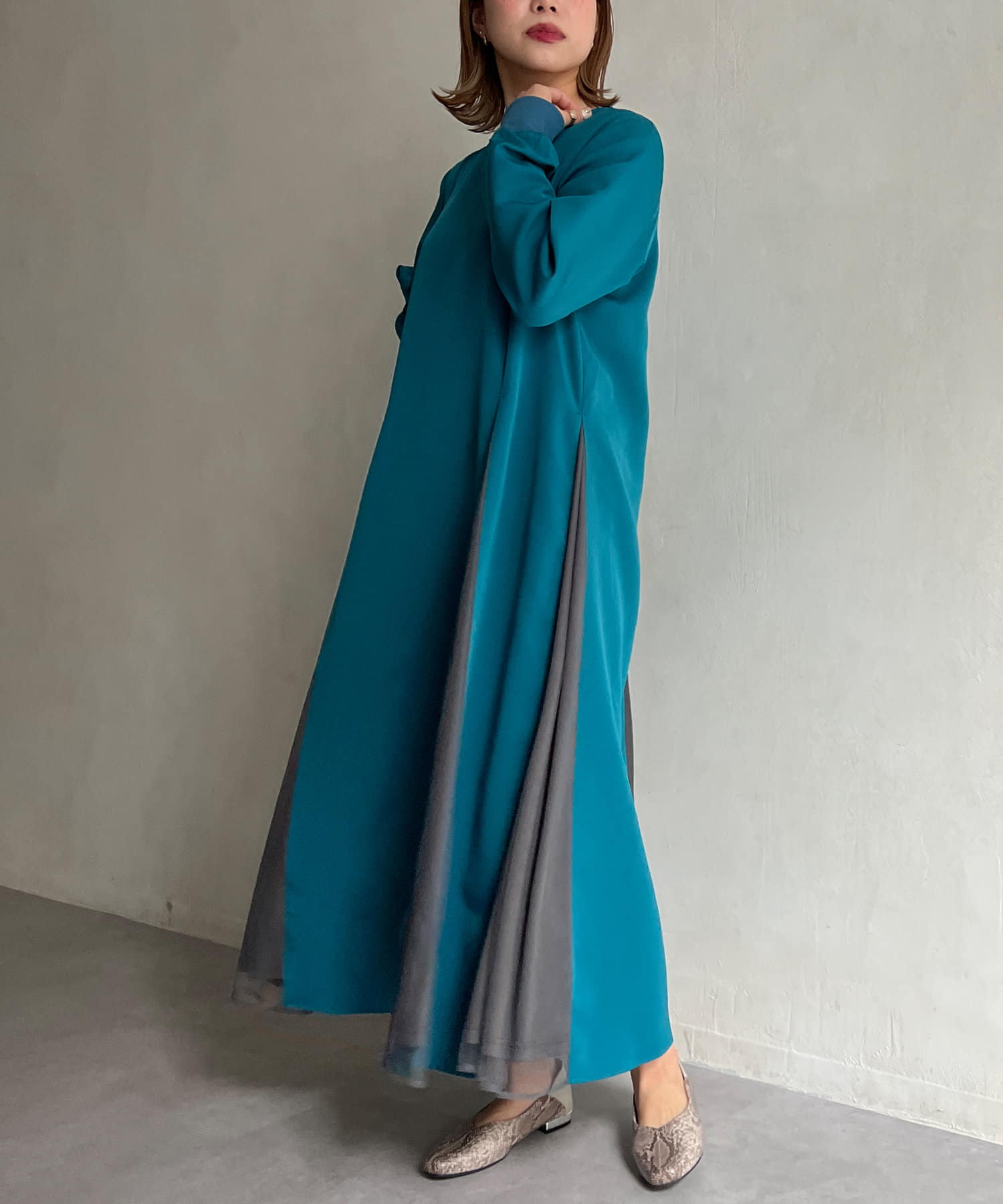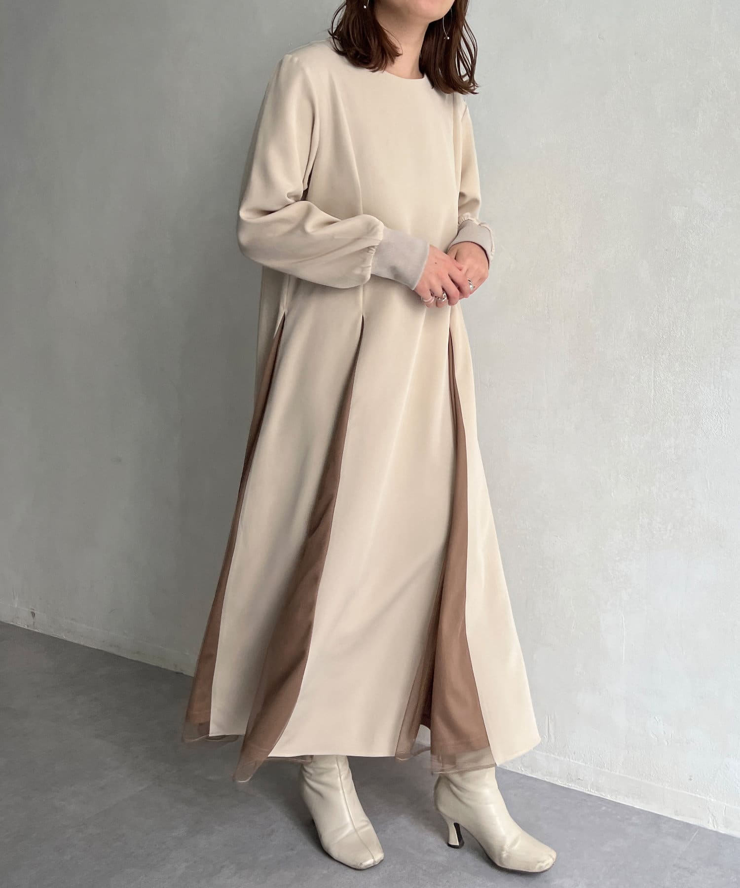 ・華やかなチュールの配色デザインが映える春ワンピースです。