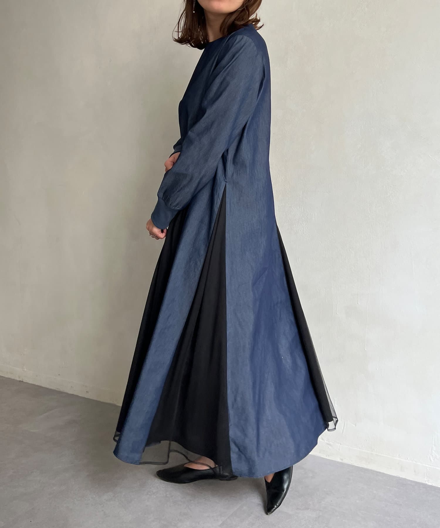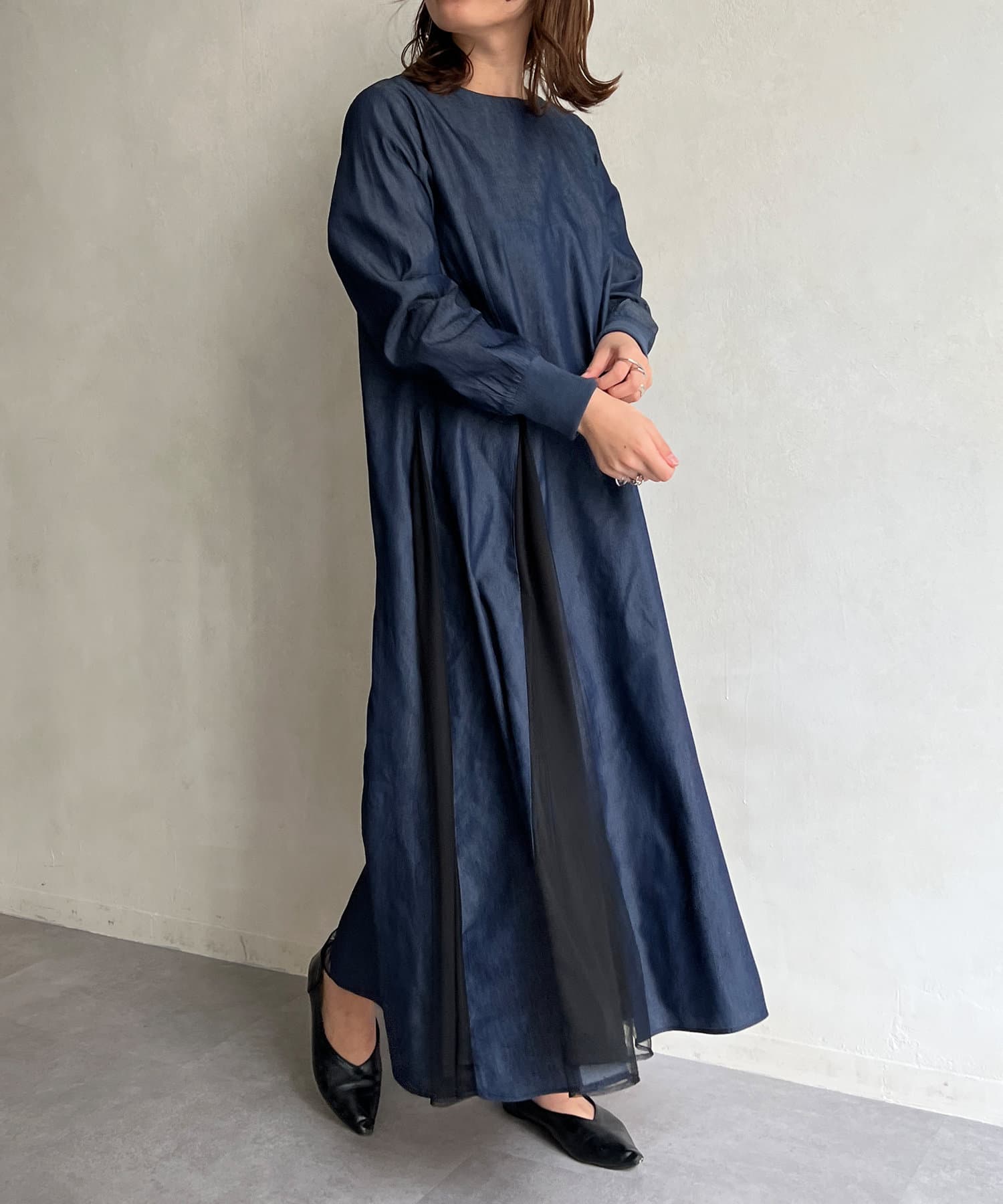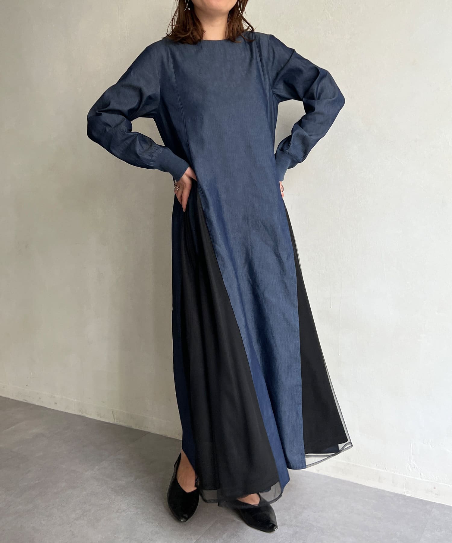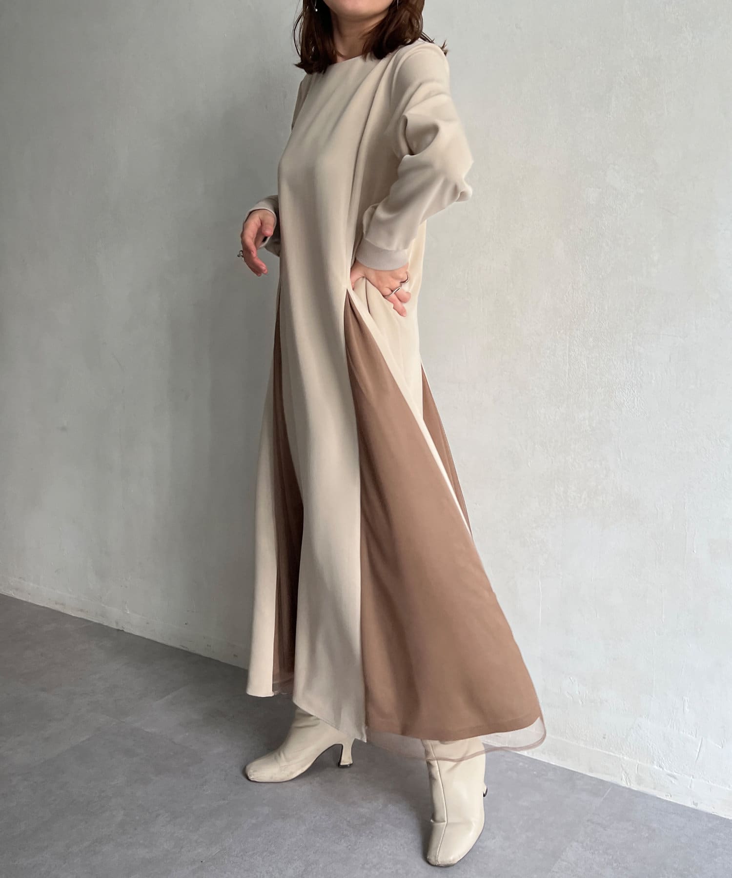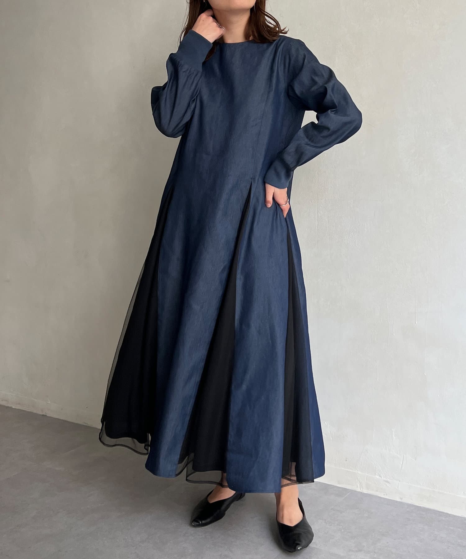 ・華やかなチュールの配色デザインが映える春ワンピースです。