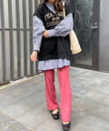 差し色にぴったりな色合いなので、トップスはシンプルにシャツやスウェットで合わせるのがおすすめです。