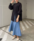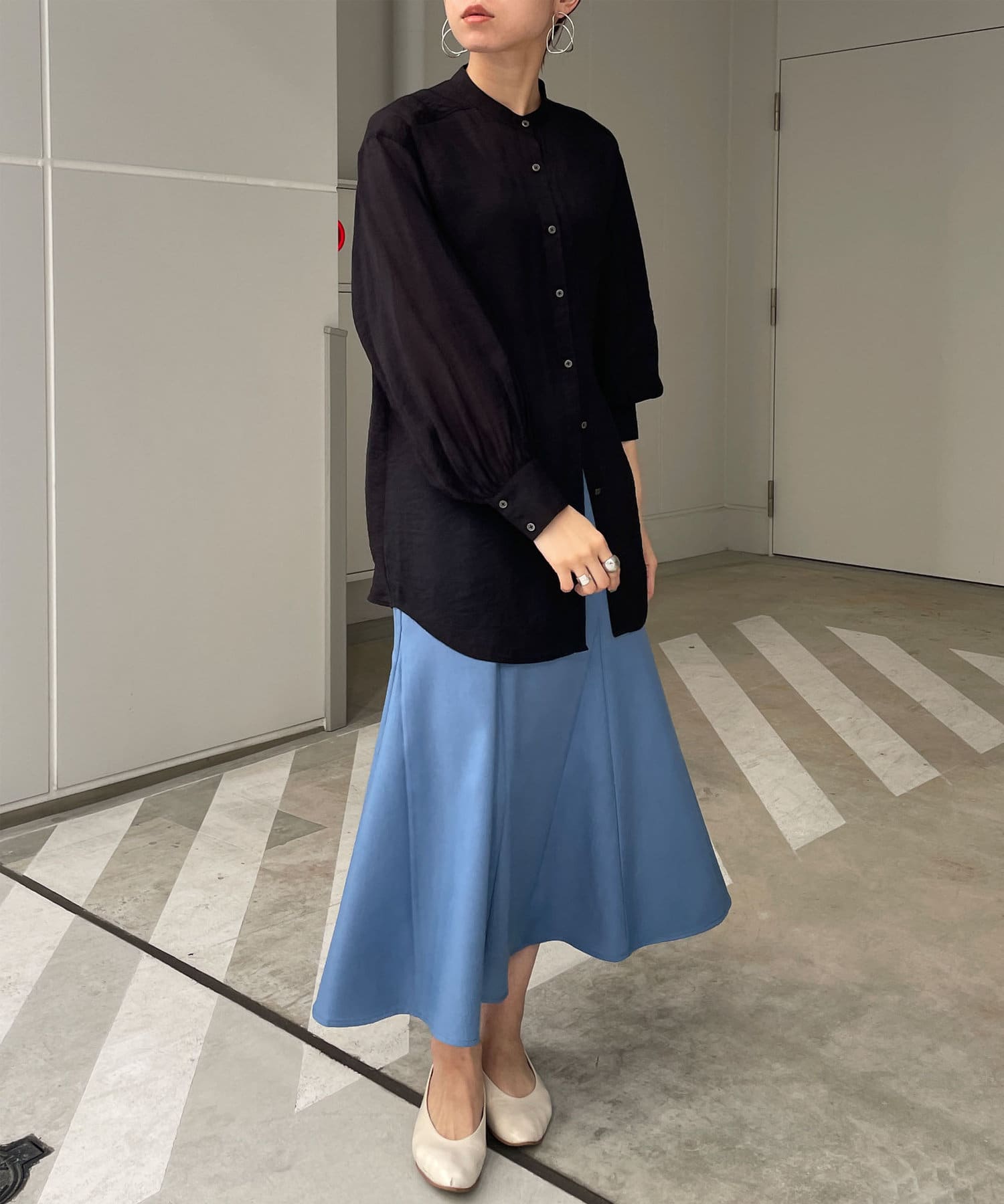 ・透け感のある素材なのでブラックでも軽い印象に仕上がり、これからの時期におすすめの一着です。