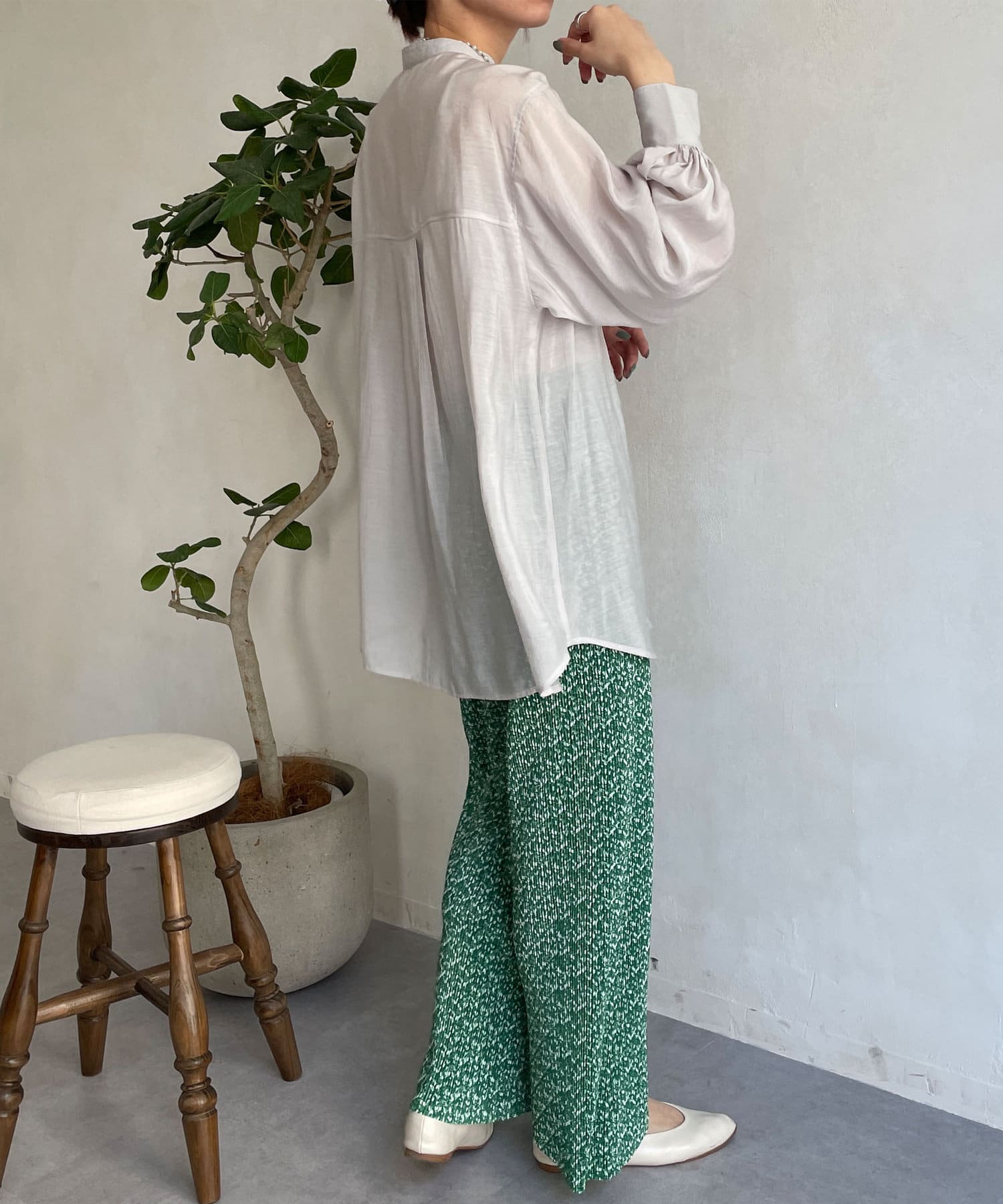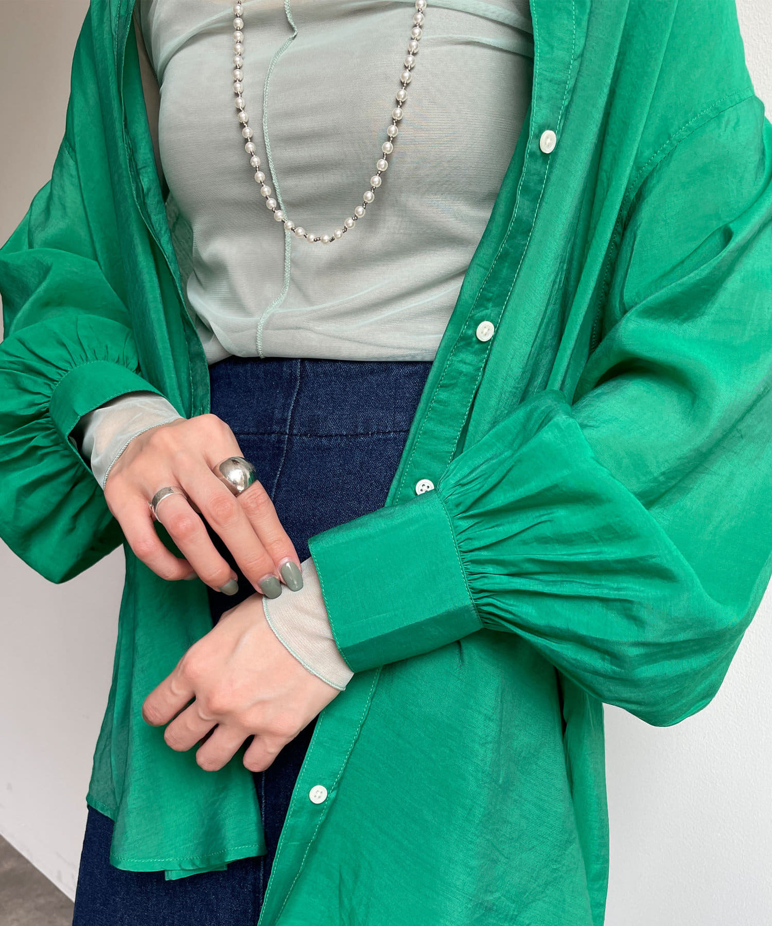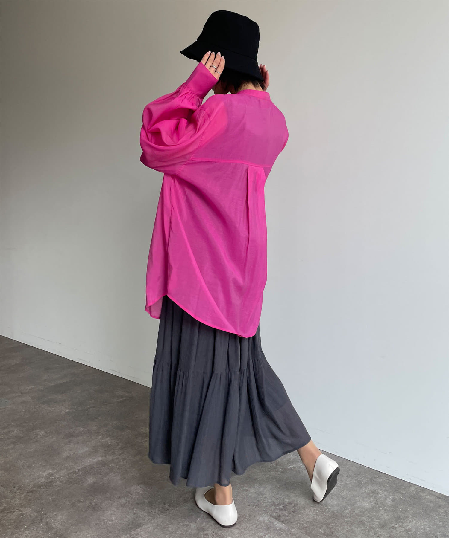 ・シアー素材とゆるシルエットがこなれ感のあるスタイリングに仕上がります。