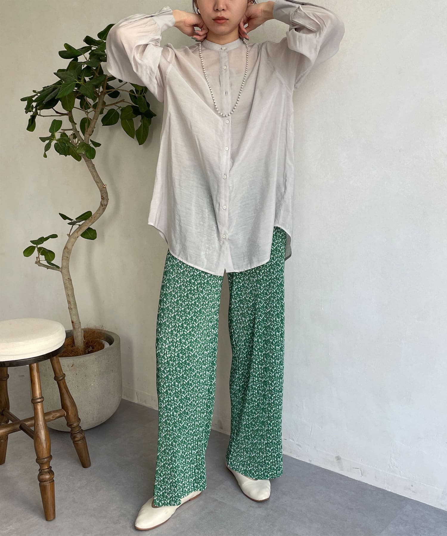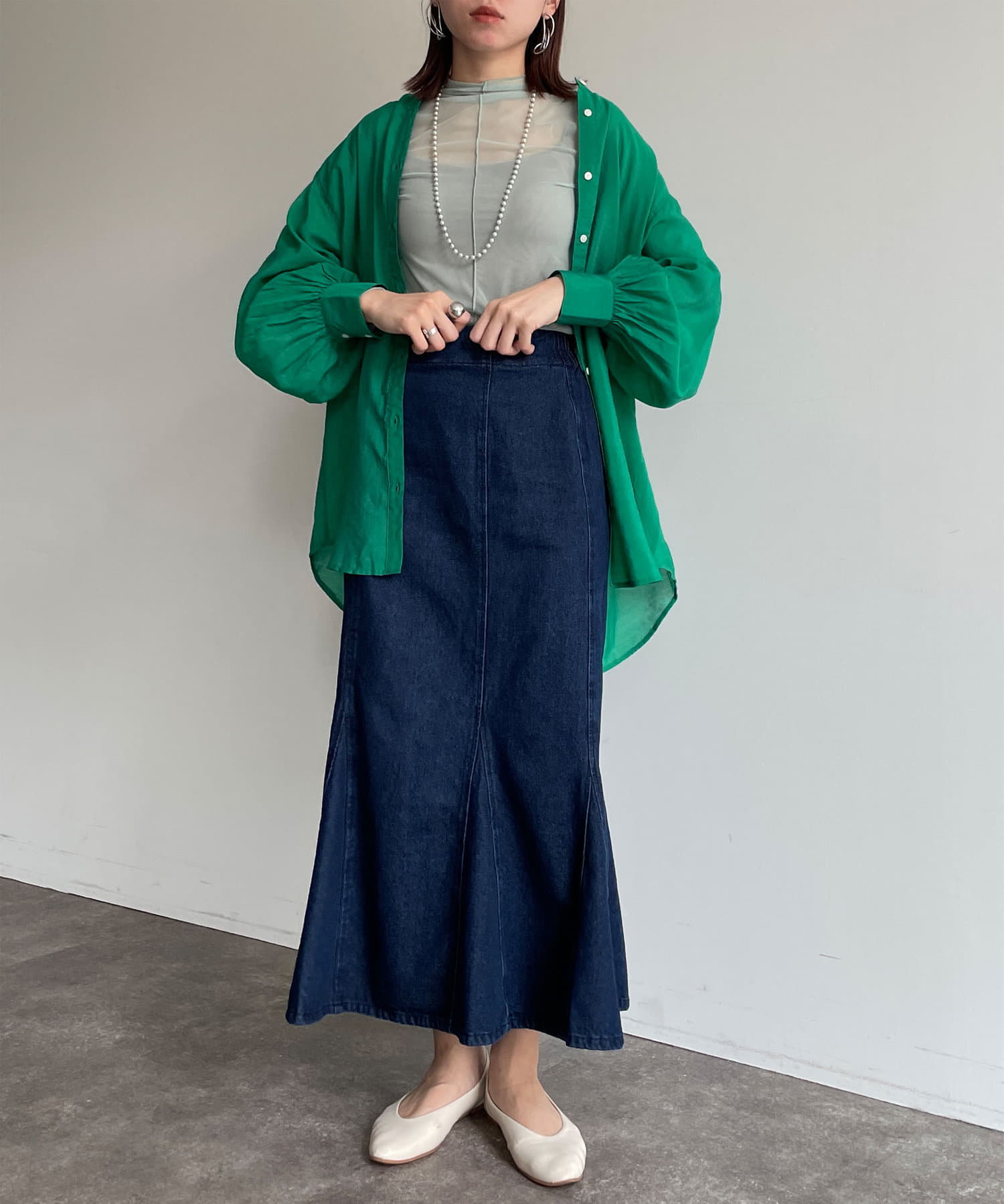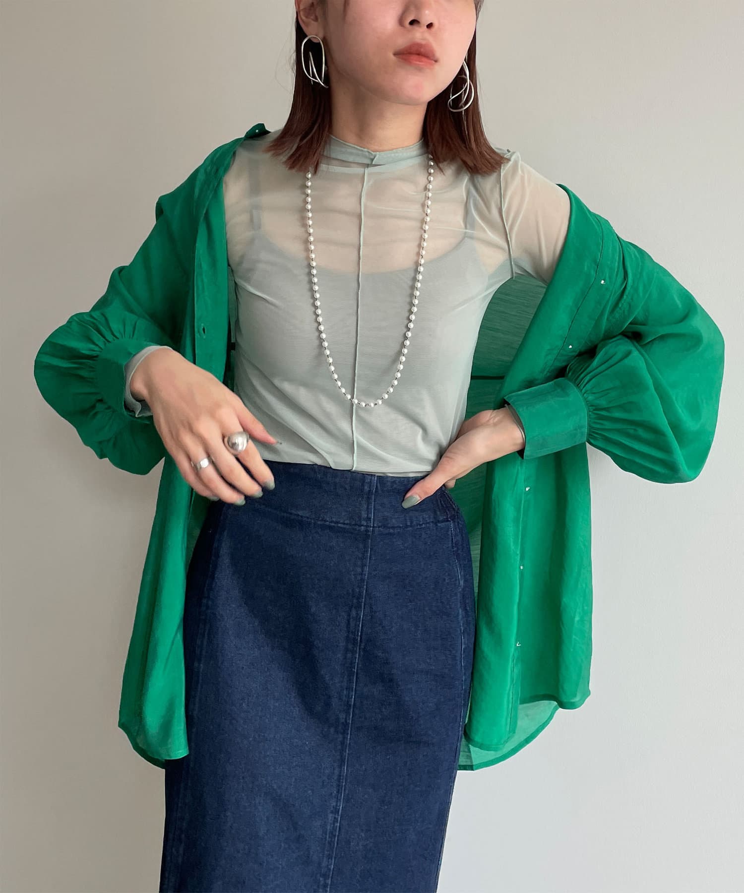 ・シアー素材とゆるシルエットがこなれ感のあるスタイリングに仕上がります。