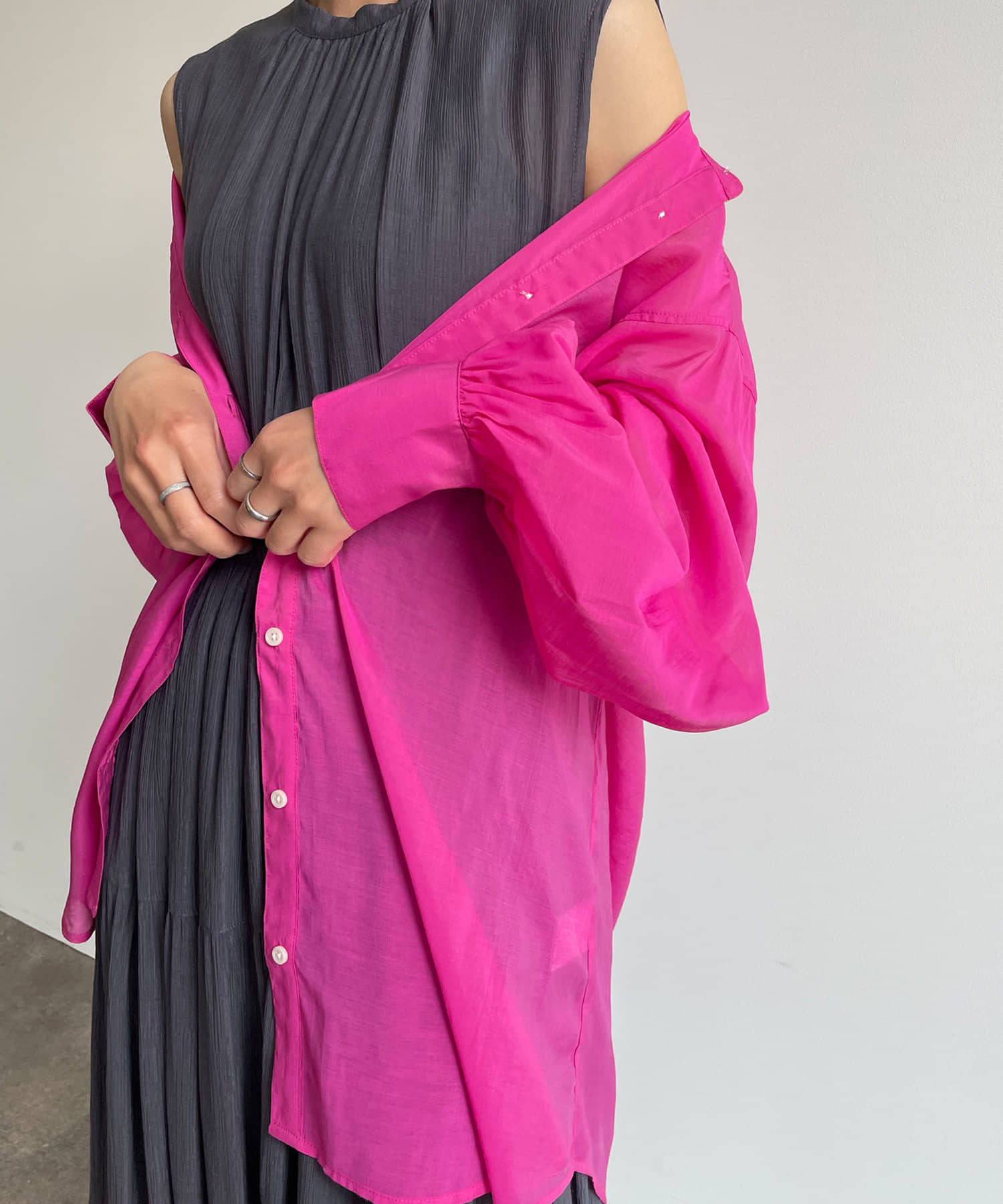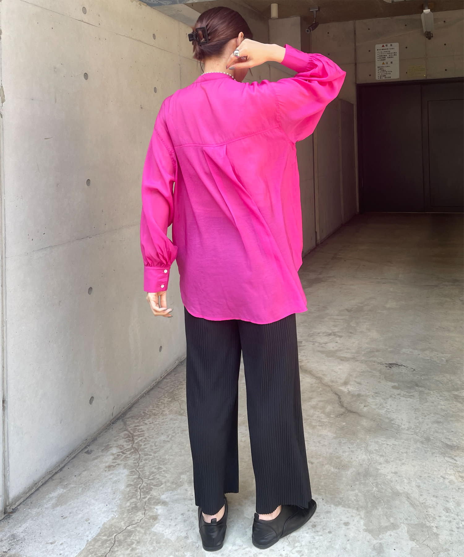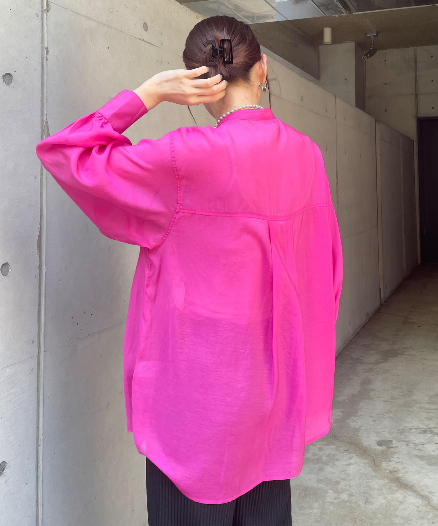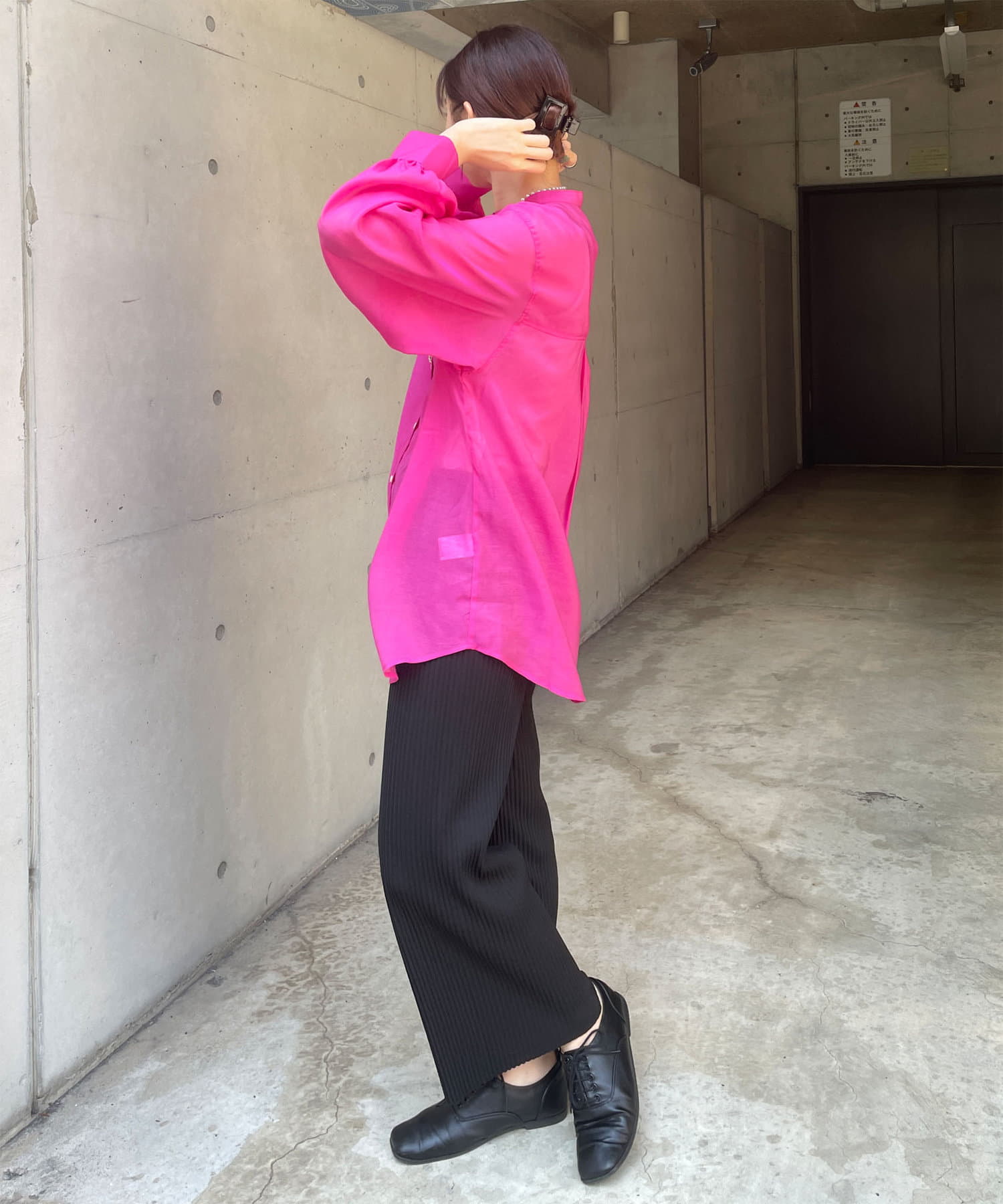 ピンクのシアーシャツ、インパクトがあって可愛いです。