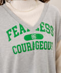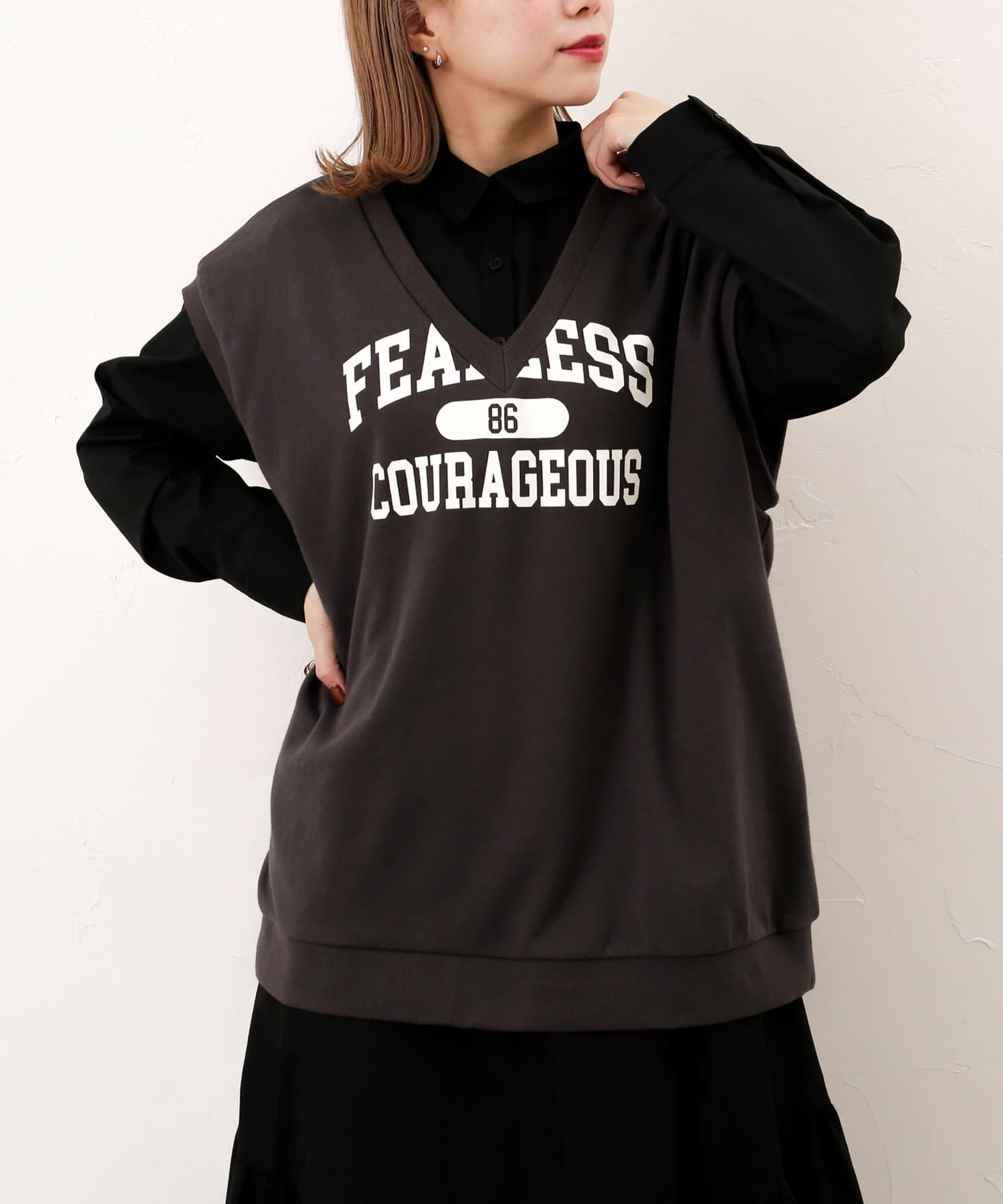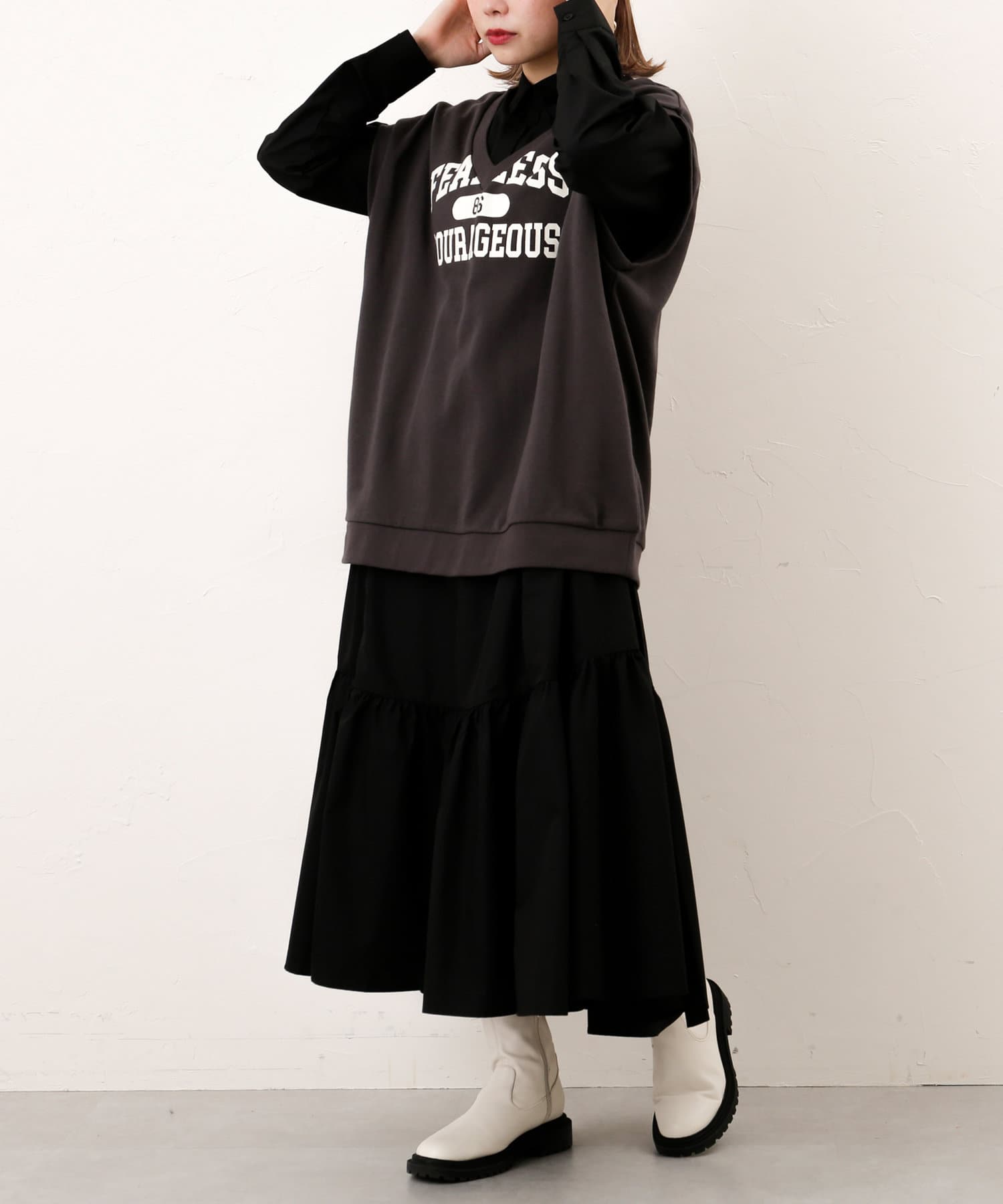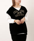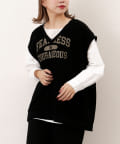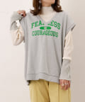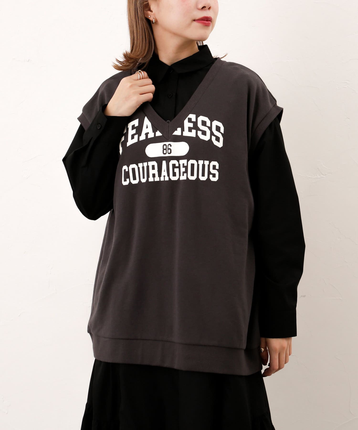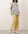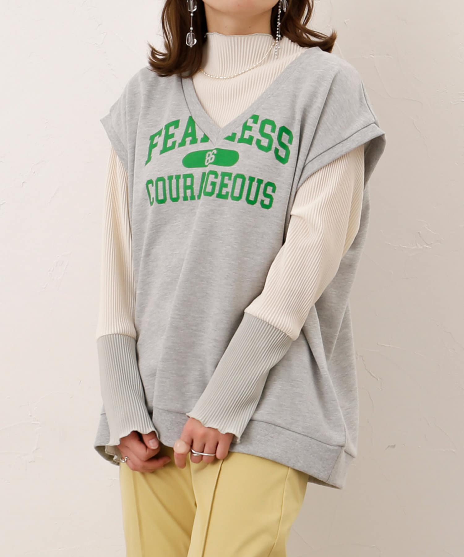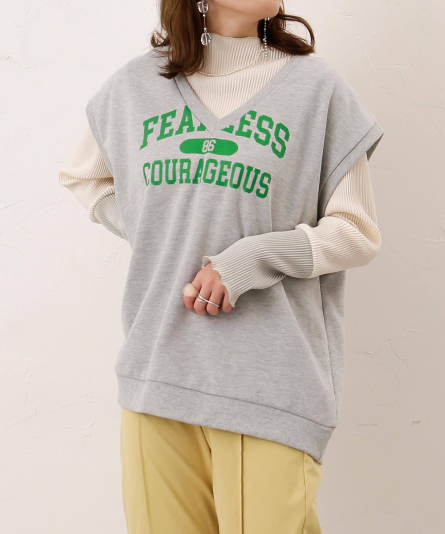 ゆとりがあるベストなので、オーバーサイズのカットソーや袖にデザインのあるシャツなど、半袖長袖問わず様々なトップスとレイヤードできます◎