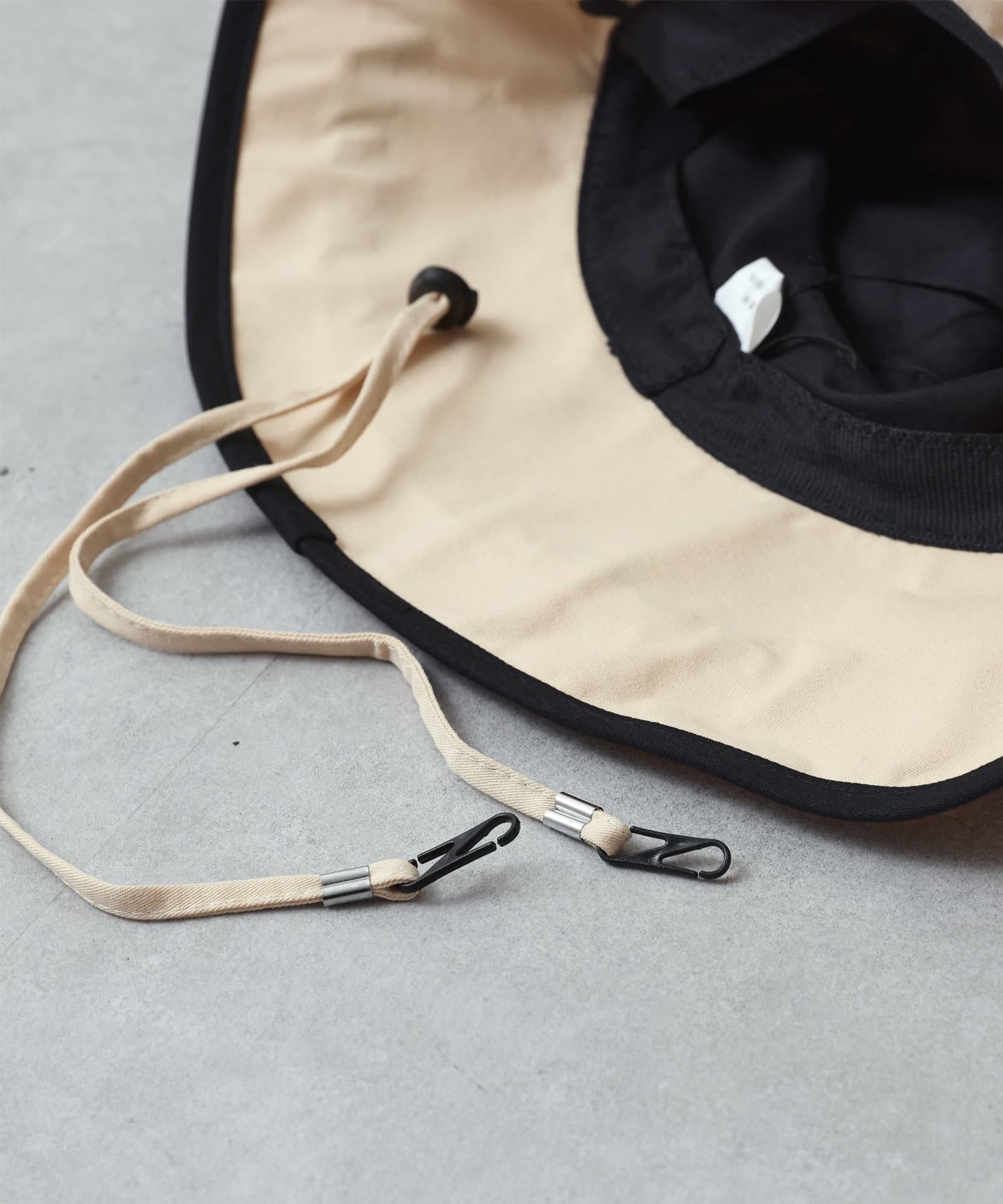 ・サイズ調節ひも付きで頭にフィット感が出るように一工夫しています。