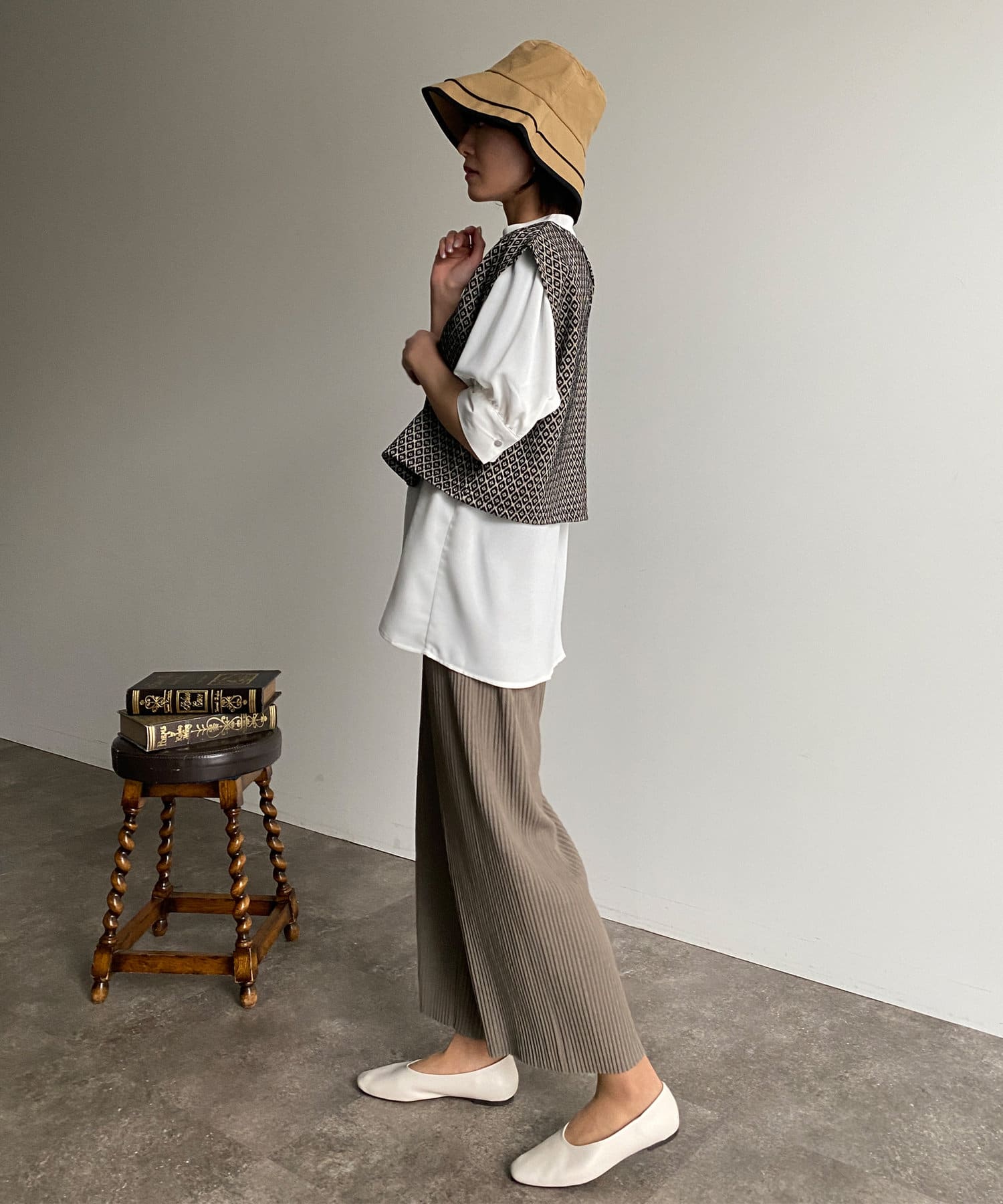 帽子の形とカラーが パンツやスカート、どちらでも合うので着こなしが限定されないのが良いです。購入して良かったです。