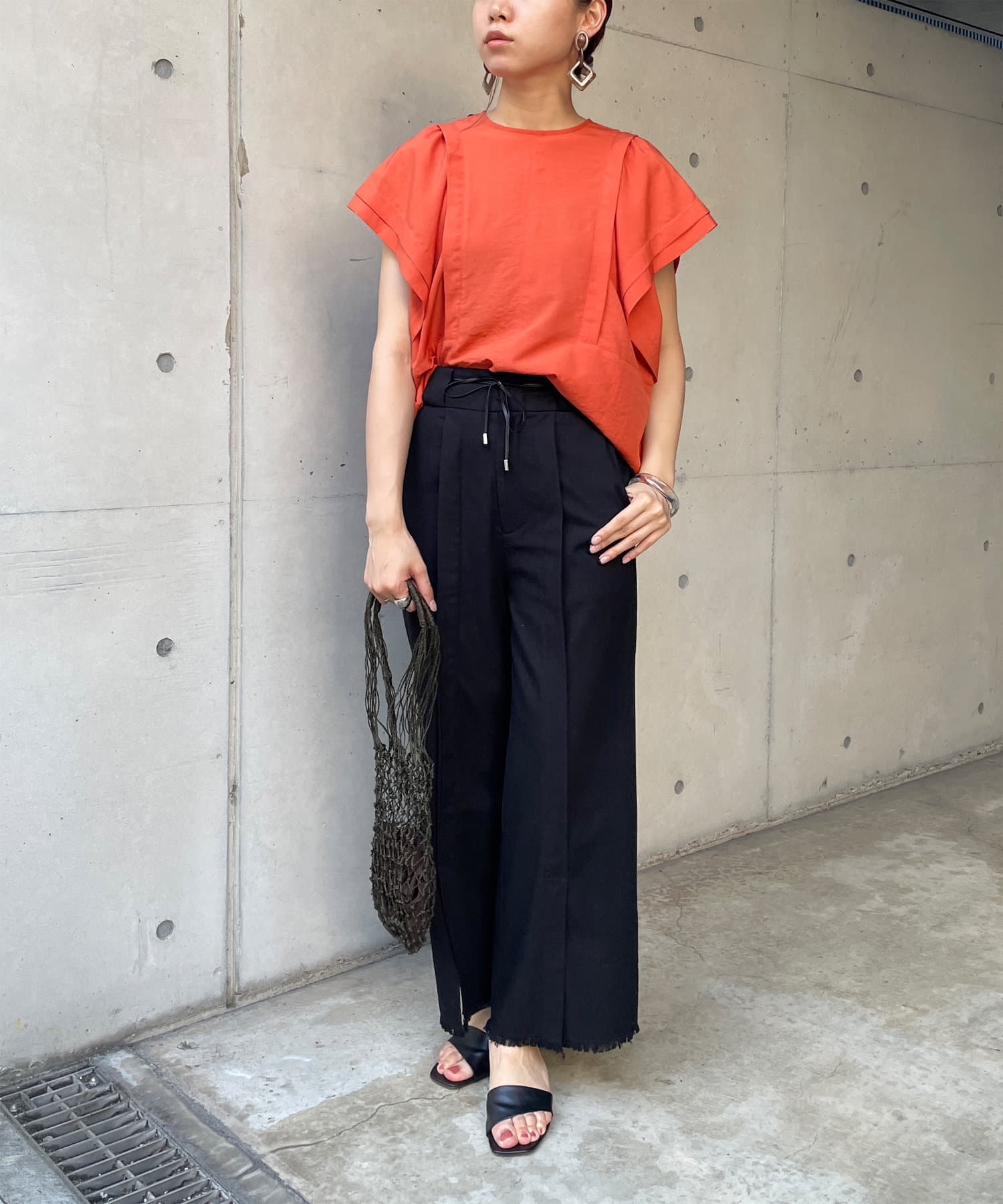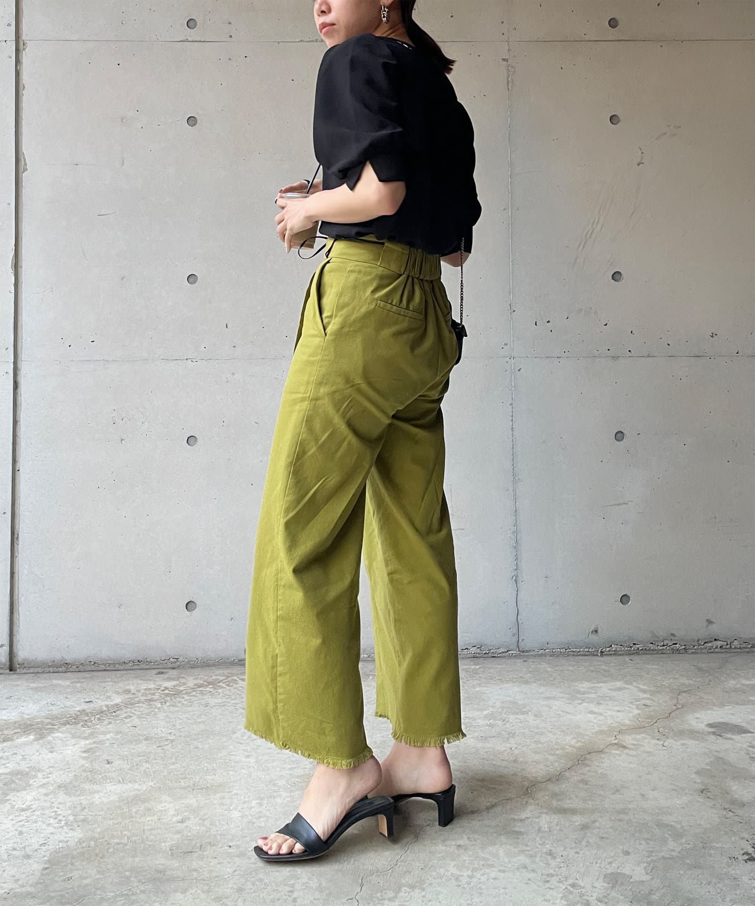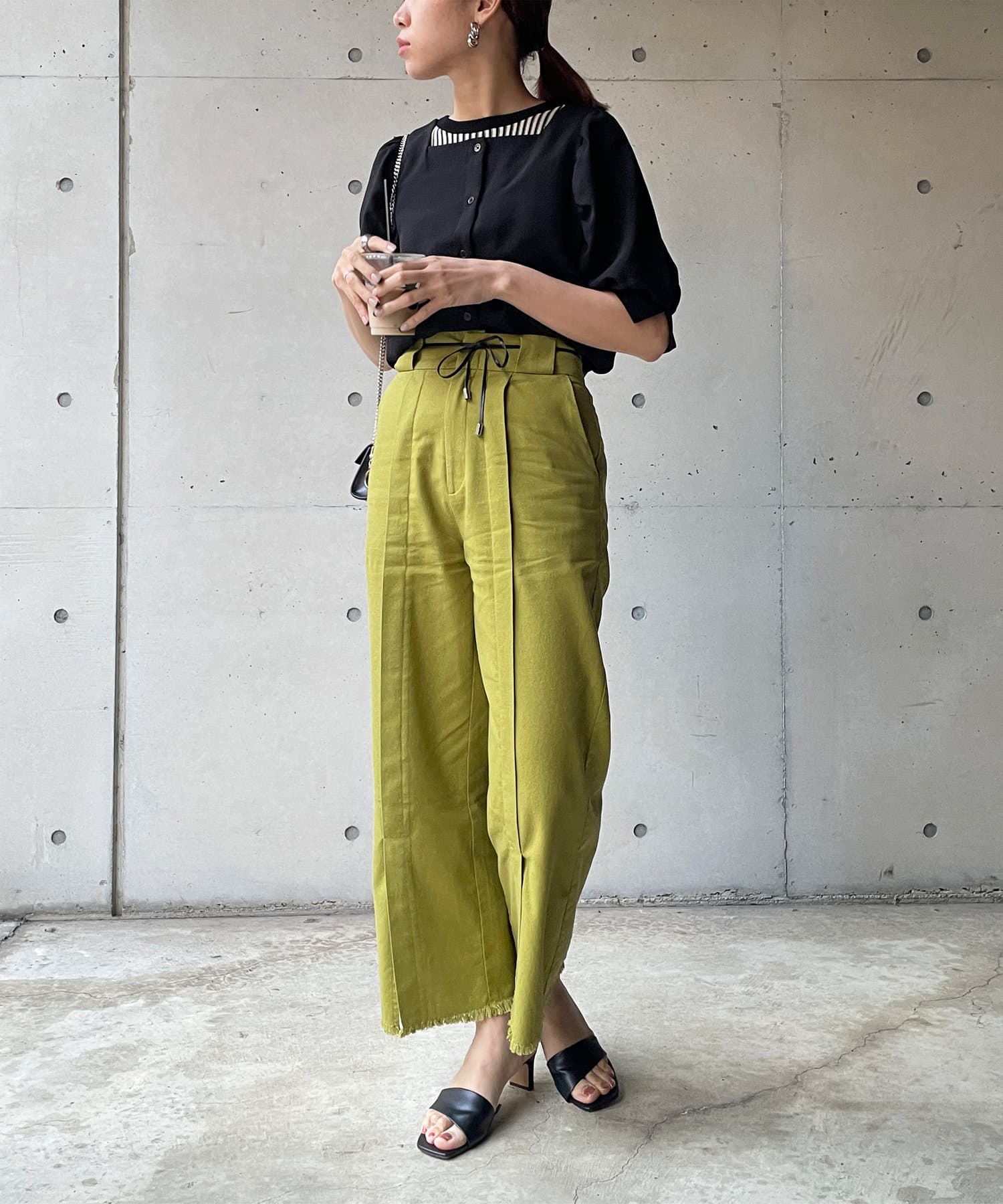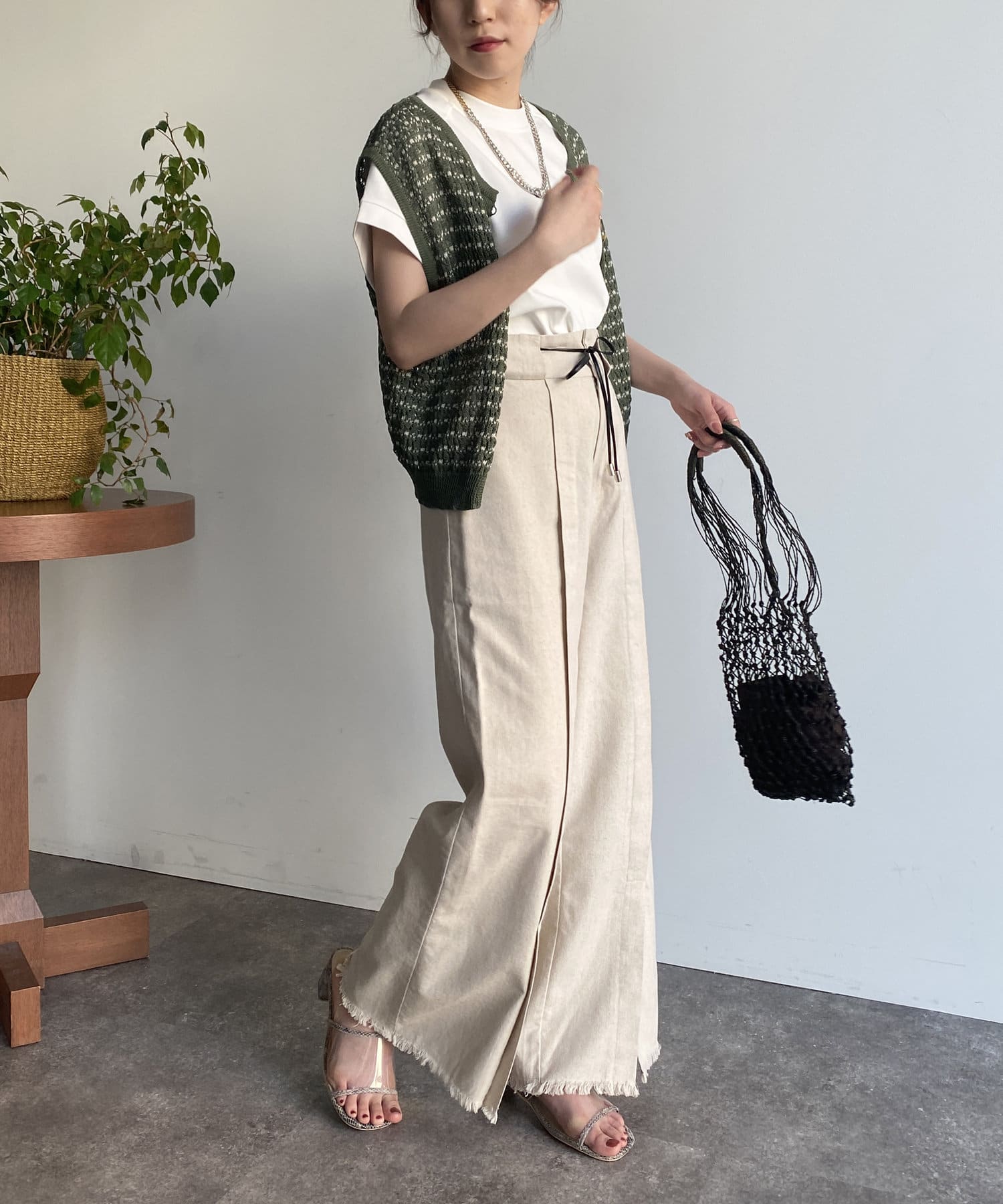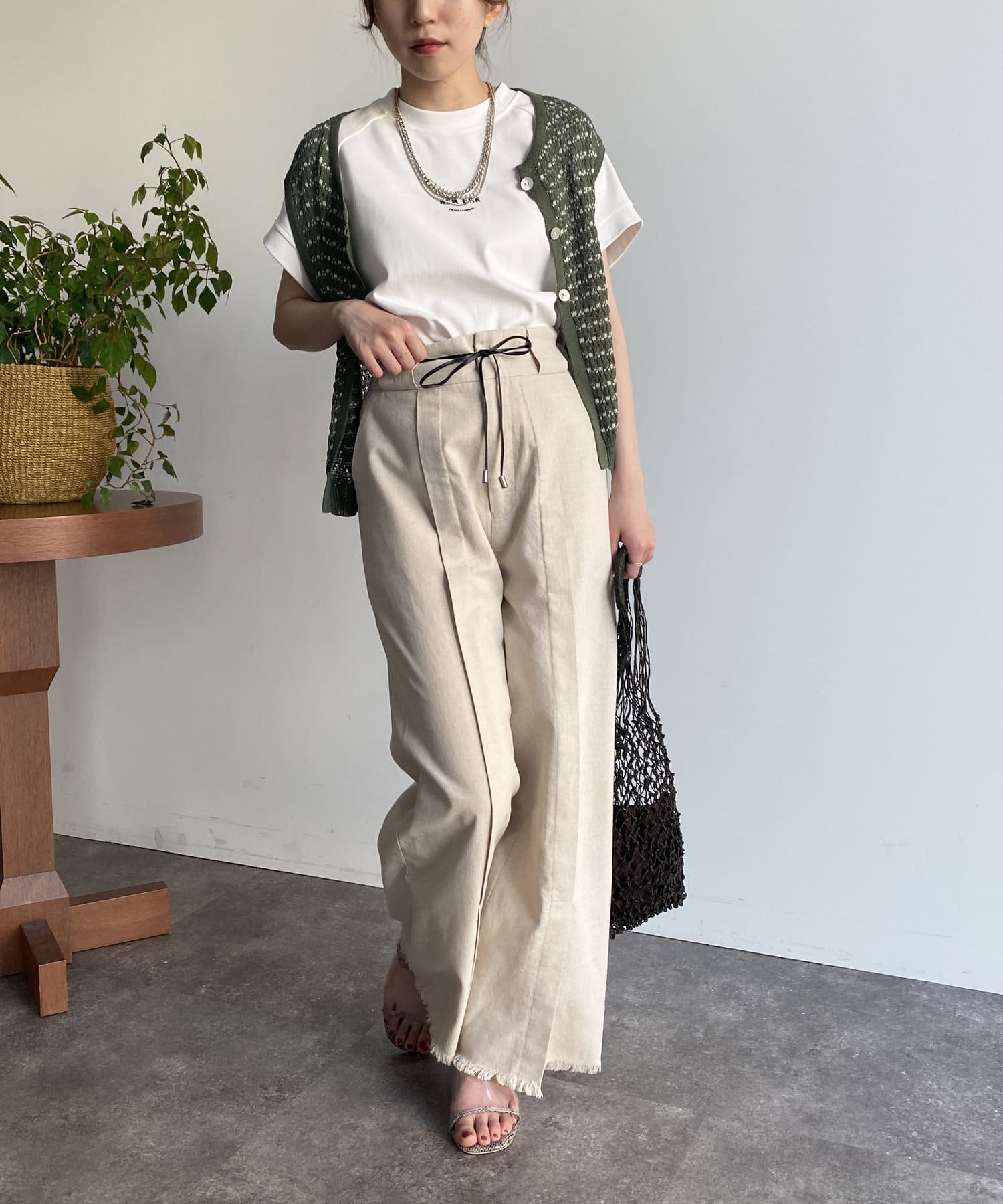 春夏にぴったりの綿麻素材なので、ブラウスやTシャツで清涼感のあるスタイリングがおすすめです!